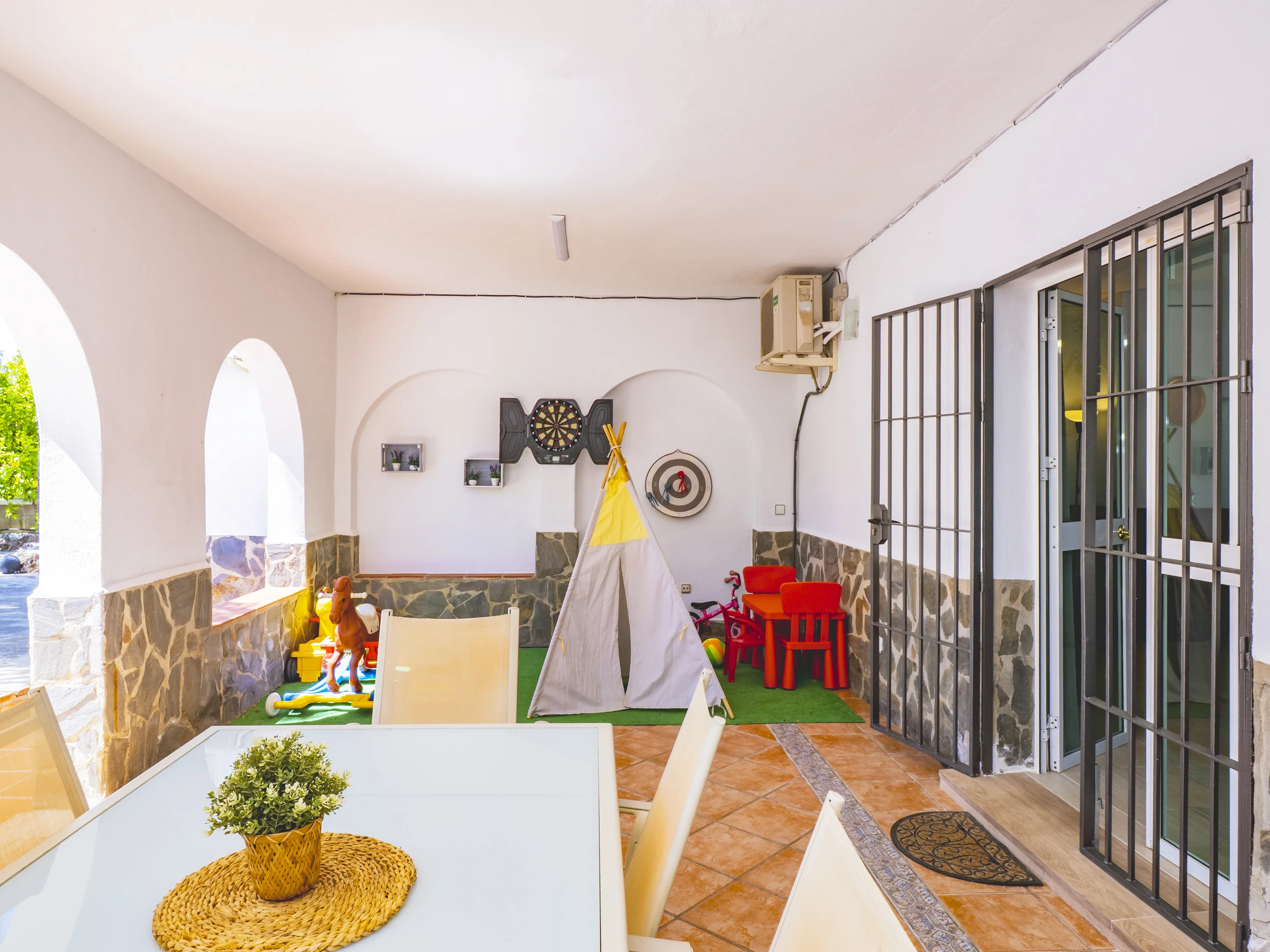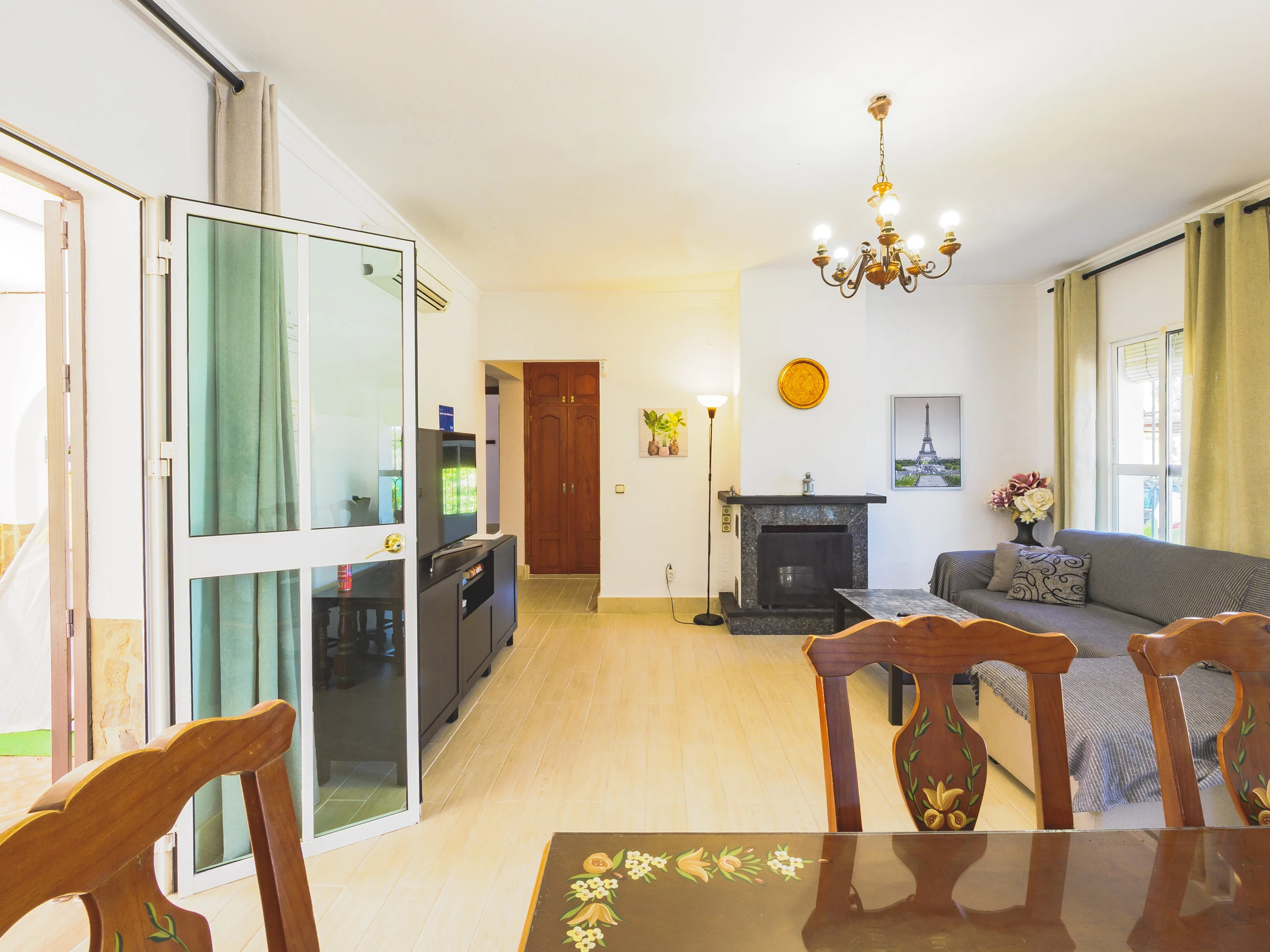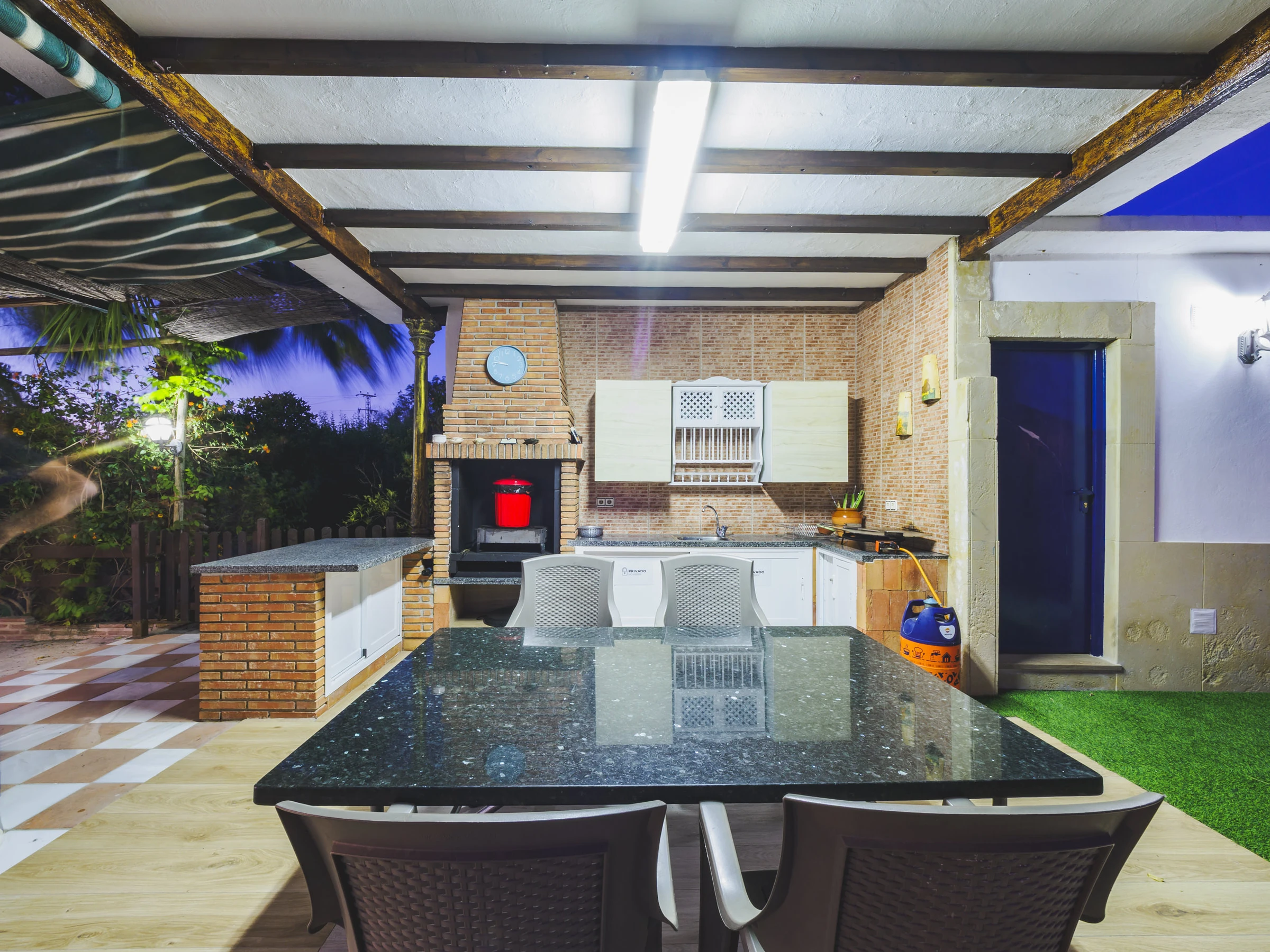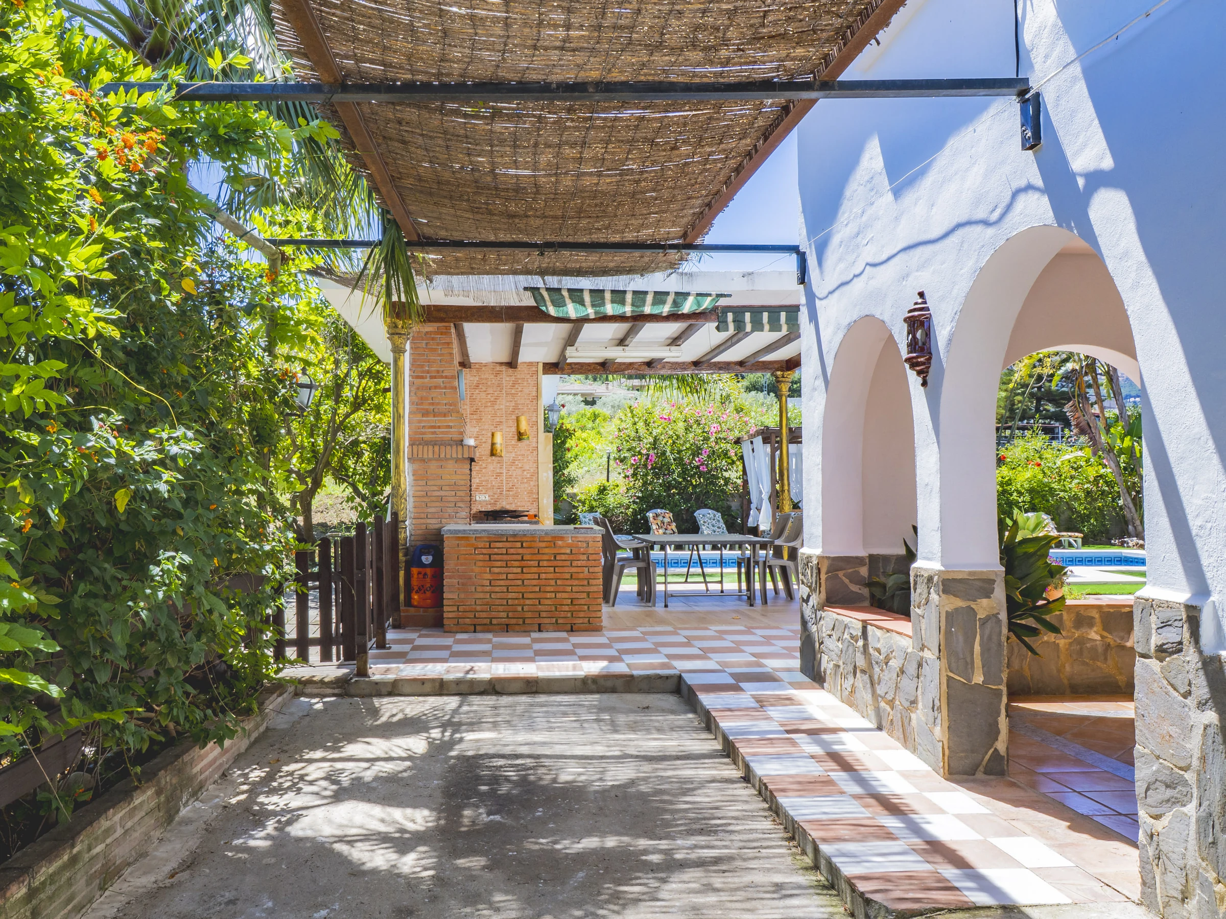 El acceso es cómodo y directo, con entradas por ambos lados de la casa que conectan con la gran piscina, zona de barbacoa y exteriores, o a través del salón comedor, el corazón del alojamiento junto a la amplia cocina independiente. Aquí podrás disfrutar de almuerzos tanto dentro como fuera, sin molestar a quienes prefieran descansar. 🍽️☀️