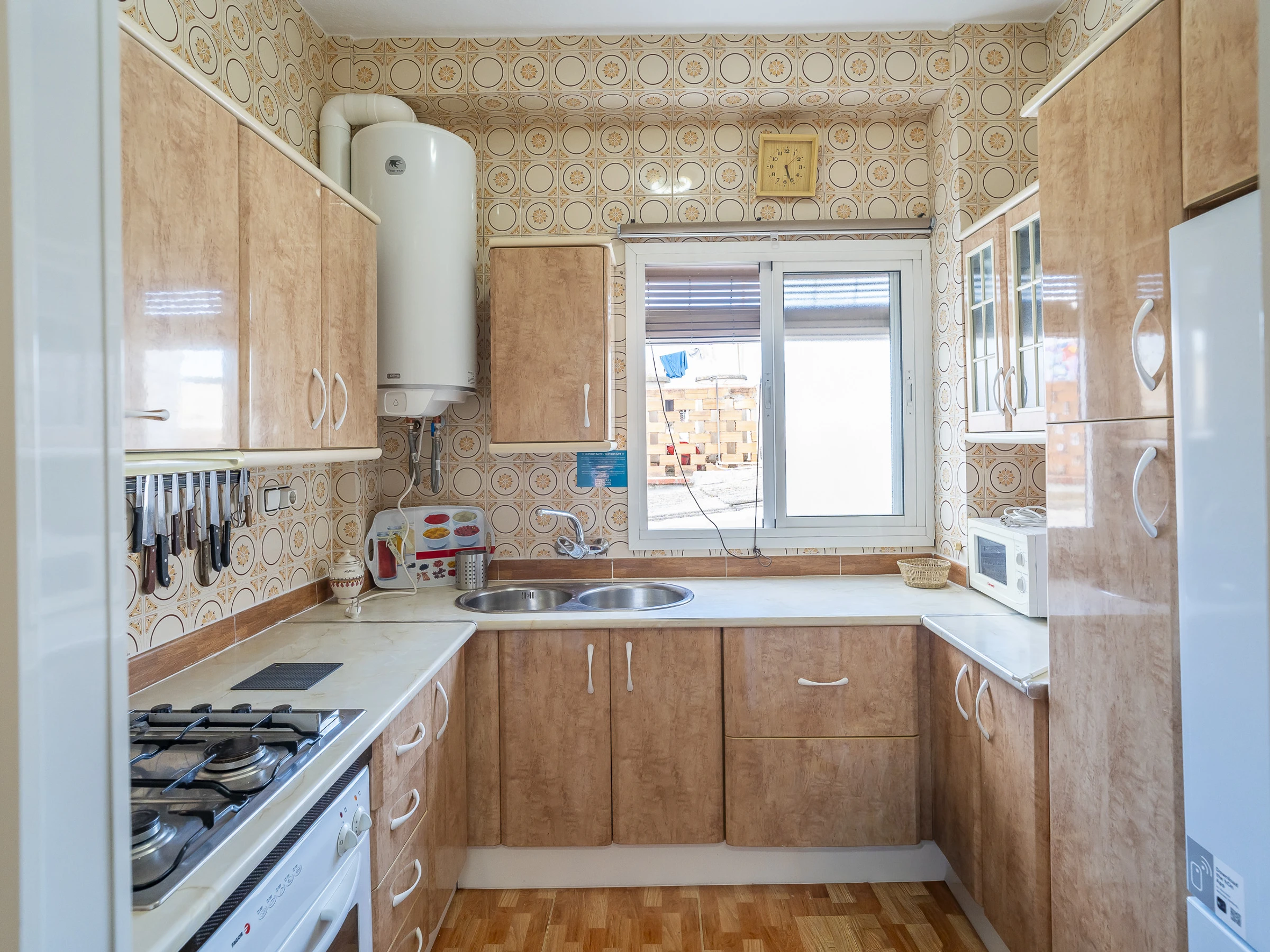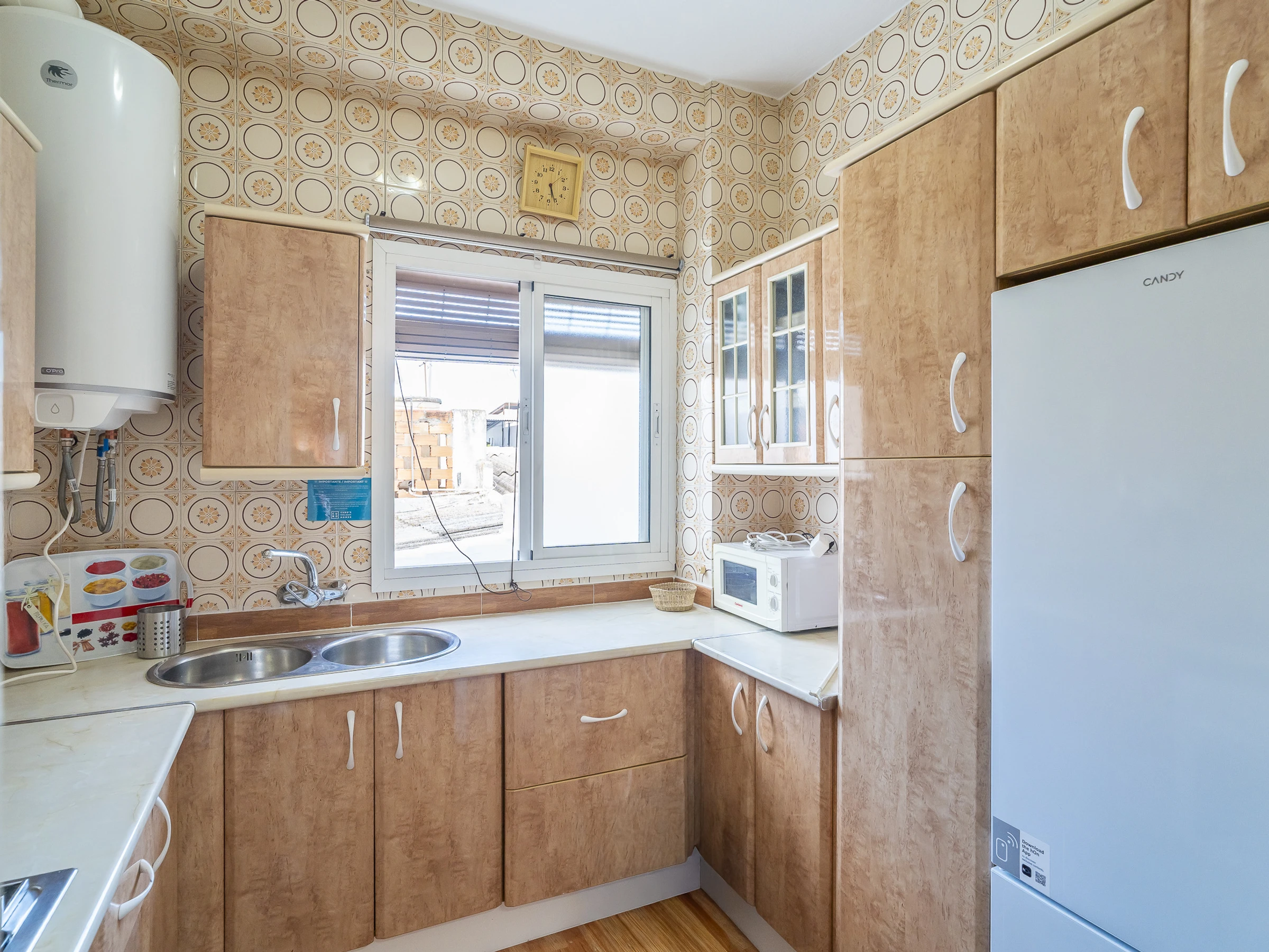 El apartamento cuenta con una terraza de 24 m², WiFi, aire acondicionado en el salón, calefacción, balcón, dos televisores y todas las comodidades necesarias para estancias cortas o largas. La cocina es independiente y está completamente equipada con horno, microondas, cafetera, tostadora y todo lo necesario para cocinar con comodidad.