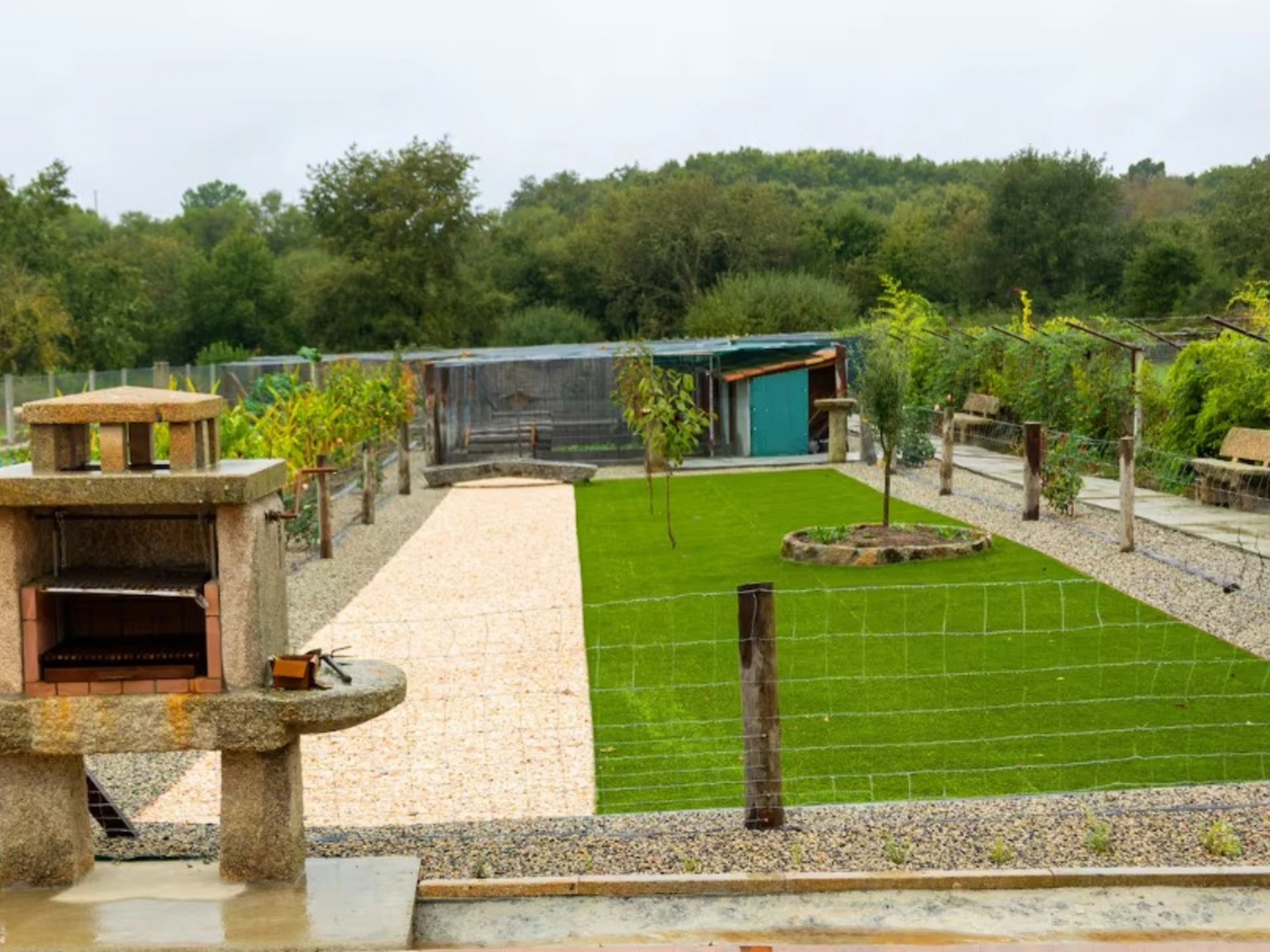 La vivienda es de una sola planta, muy cómoda y práctica. Al llegar, te recibe un porche amueblado de 20 m², perfecto para desayunar al aire libre, leer con calma o alargar las noches alrededor de la barbacoa, disfrutando del ambiente rural.