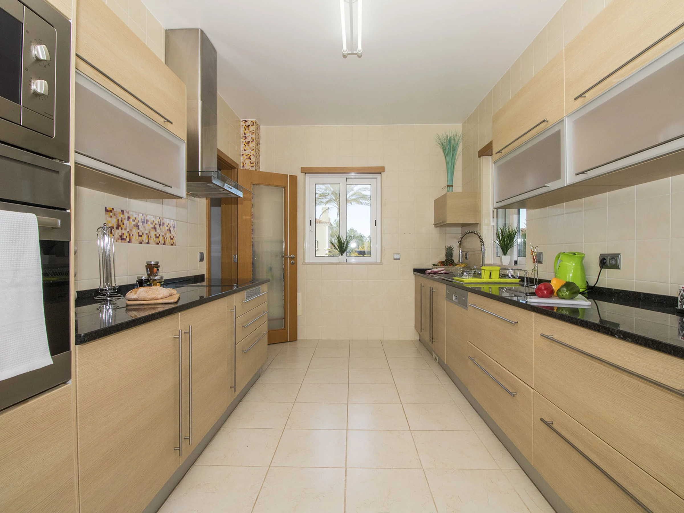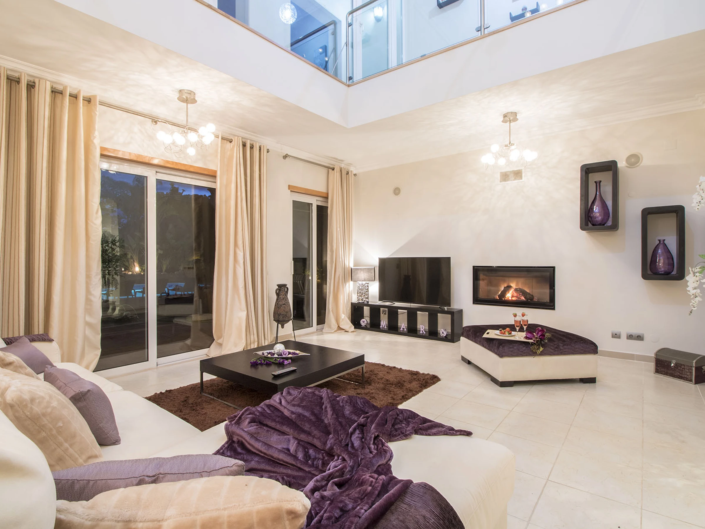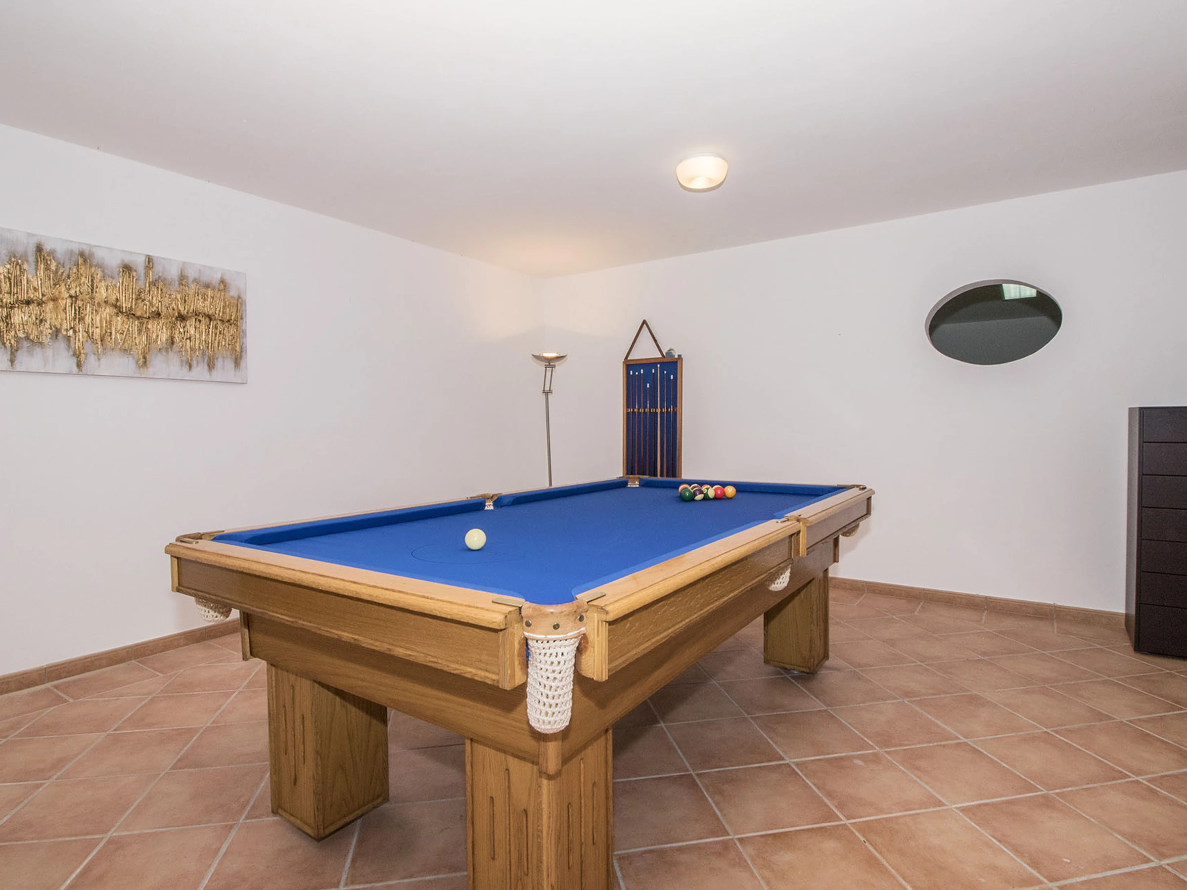 La elegante cocina brilla con lavavajillas, microondas, máquina de café y acceso directo a barbacoa/piscina. La luminosa sala de estar de planta abierta cuenta con techos altos, chimenea, televisión por cable (canales en inglés/portugués), sistema de sonido para toda la casa, aire acondicionado central y Wi-Fi. El espacio de ocio del sótano ofrece billar, mesa de cartas y sofá de televisión.