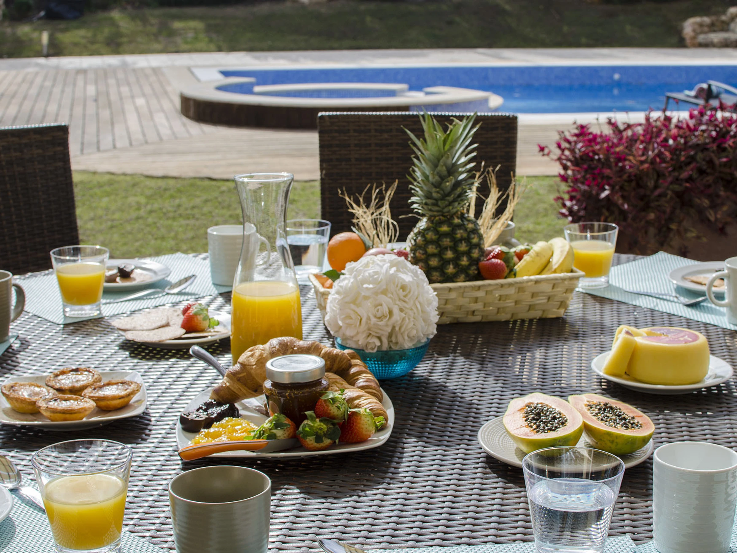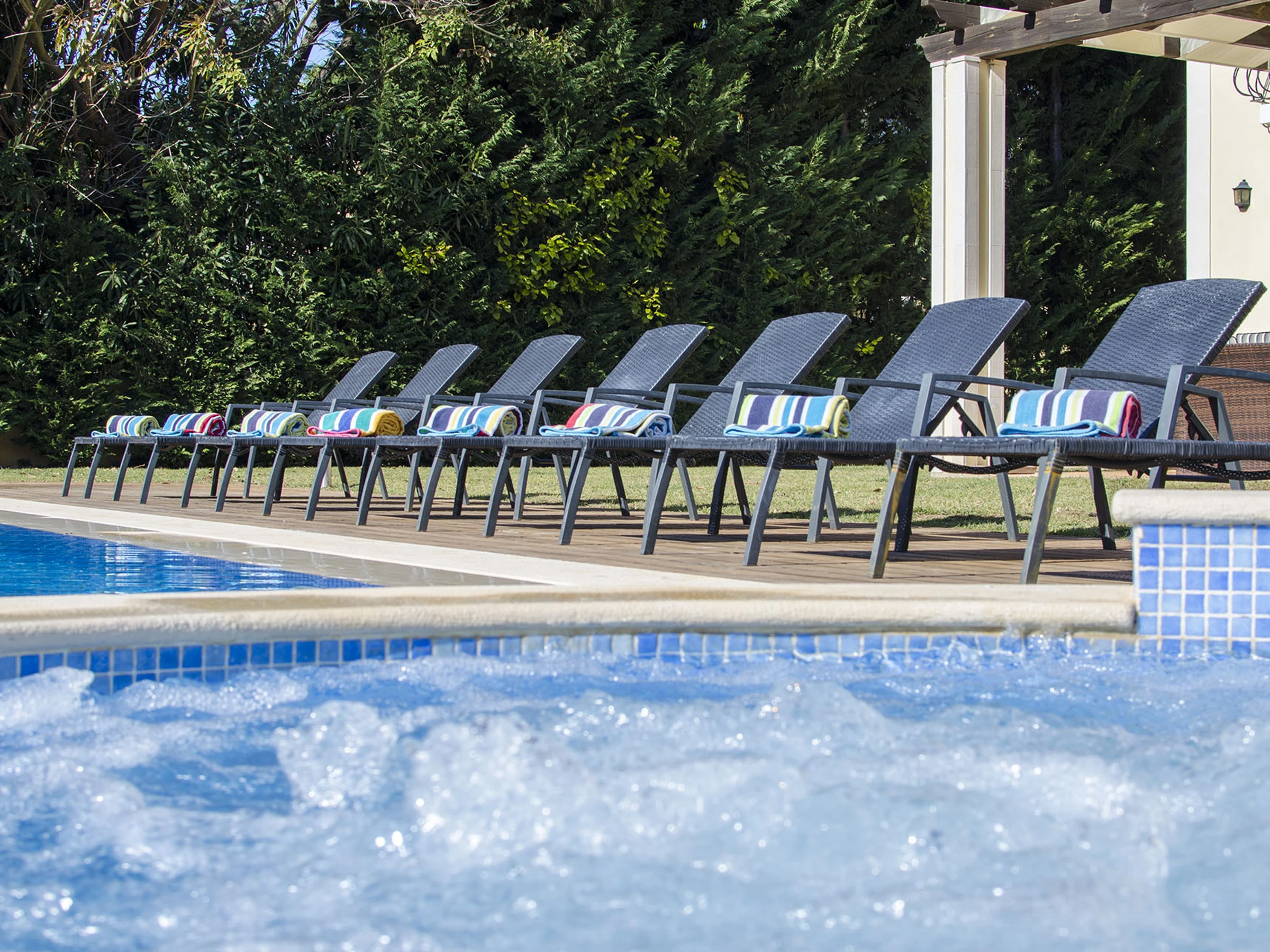 Los huéspedes hacen grandes elogios sobre el remanso exterior: impresionante piscina desbordante de 12×6 m (profundidad de 0,75-2,20 m, jacuzzi para 4 personas, calefacción de abril a octubre con 48 horas de aviso/costo adicional, según lo permita el clima), jardín extenso, comedor sombreado para 10 personas, sofás y sillas exteriores acogedores, áreas de juego para niños y una mesa de ping pong.