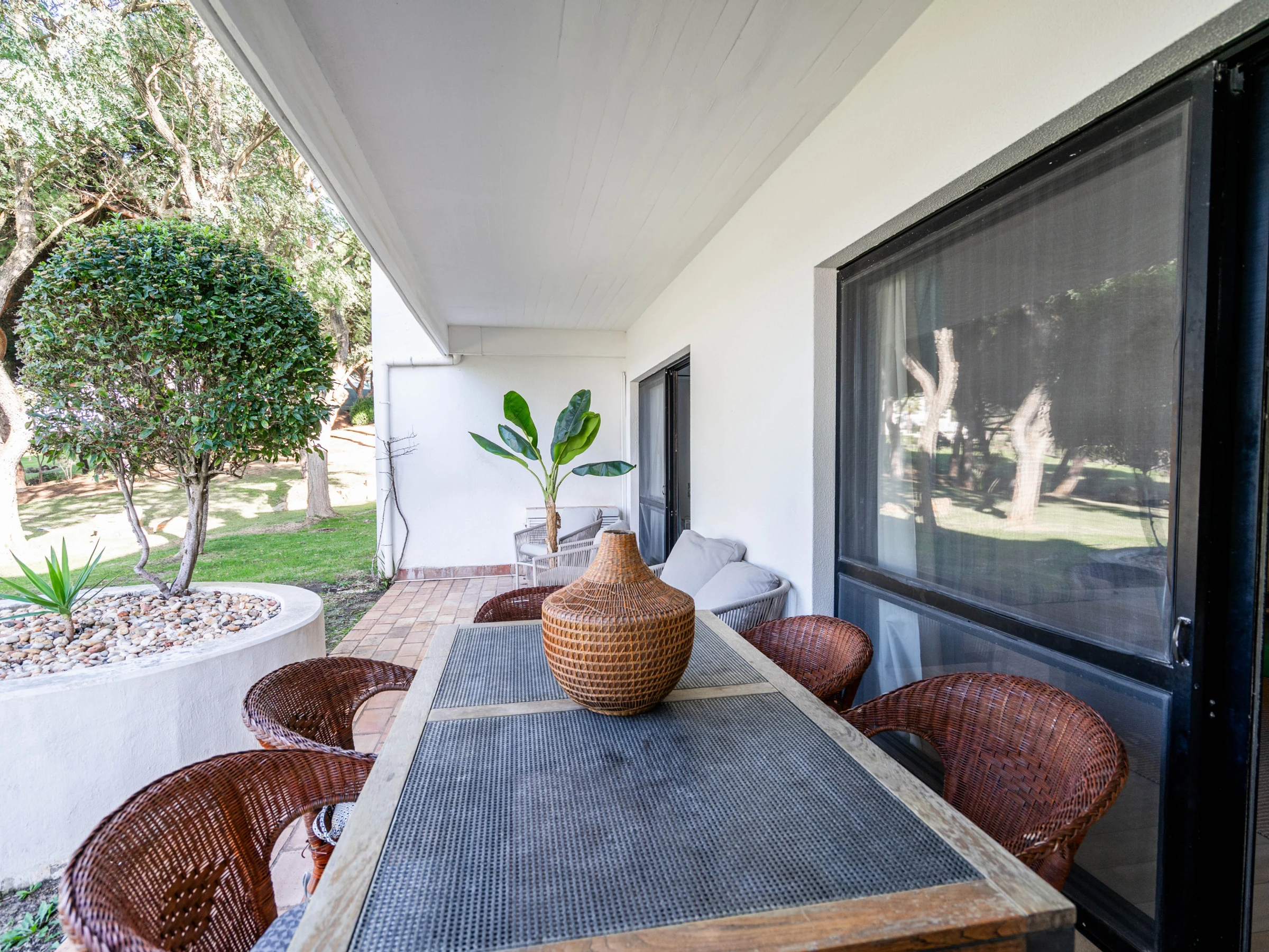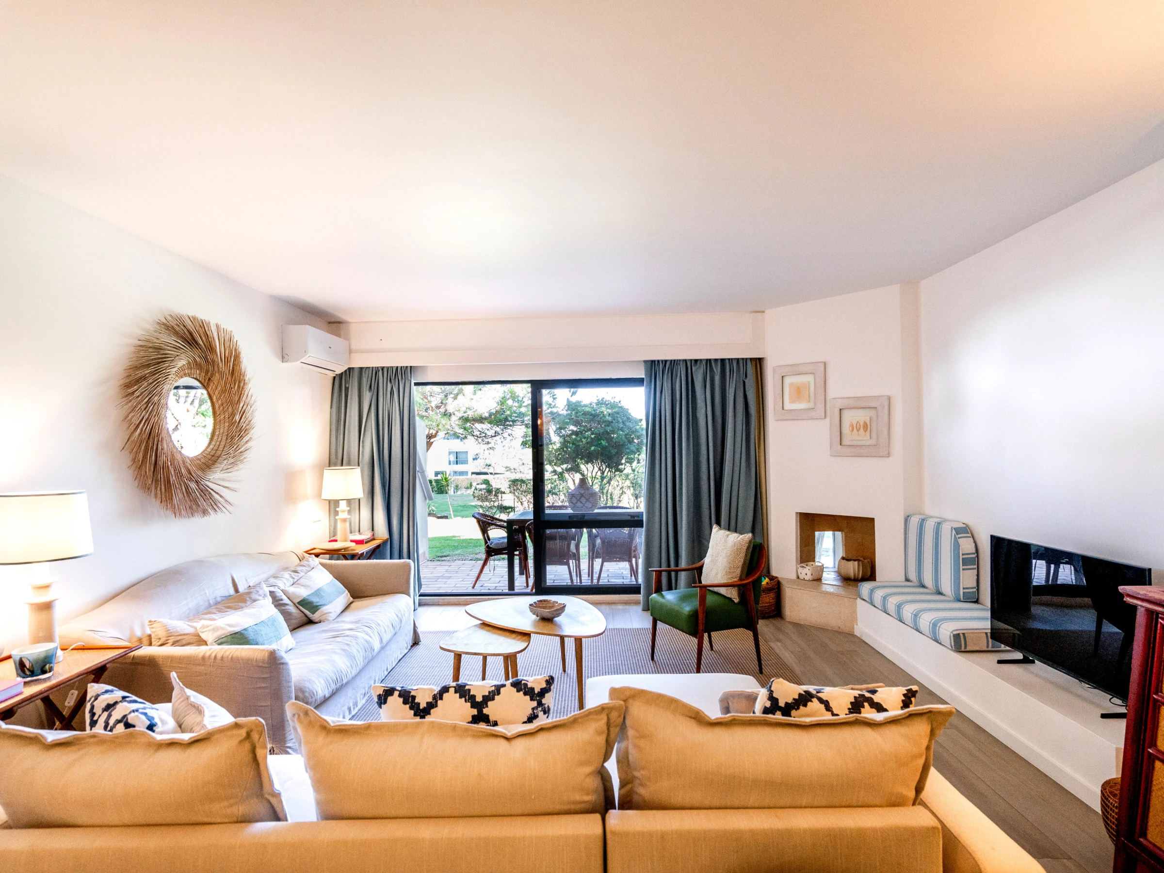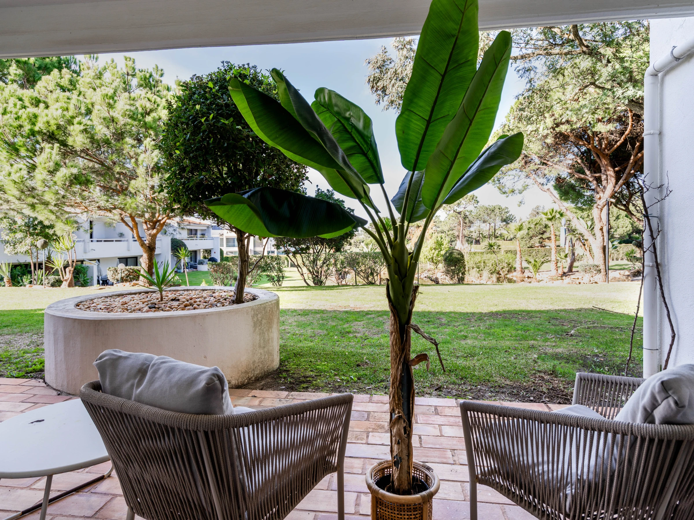 Situado en la planta baja, el apartamento cuenta con una agradable zona exterior, perfecta para comidas al aire libre, momentos de descanso o para disfrutar del clima algarvío. El interior es luminoso, confortable y decorado en tonos claros y naturales, creando un ambiente tranquilo y de vacaciones.