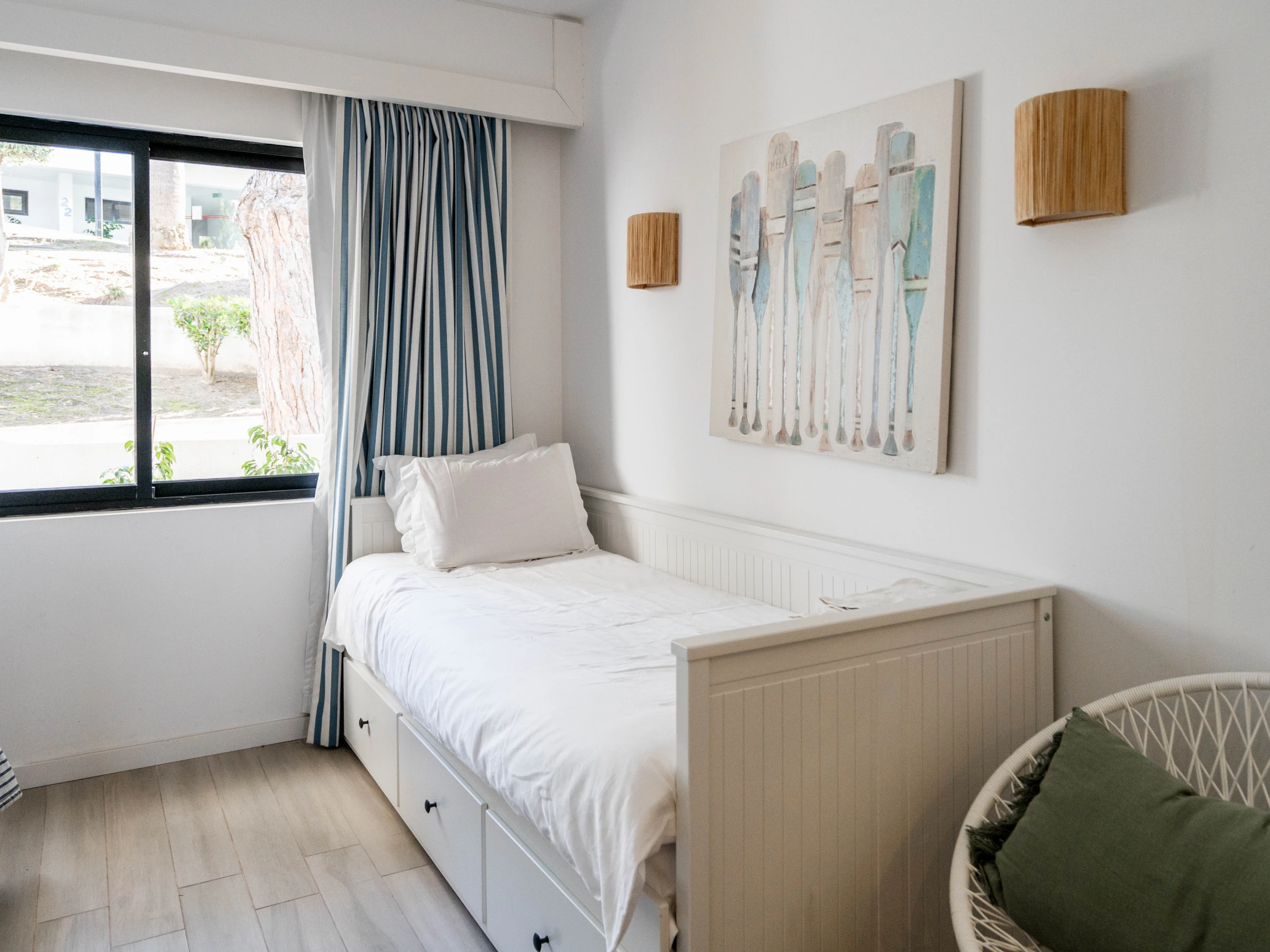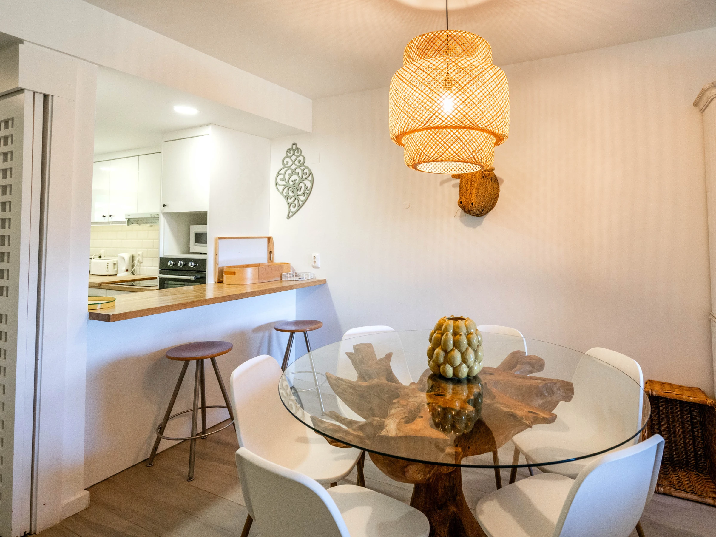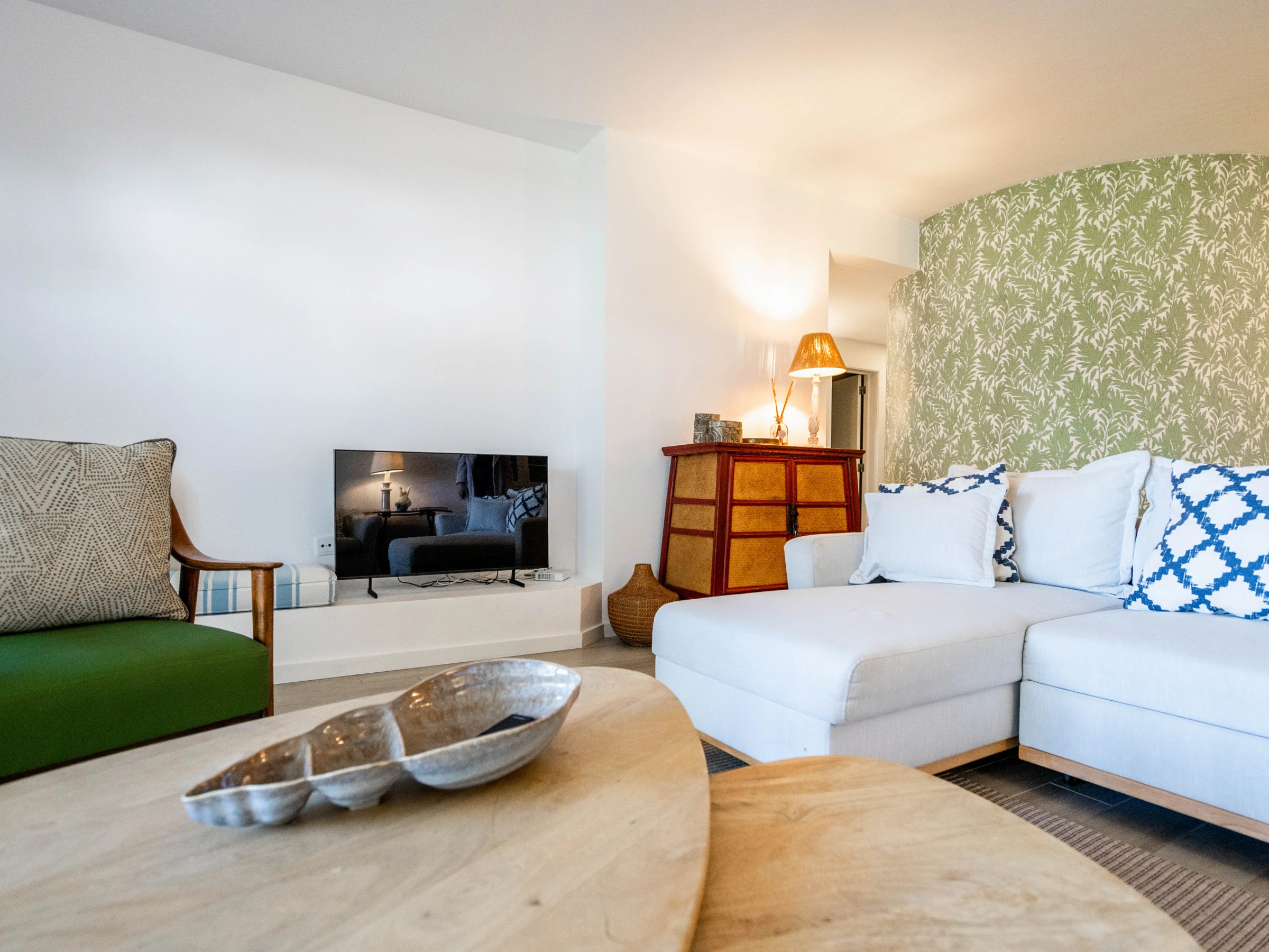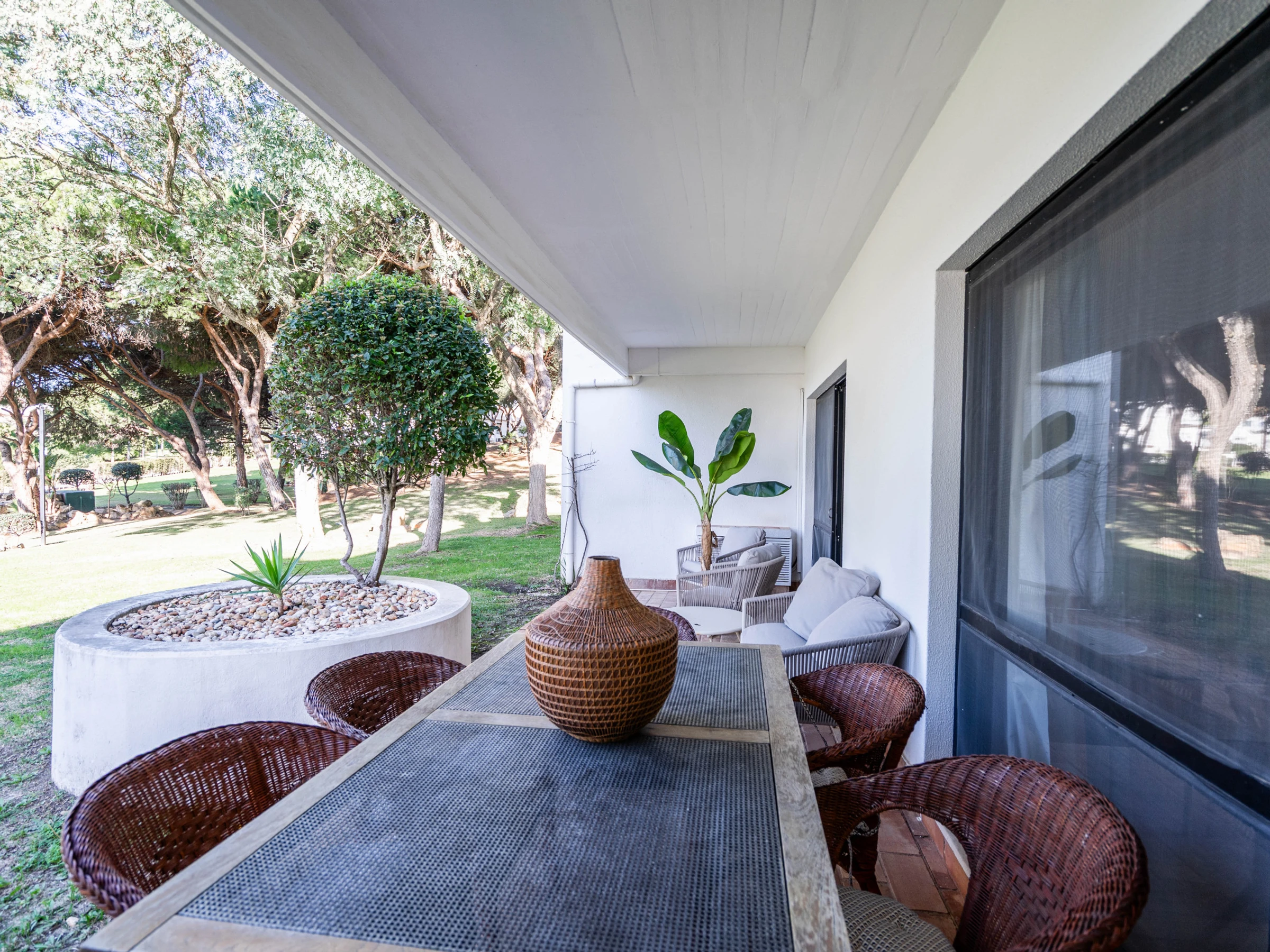 Situado en la planta baja, el apartamento cuenta con una agradable zona exterior, perfecta para comidas al aire libre, momentos de descanso o para disfrutar del clima algarvío. El interior es luminoso, confortable y decorado en tonos claros y naturales, creando un ambiente tranquilo y de vacaciones.