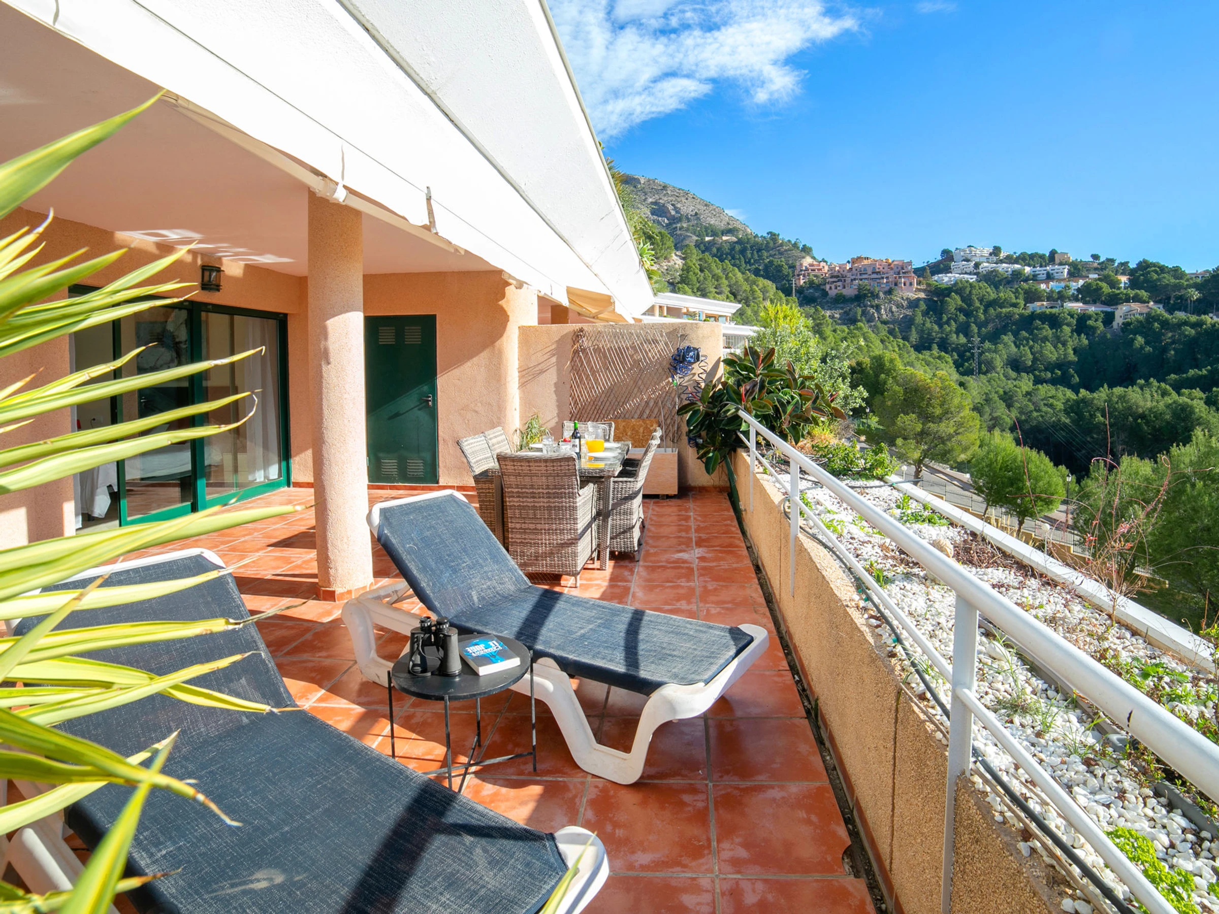 Sierra de Altea: Casa de apartamentos "Altea La Nova", bonito. A 2.2 km del centro de Altea la Vieja, a 6 km del centro de Altea, lugar soleado, elevado, zona con poco tráfico, a 3.5 km del mar, a 3.5 km de la playa. Comunitario: terreno (vallado), jardín con césped, 2 piscinas (Disponible por temporada: [hidden] - [hidden] con escalera interior. Piscina para niños, ducha exterior, terraza. En el inmueble: recepción, ascensor. Tienda 2.2 km, tienda de comestibles 2.2 km, supermercado 2.2 km, restaurante 3 km, bar 2.2 km, panadería 2.2 km, café 2.2 km, internet café 2.2 km, zona peatonal 2.2 km, alquiler de bicicletas 2.2 km, bar al aire libre 2.2 km, a 33 minutos del centro andando, playa de arena "Playa Puerto Blanco -Calpe-" 12 km, cala para bañarse 5 km. Puerto deportivo 7 km, puerto para yates 7 km, campo de golf (9 hoyos) 1 km, escuela de surf 7 km, escuela de vela 7 km. Atracciones en los alrededores: Aqualandia 20 km, Mundomar 20 km, Terra Mitica 25 km, Terra Natura 25 km, Fuentes del Algar 22 km, Guadalest 25 km. Zona de senderismo Peñon de Ifach 15 km. El propietario no acepta grupos de adolescentes/jóvenes.
