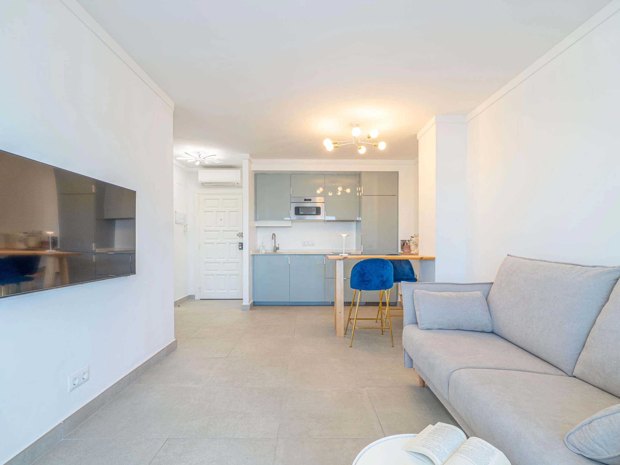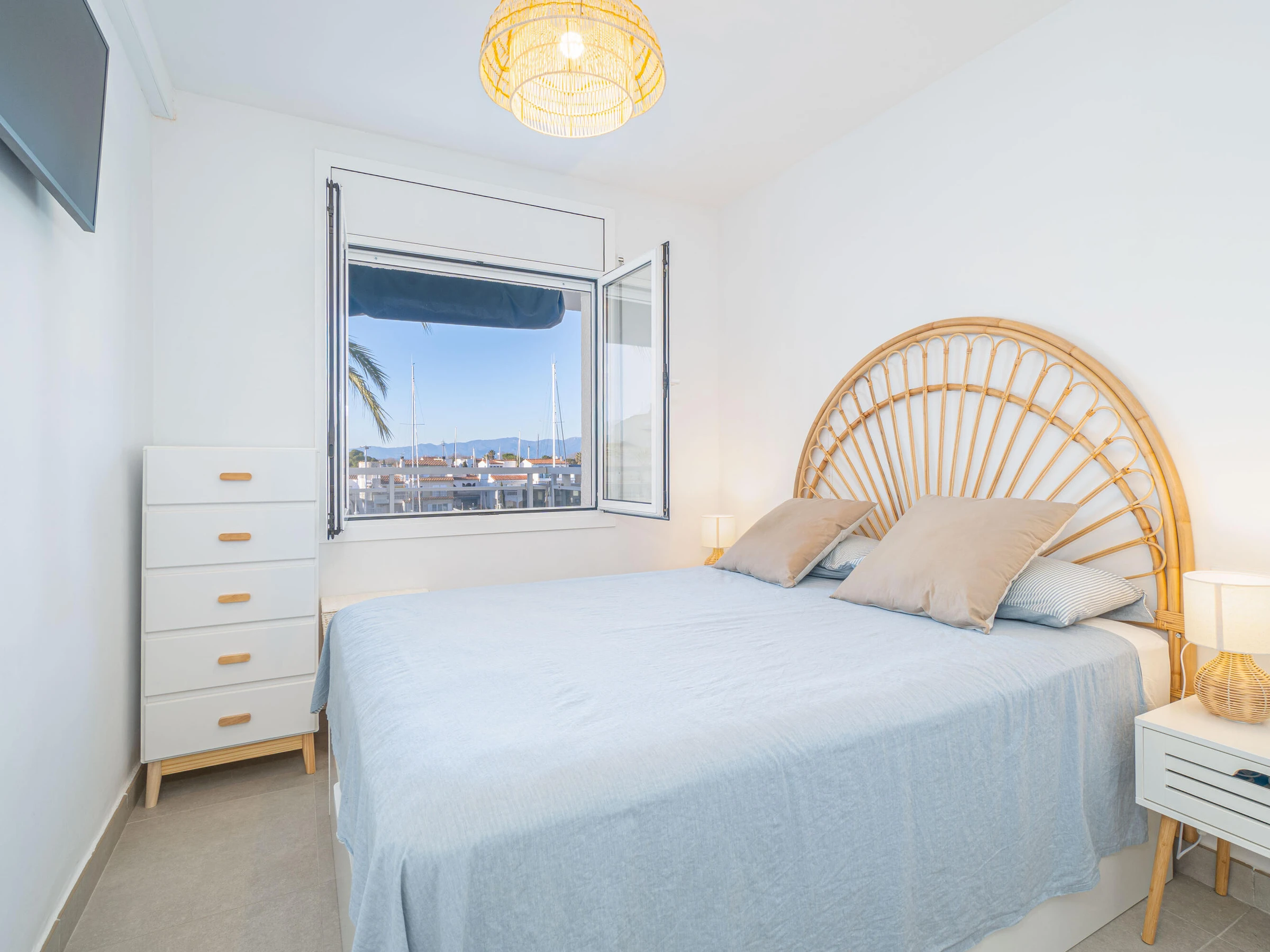 Home Select International ofrece un acogedor apartamento situado en el Club Náutico de Empuriabrava, en edificio con ascensor a planta, ideal para parejas o grupos de hasta 3 personas. La vivienda ofrece un espacio abierto, amplio y muy luminoso, decorado en tonos neutros y materiales actuales que transmiten calma y confort. Dispone de cocina americana totalmente equipada con barra y taburetes, zona de estar con sofá cama, televisor y aire acondicionado frío/calor. Desde el salón se accede a un balcón-terraza con vistas al canal, equipado con mesa para tres personas y zona de descanso, perfecto para disfrutar de las puestas de sol. Cuenta con habitación doble con cama de 160 x 200 cm y armarios empotrados, además de baño completo con ducha. La ropa de cama y las toallas no están incluidas en el precio, pero se pueden alquilar por 25 euros por persona. Eficiencia energética: Consumo de energía: “E” 128 kWh/m² al año Emisiones de CO₂: “E” 24 kg CO₂/m² al año Ubicado en una zona tranquila, a 300 m del centro y a 700 m de la playa, lo que permite disfrutar de todos los servicios sin ruidos ni tránsito constante.