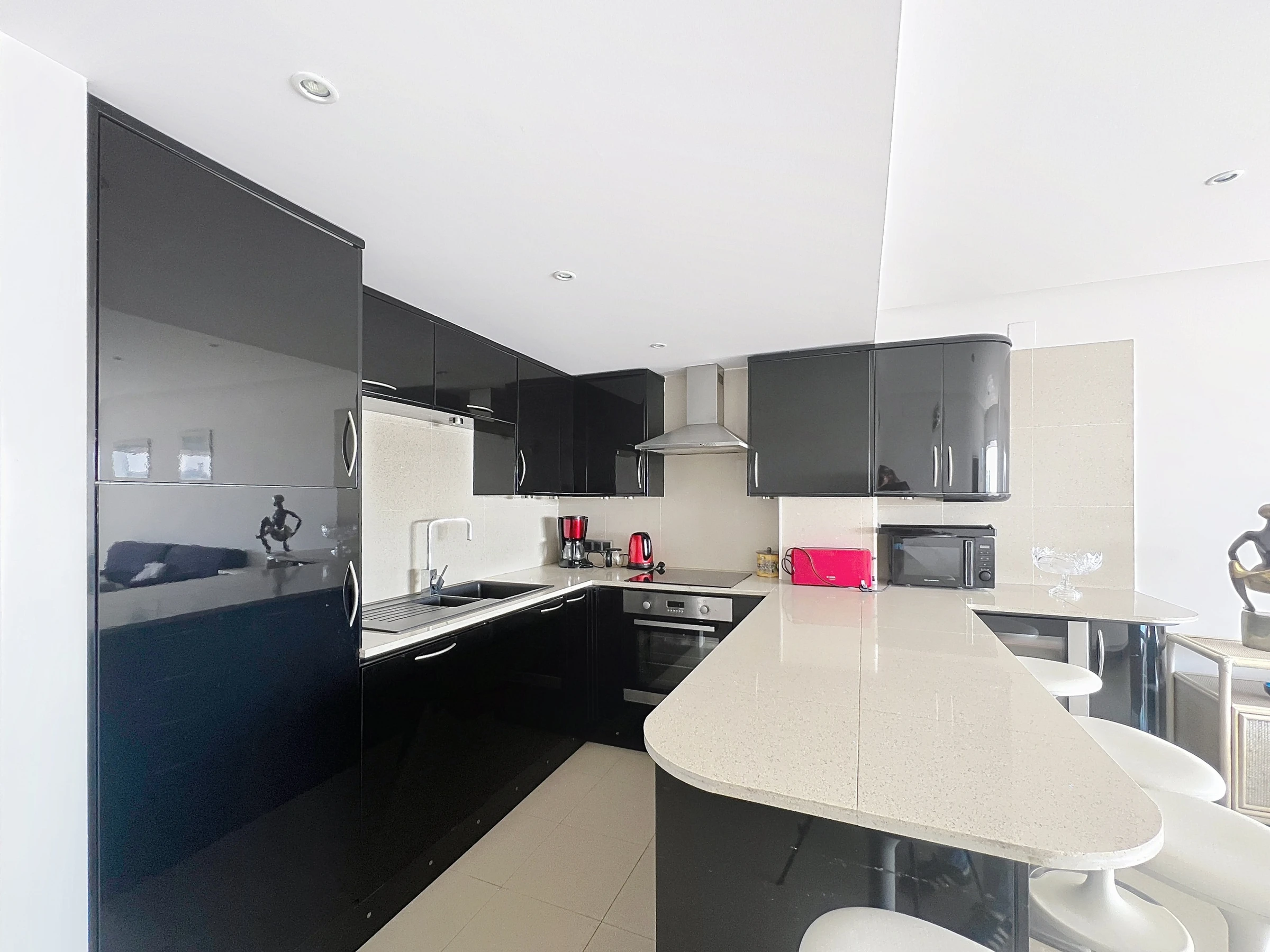 La cocina abierta, moderna y funcional, está completamente equipada: vitrocerámica, horno, frigorífico, congelador, lavavajillas, lavadora, garantizándole un confort óptimo.