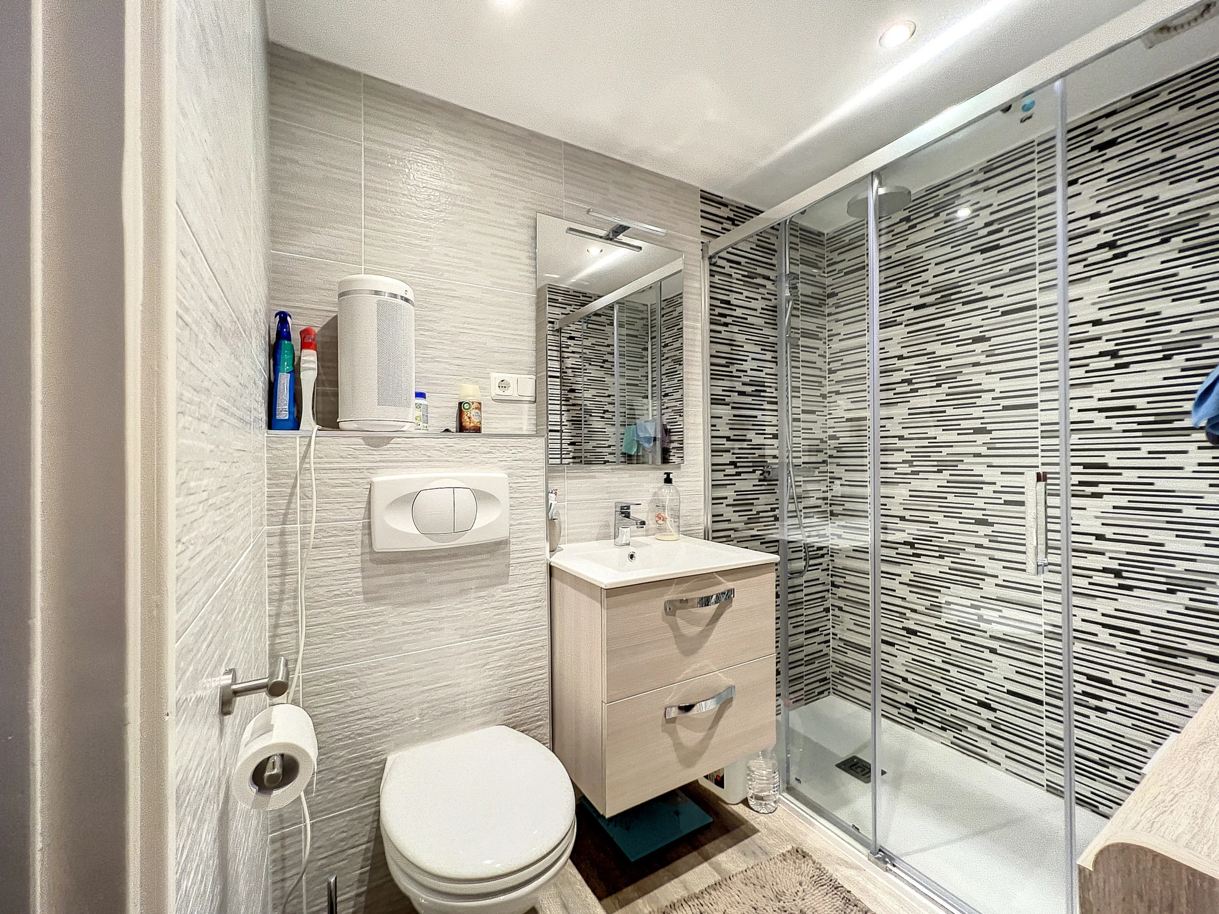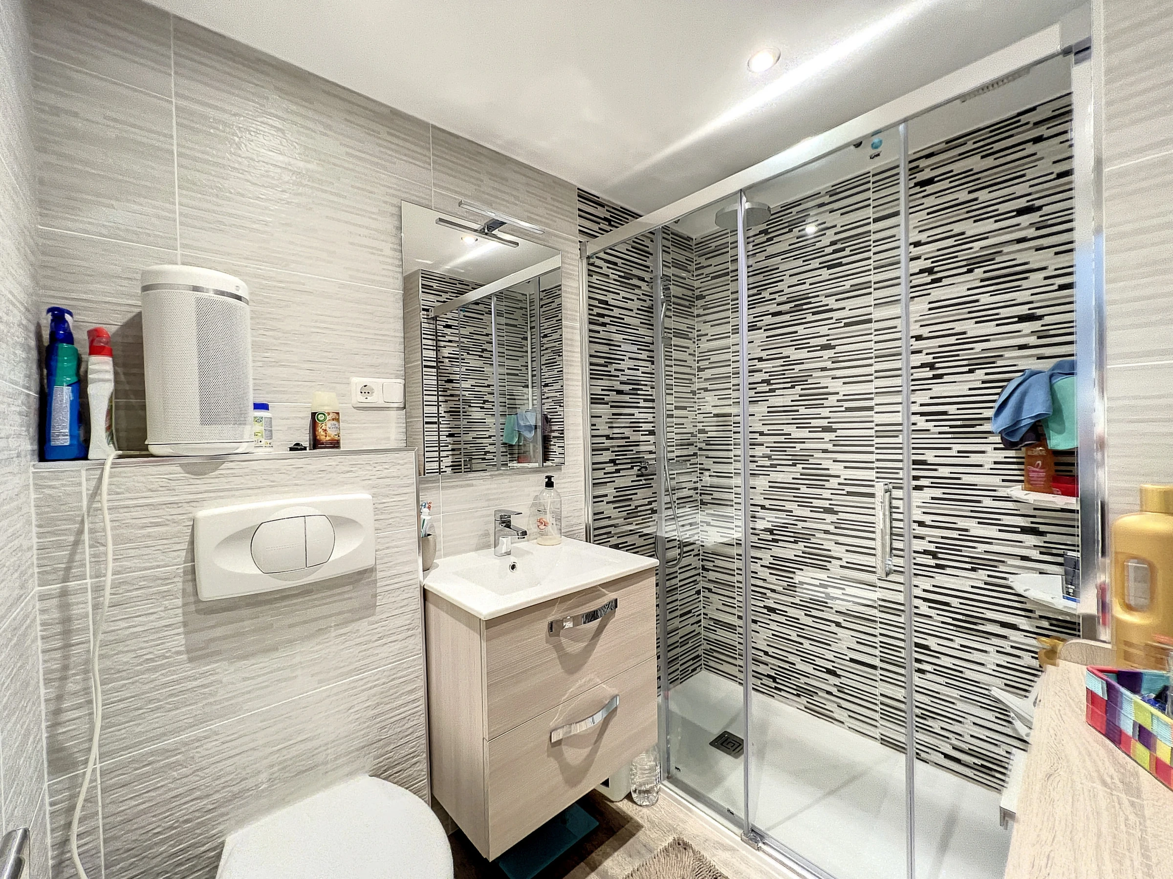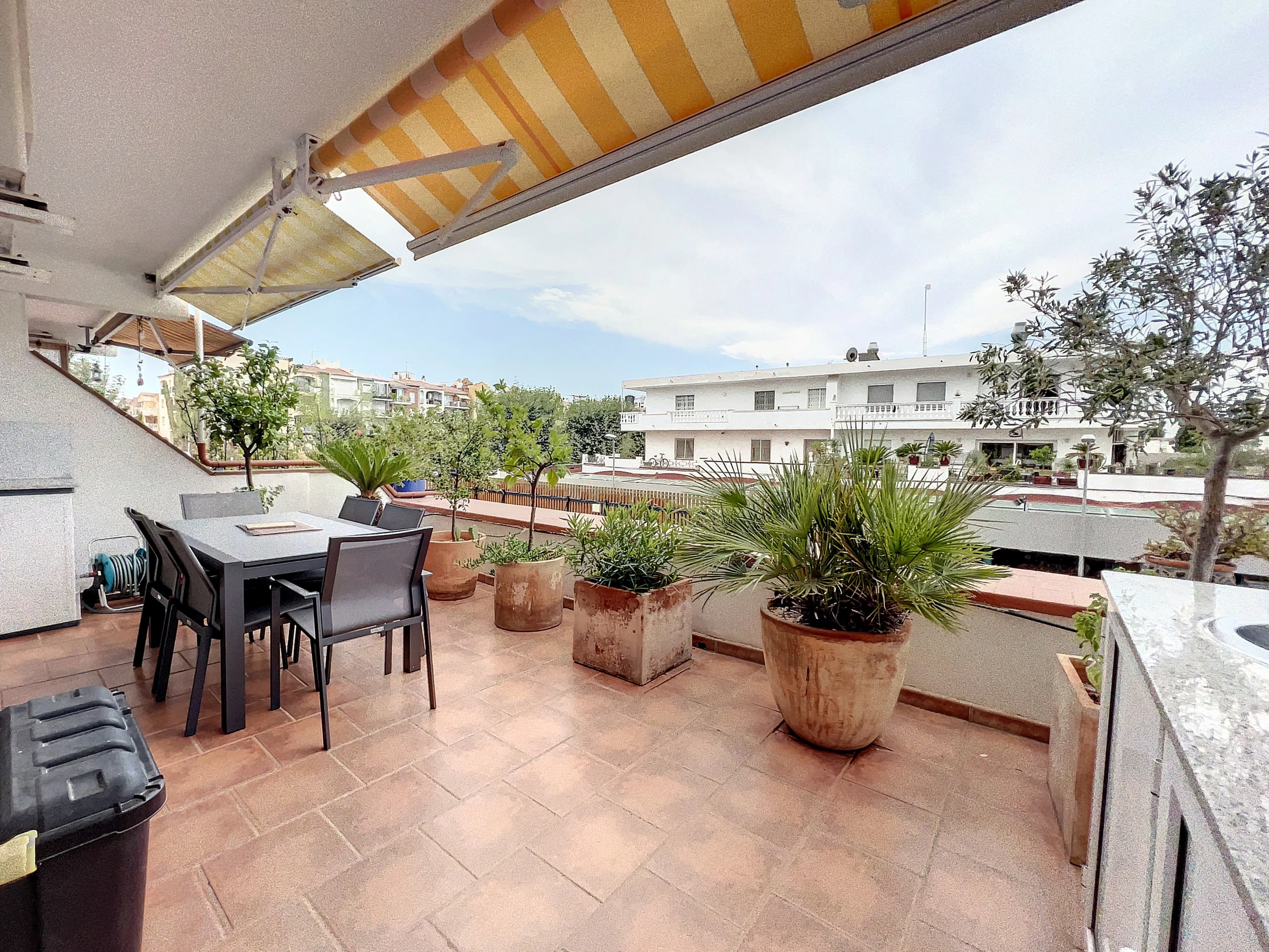 El apartamento cuenta además con una magnífica terraza de 20m², ideal para relajarse, comer al sol o disfrutar de las suaves noches de verano. El aire acondicionado en el salón garantiza un confort óptimo durante los días más calurosos.