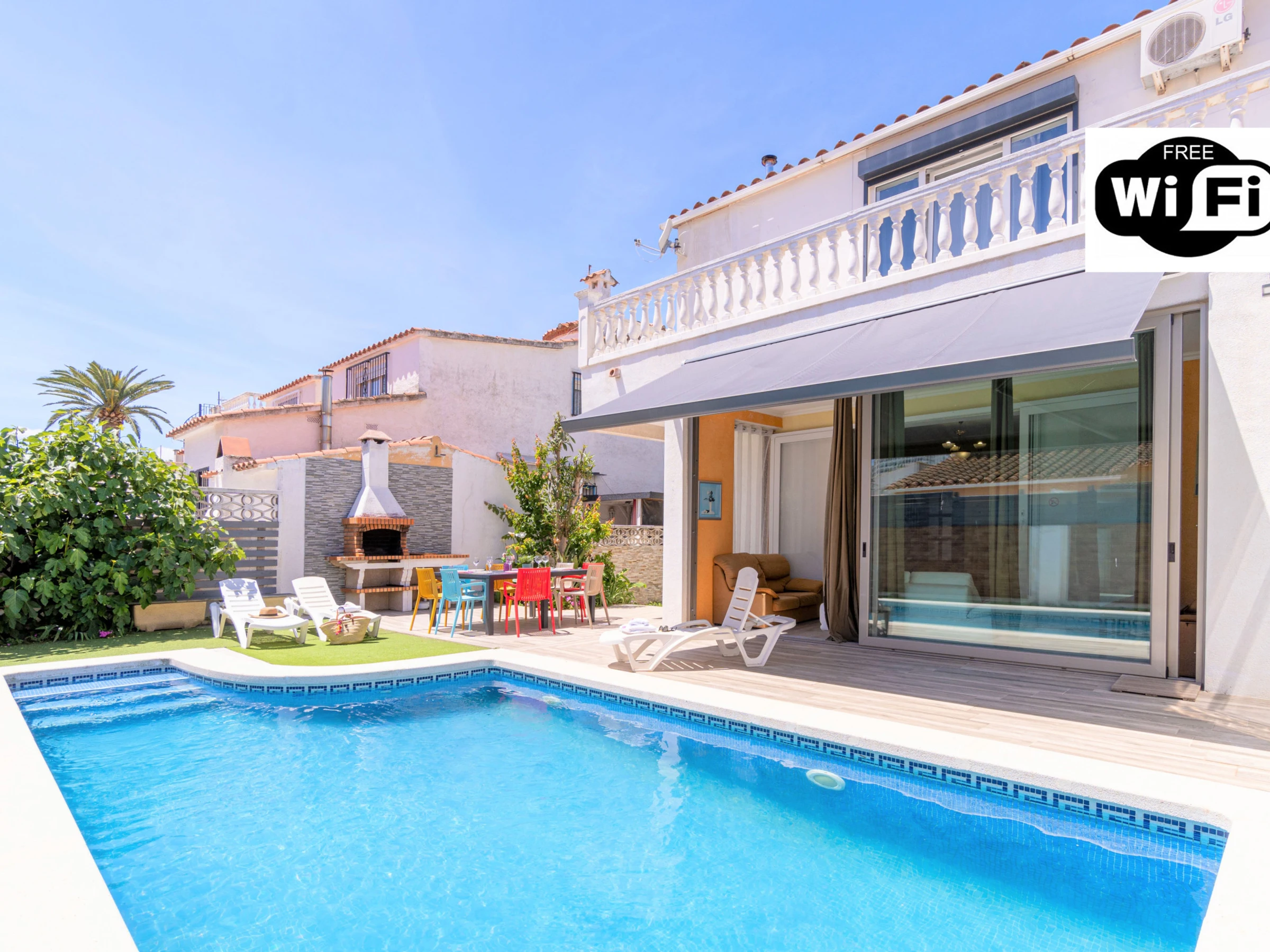 La villa en Empuriabrava posee 3 dormitorios y capacidad para 8 personas. Alojamiento de 200 m² confortable y grande, con vistas a la piscina.
