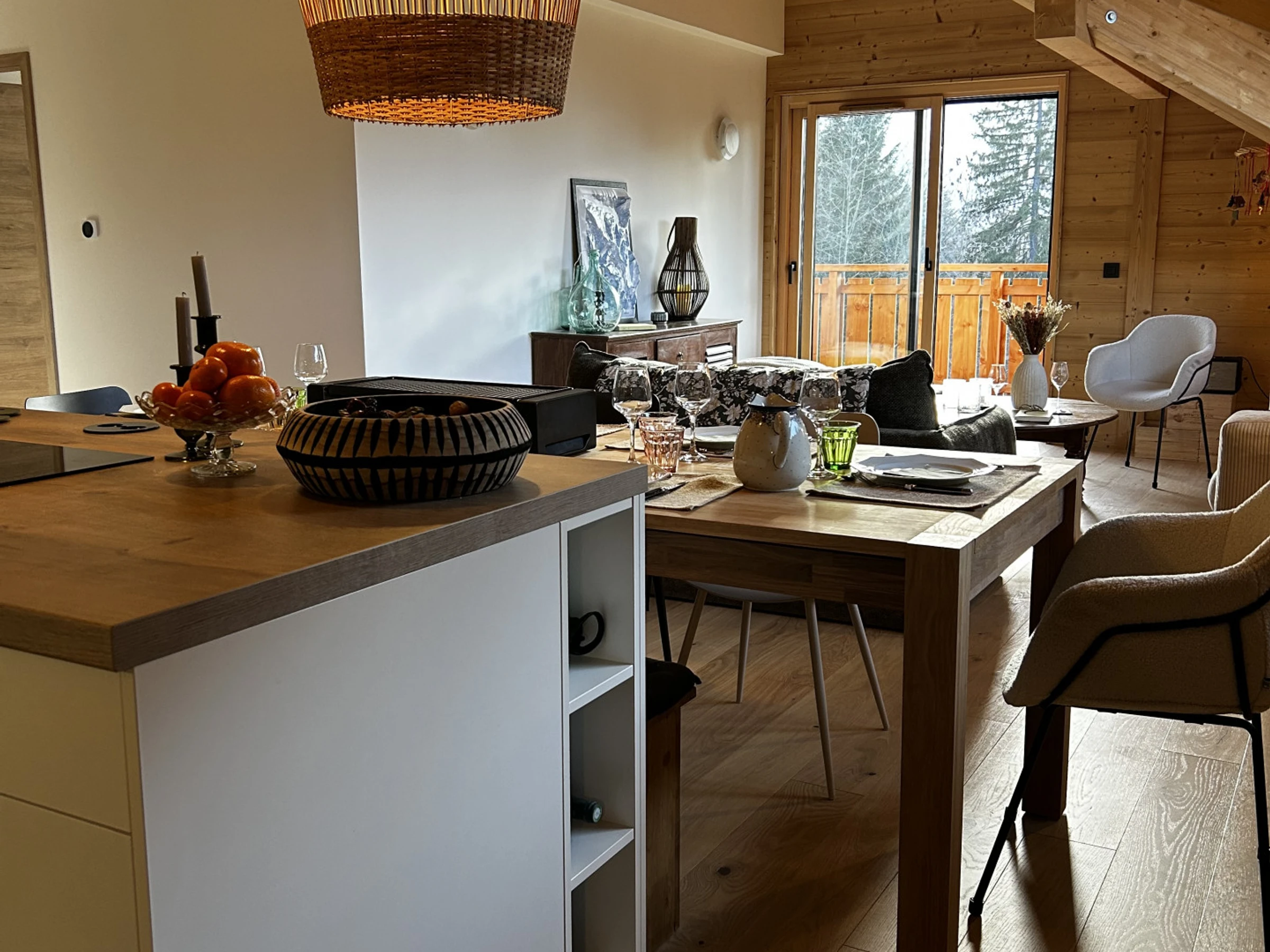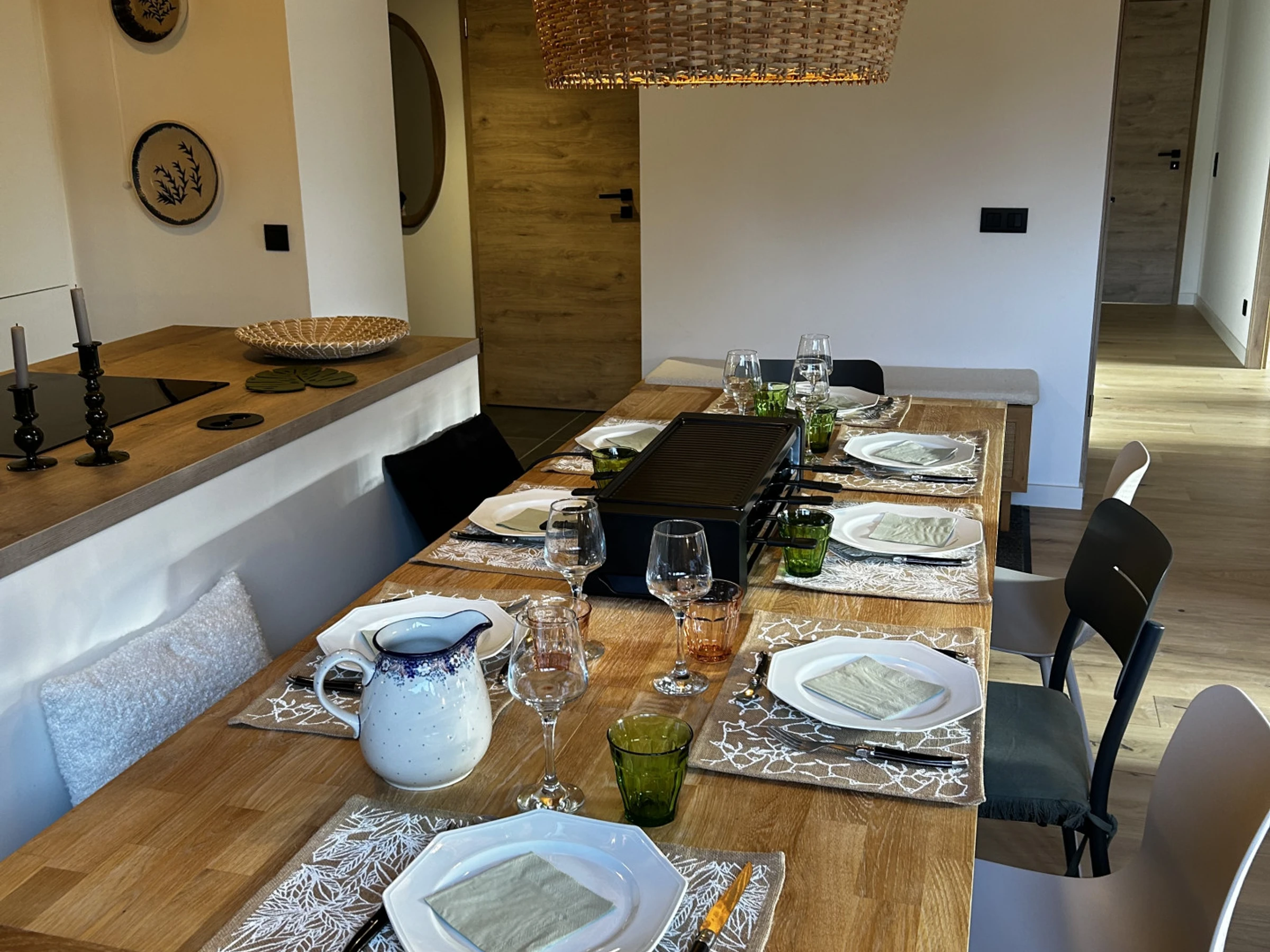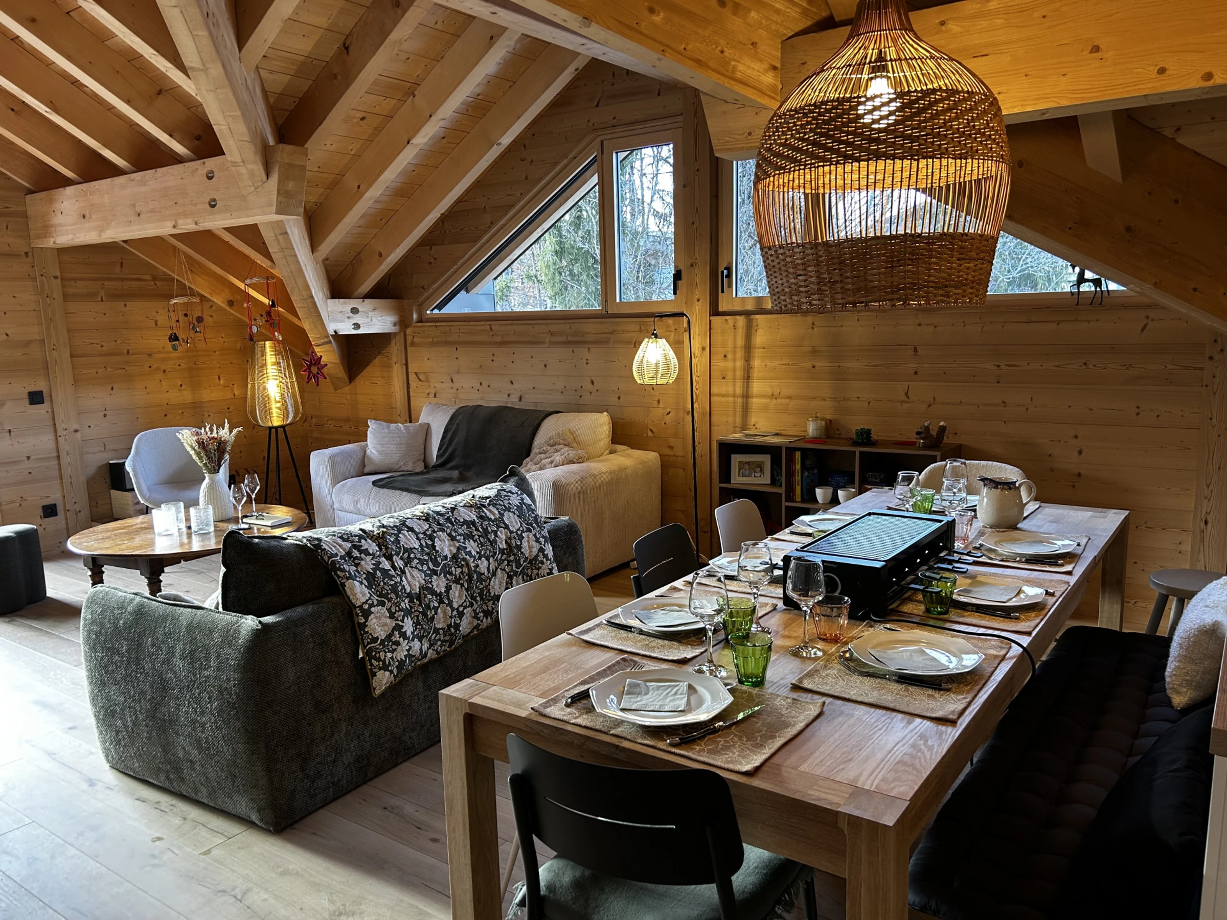 Cocina/sala de estar de planta abierta equipada, Cafetera de filtro, Cafetera Nespresso, Lavavajillas, Juego de fondue, Frigorífico mediano con congelador, 3 placas de inducción, Hervidor eléctrico, Microondas, Horno empotrado, Raclette, Tostadora