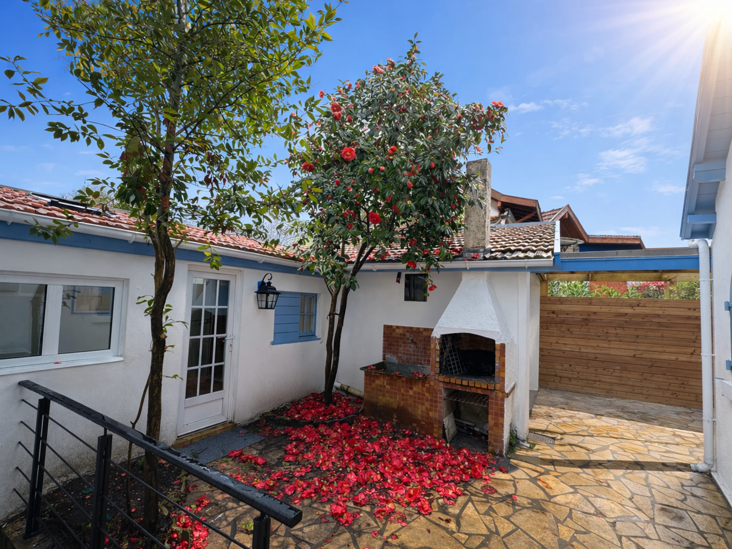 En el exterior, podrá disfrutar de un agradable jardín, dos terrazas: una amueblada para comer al aire libre con toldo y la otra a la sombra para relajarse, así como una barbacoa para disfrutar de los días soleados.
