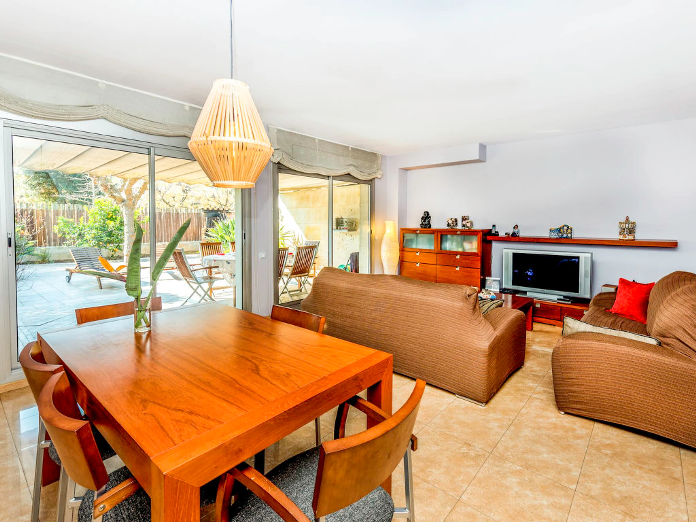 Can Jalpí: Casa adosada "Jalpi", moderna de 2 plantas. En las afueras de la localidad, a 2 km del centro de Arenysde Munt, lugar tranquilo area residencial (villas), a 2.5 km del mar, a 2.5 km de la playa. Comunitario: piscina (6 x 12 m, 100 - 190 cm de profundidad,[hidden].). Ducha exterior. Privado: bonito jardín para relajarse. Acceso por escaleras (4 escalones) hasta la casa. Posibilidad de aparcamiento en la calle. Supermercado 2 km, restaurante 1 km, estación de tren "Arenys de Mar" 2.5 km, playa de arena "Arenys de Mar" 2.5 km. Grupos de jóvenes sólo bajo petición. Vecindario muy sensible a ruidos. Se ruega respetar la tranquilidad y normas de buen comportamiento.