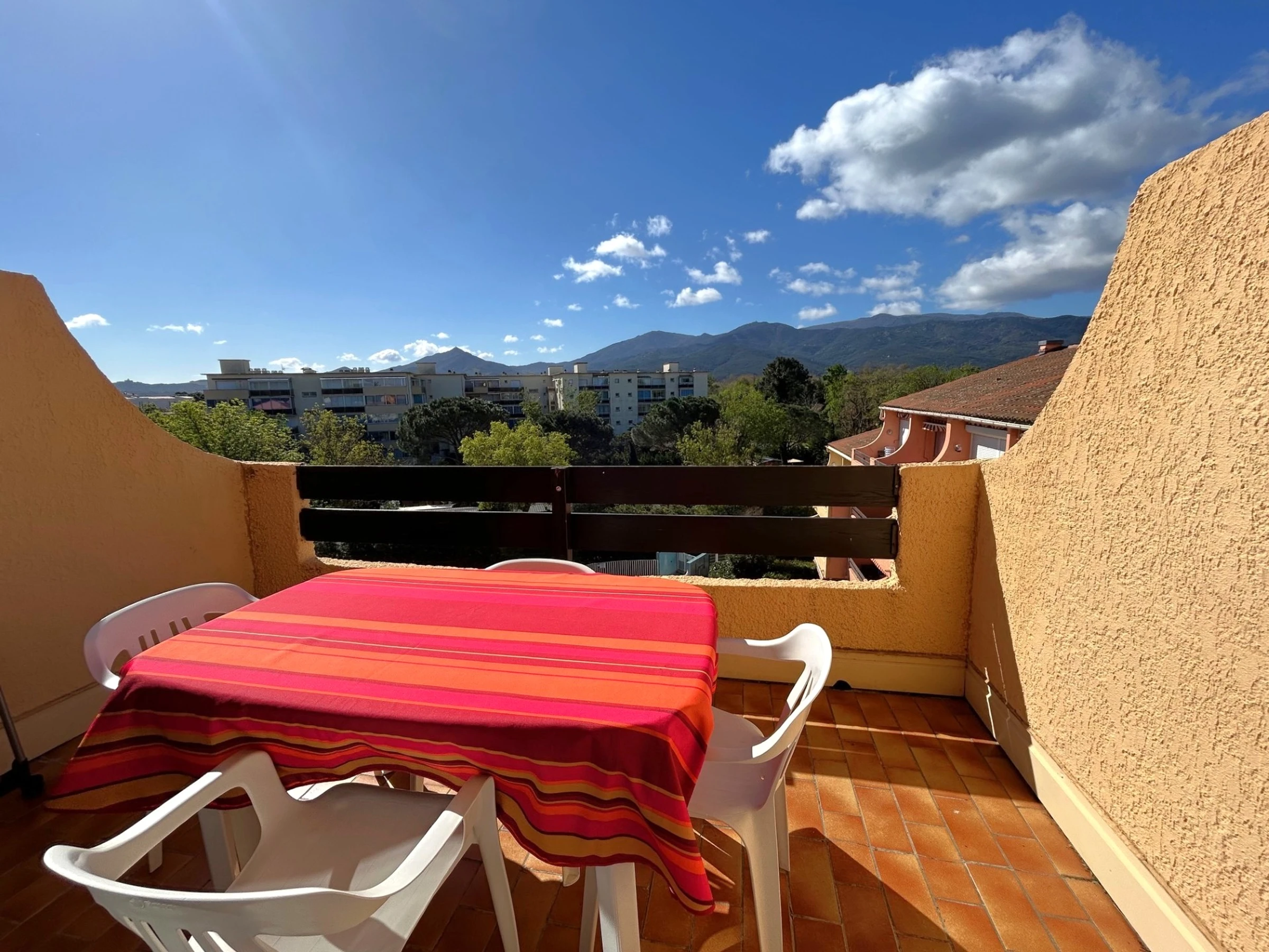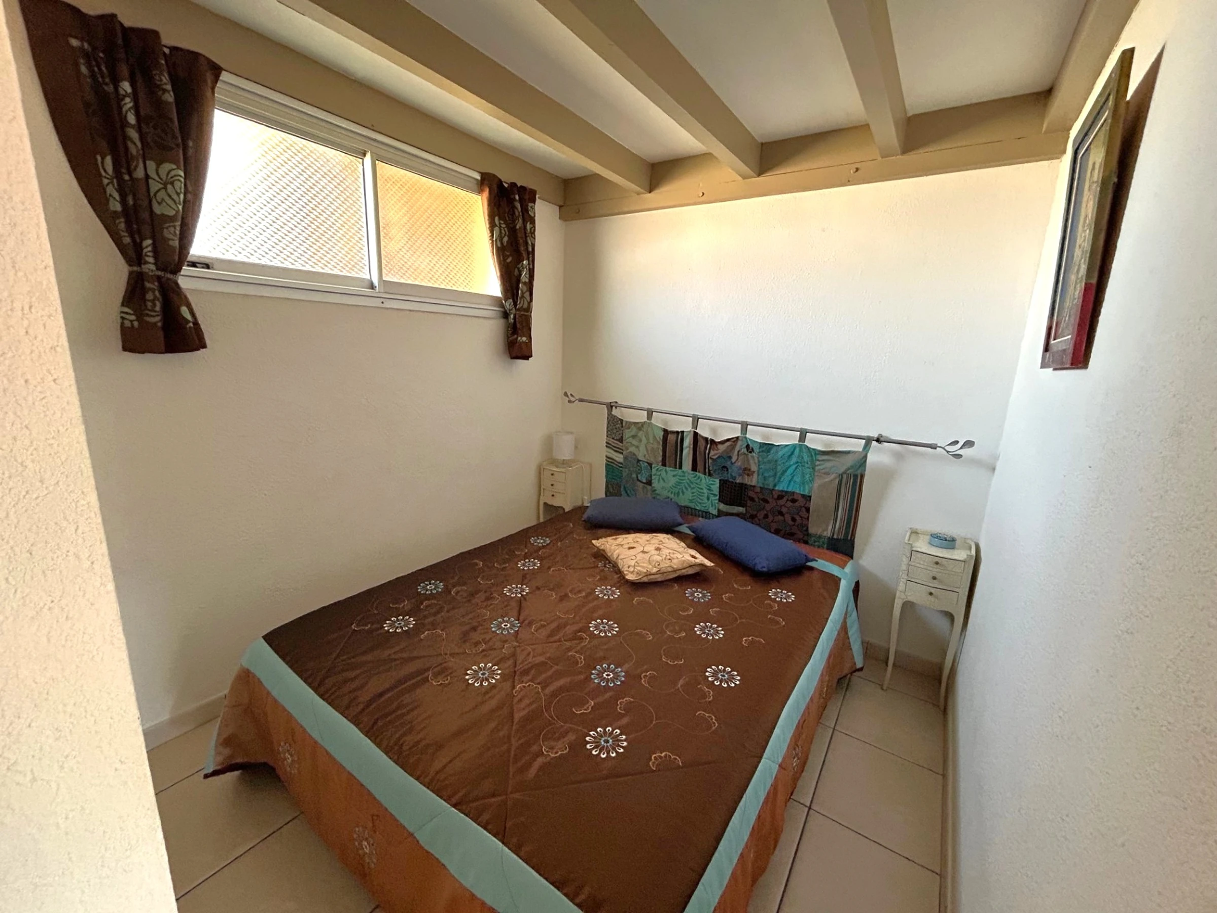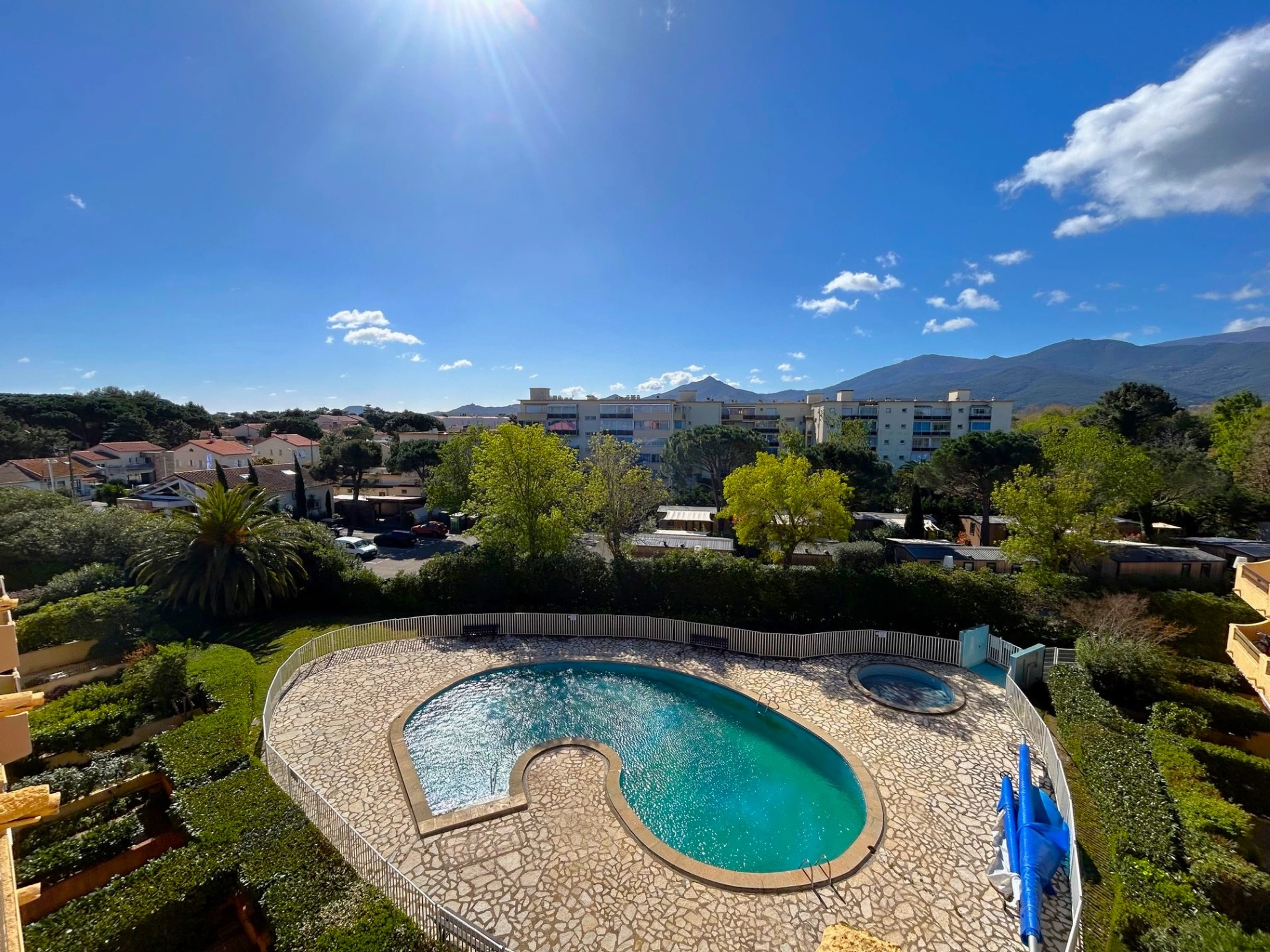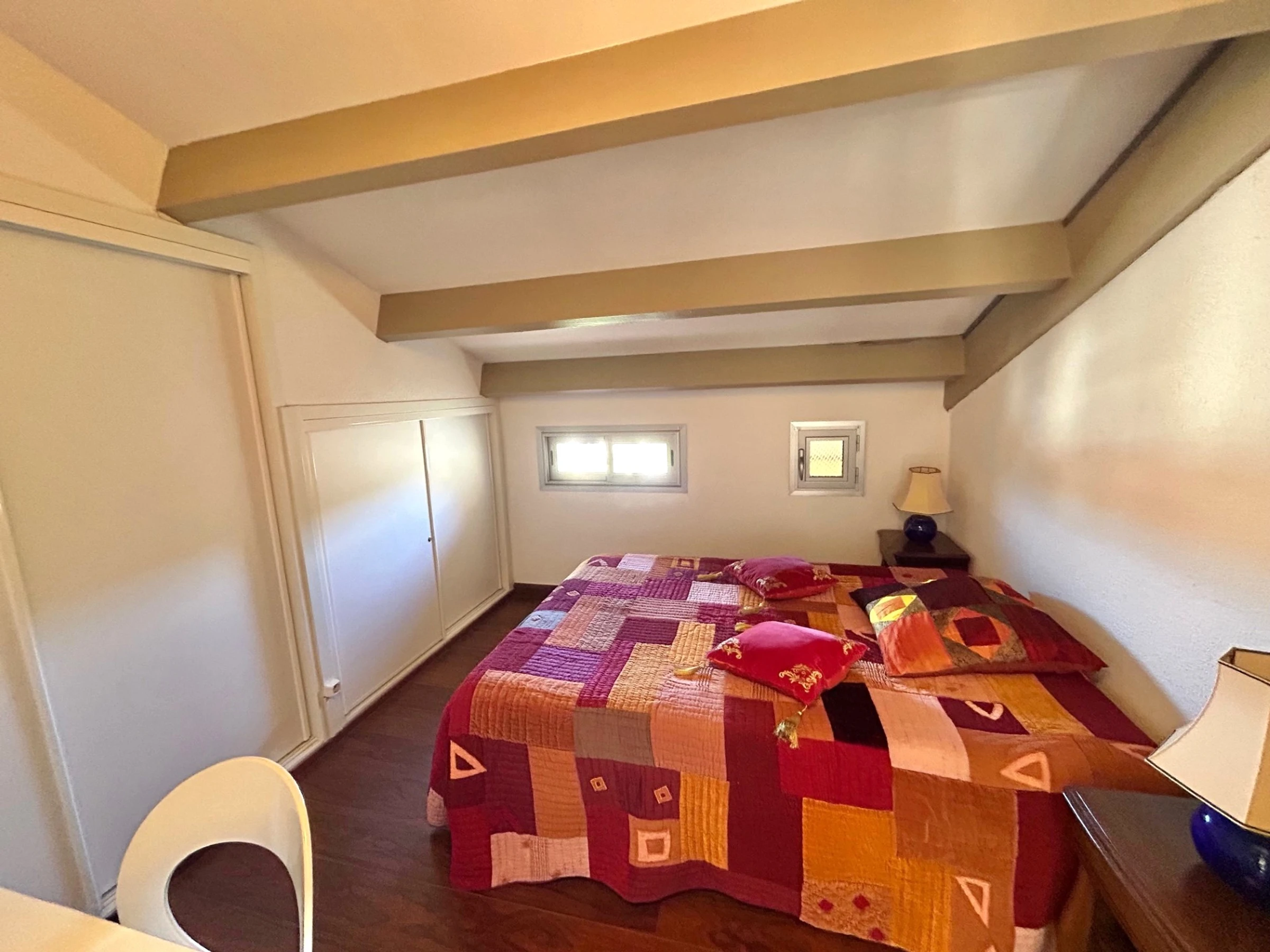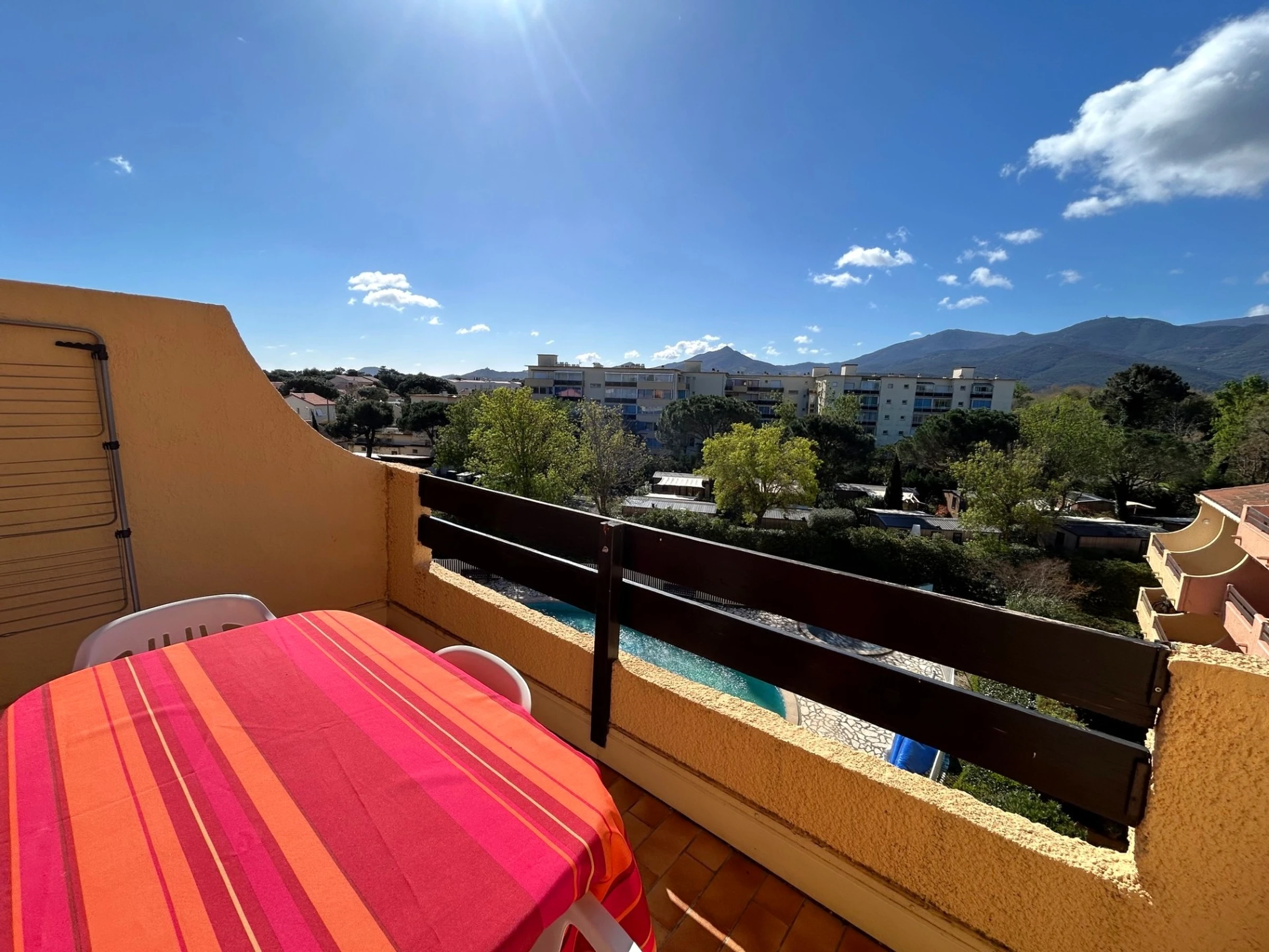 El apartamento está situado en la 4ª planta de una residencia a 350 m de la playa, que cuenta con piscina. Dispone de una cama doble (140 x 190 cm) en el dormitorio principal, otra cama doble (140 x 190 cm) en el dormitorio de la planta superior y un sofá cama doble en el salón. El apartamento está equipado con frigorífico/congelador, vitrocerámica, microondas, lavavajillas, lavadora y televisión. Además, cuenta con un balcón de 6 m² orientado al sur con toldo y una plaza de aparcamiento privada.