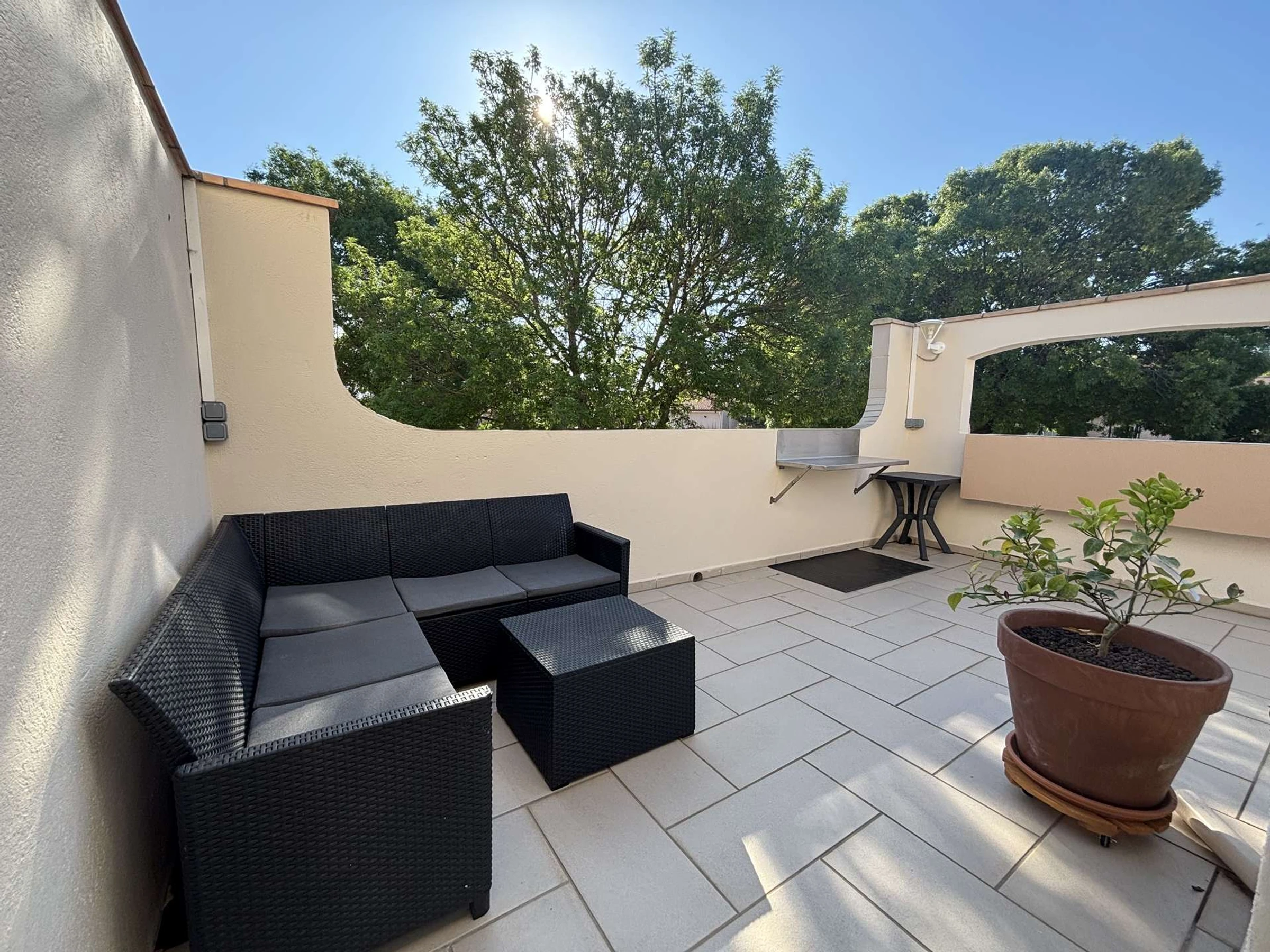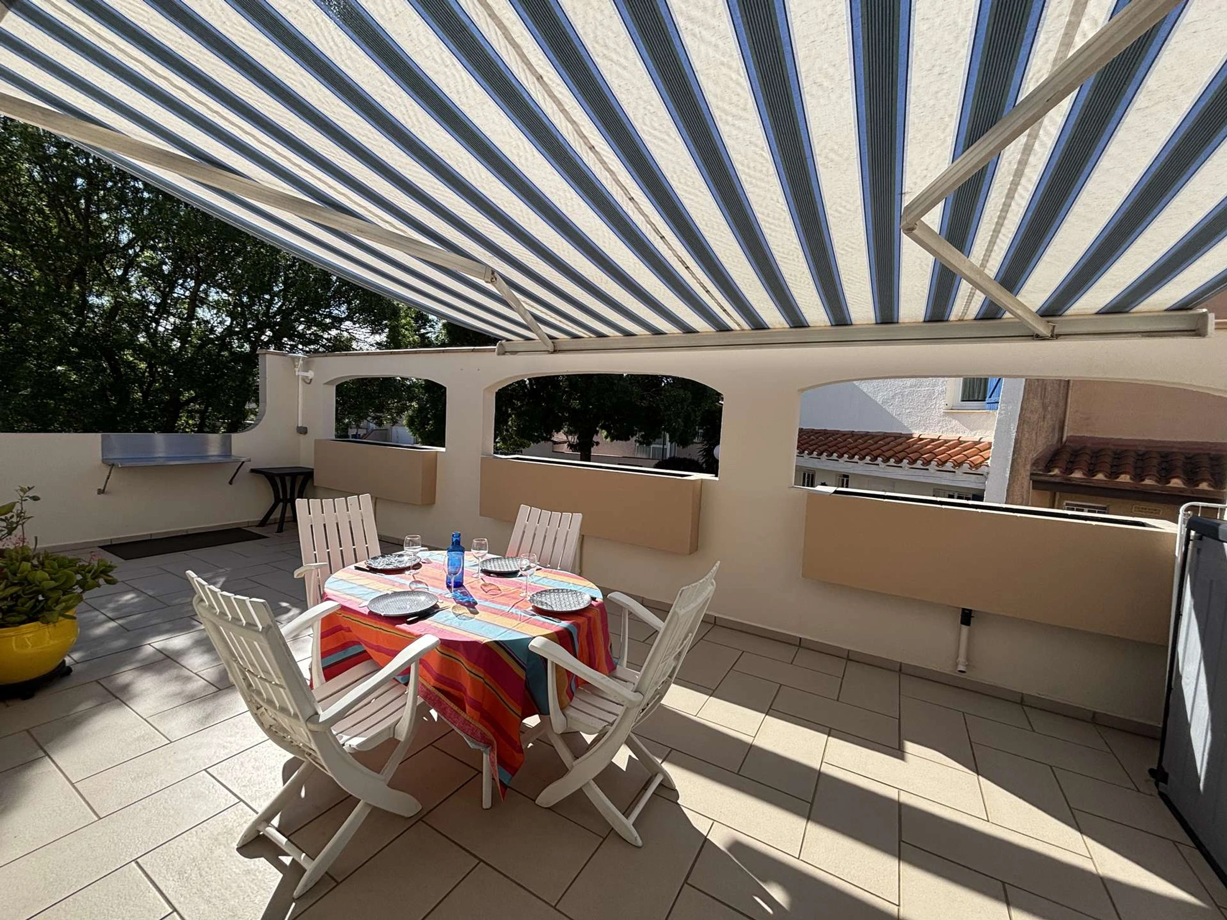 Disfrutará de la amplia y soleada terraza con muebles de jardín, perfecta para compartir una comida, relajarse o disfrutar de las cálidas noches del sur. Una puerta peatonal facilita el acceso a la playa a pie.