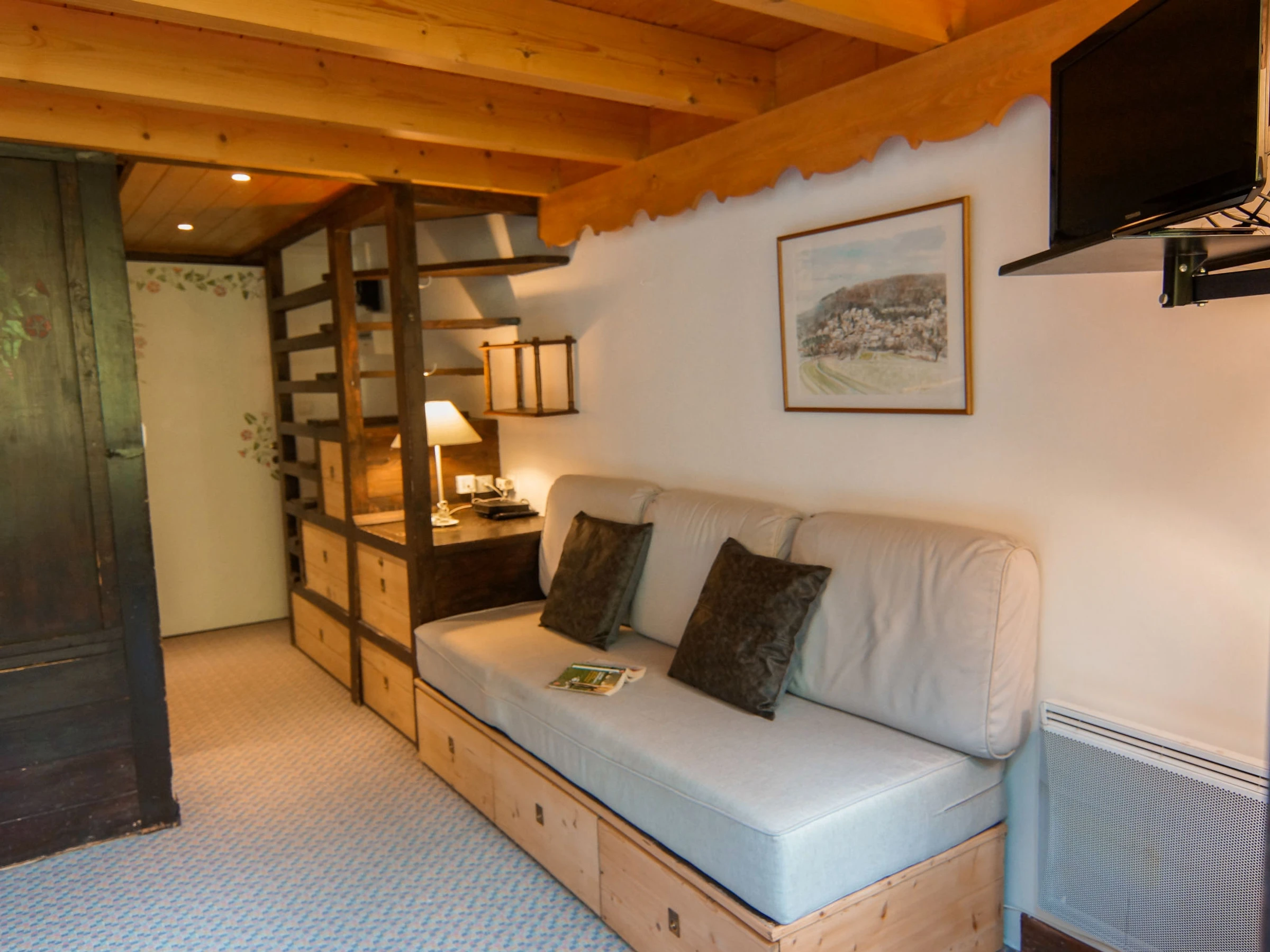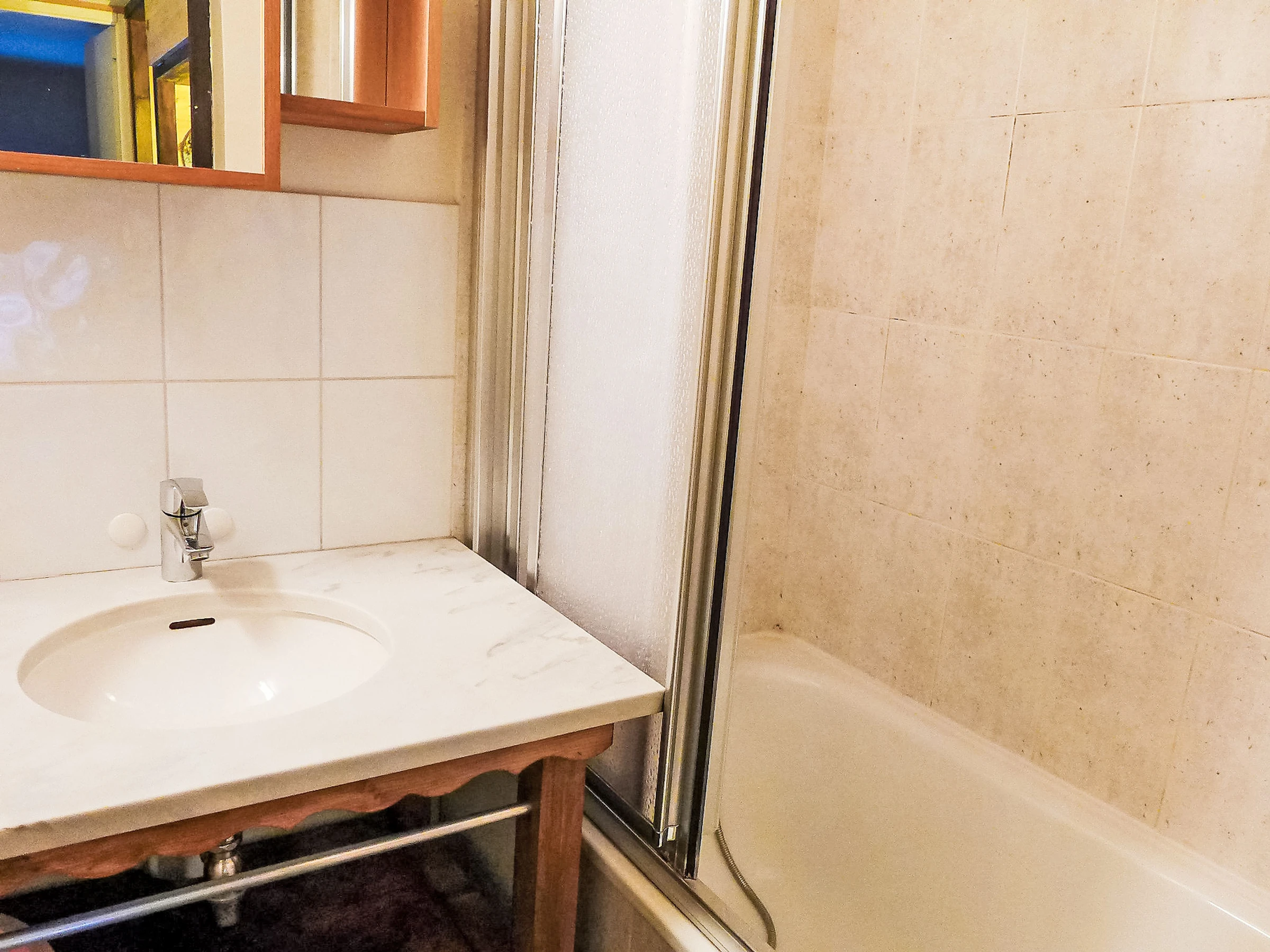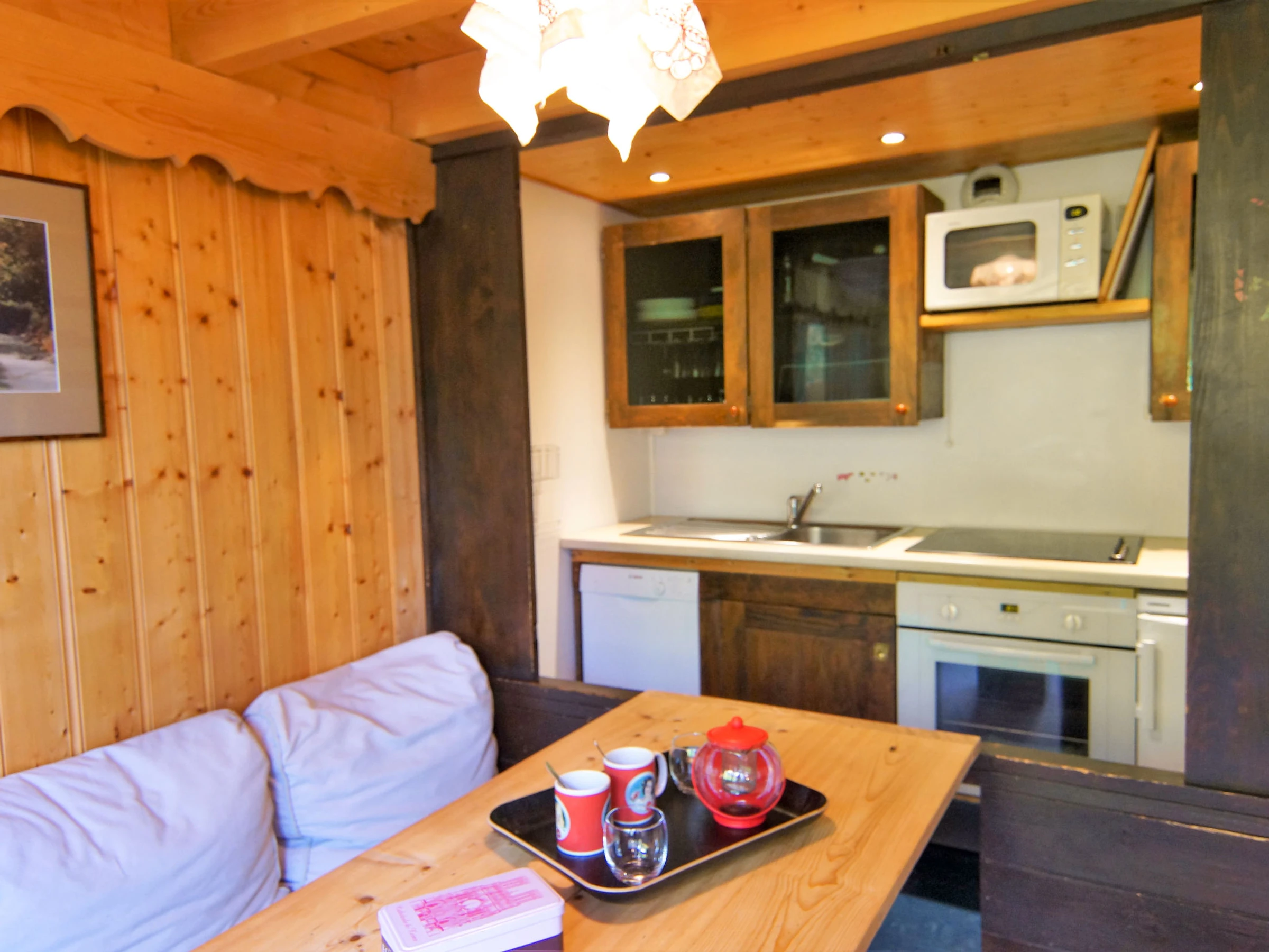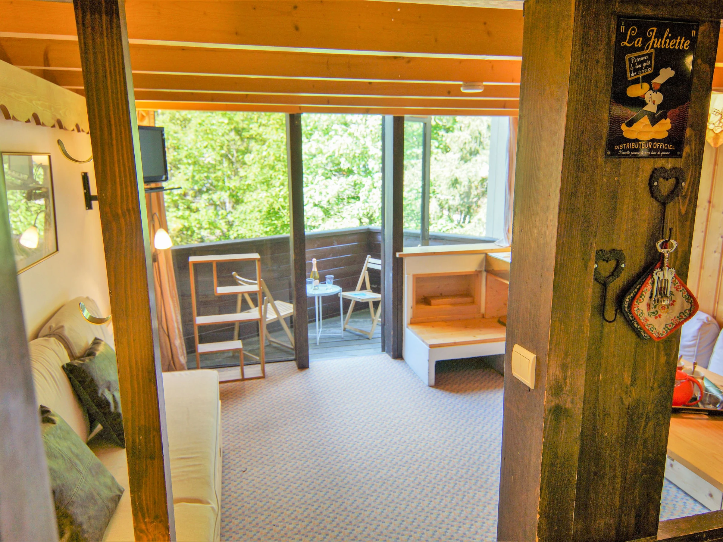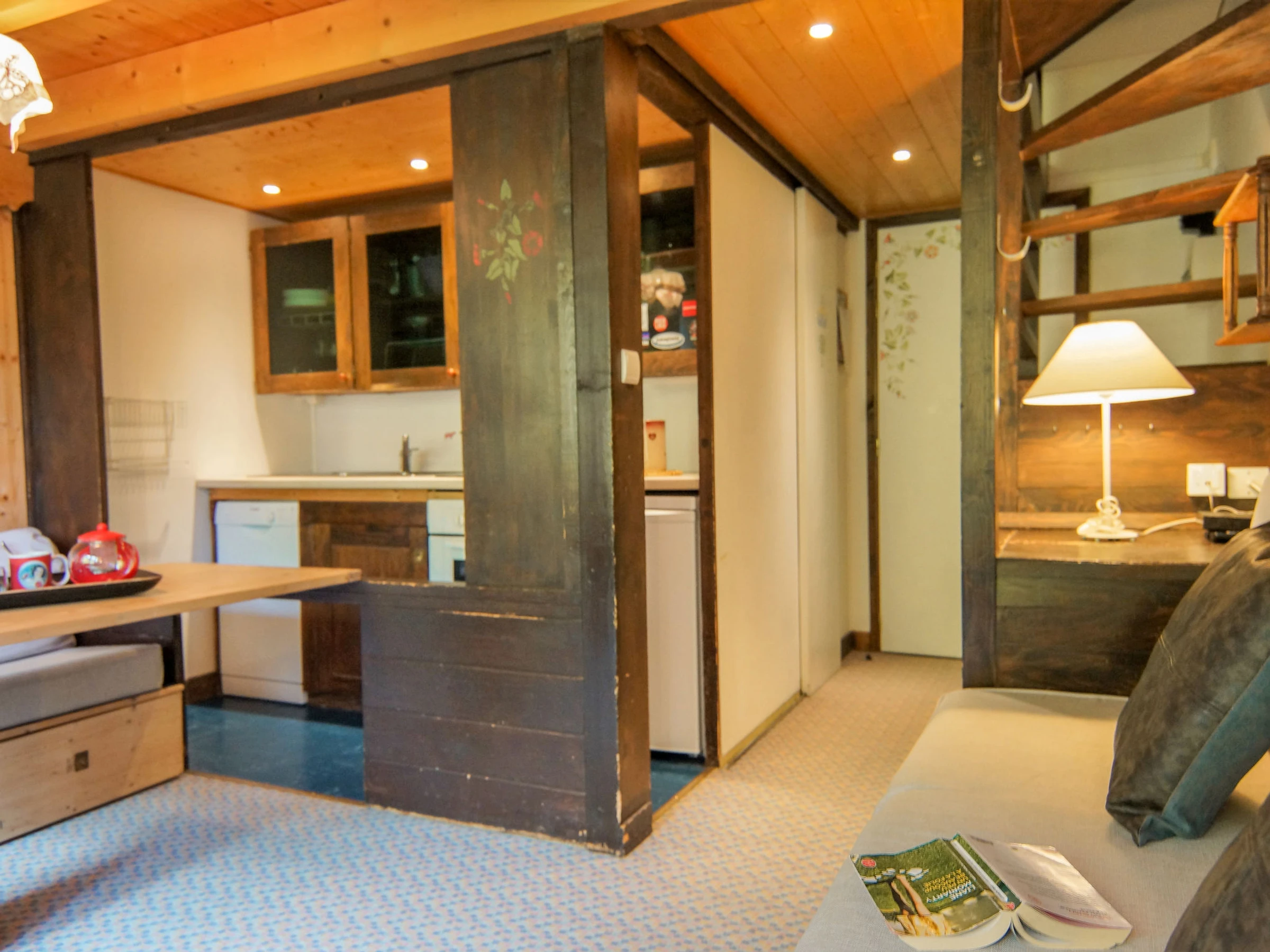Apartamento de 2 estancias 35 m2 en 2 plantas en el 2° piso. Salón-comedor con TV. Salida al balcón. Rincón-cocina (horno, lavavajillas, 4 placas de vitrocerámica, hervidor de agua eléctrico, microondas, cafetera eléctrica). WC separado. Planta superior: 1 dorm. con 1 cama de matrimonio (140 cm, 190 cm de longitud). Rincón-dormitorio con 1 x 2 literas (90 cm, 190 cm de longitud). Baño. Calefacción eléctrica. Balcón, orientación oeste. Vista bonita a las montañas. El alojamiento dispone de: Internet (Wifi, extra). A tener en cuenta: TV solamente FR. Detector de humo. En lugar de un dormitorio cerrado, algunos espacios para dormir están situados en una zona diáfana (galería, alcoba, etc.). [hidden]