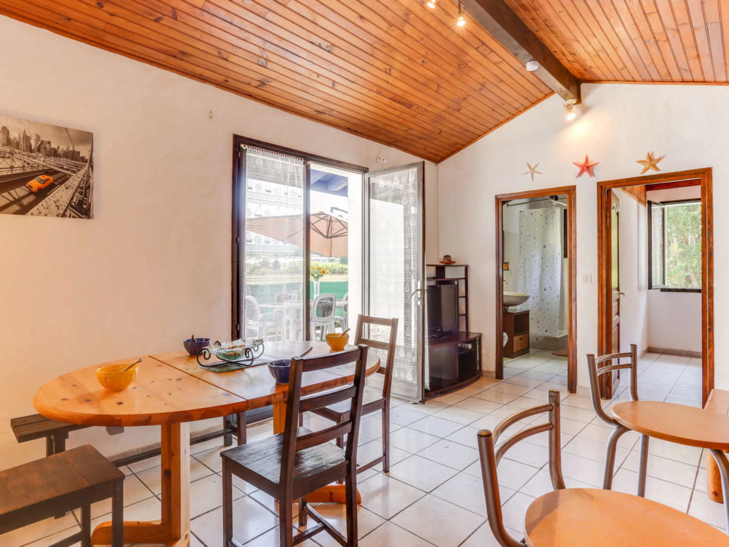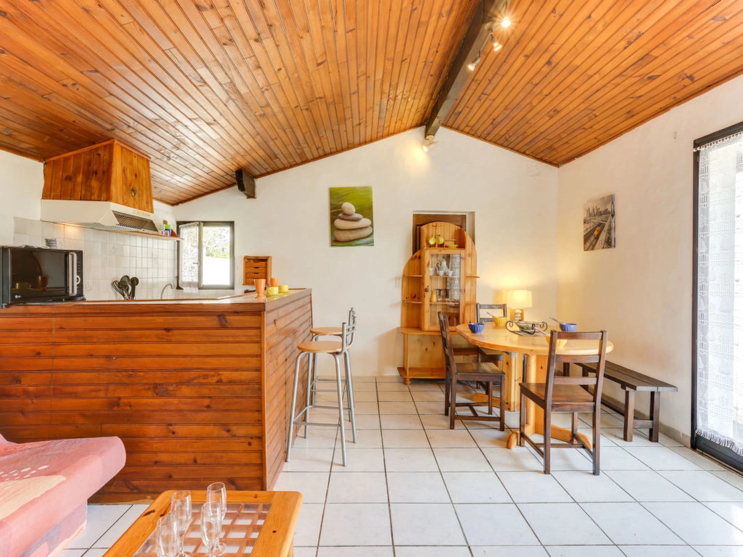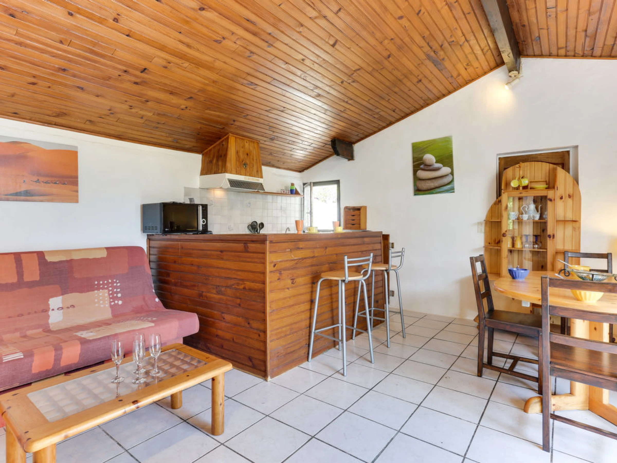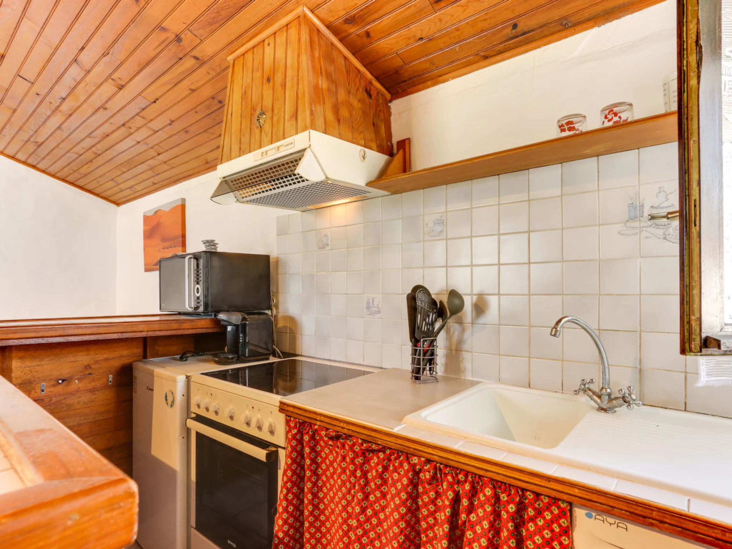Apartamento de 2 estancias 40 m2, en la planta baja. Salón-comedor con 1 sofá-cama doble (1 x 140 cm, 190 cm de longitud), TV (pantalla plana). Salida a la terraza, orientación sur con ducha/WC. Pequeña cocina abierta (horno, 4 placas de vitrocerámica, microondas, cafetera eléctrica). Ducha. Calefacción eléctrica. Terraza grande 40 m2. Muebles de terraza, barbacoa. Vista muy bonita a las montañas. El alojamiento dispone de: lavadora, plancha, secador de pelo. Internet (Wifi, extra). Plaza de aparcamiento junto a la casa. A tener en cuenta: alarma para humos.