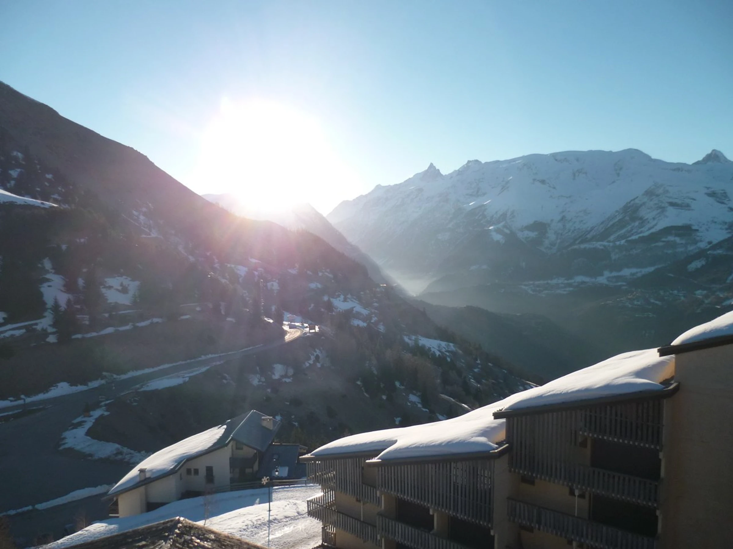 Apartamento tipo estudio con dormitorio y una amplia sala de estar. El balcón orientado al sur ofrece una magnífica vista panorámica de la sierra de Écrins.
