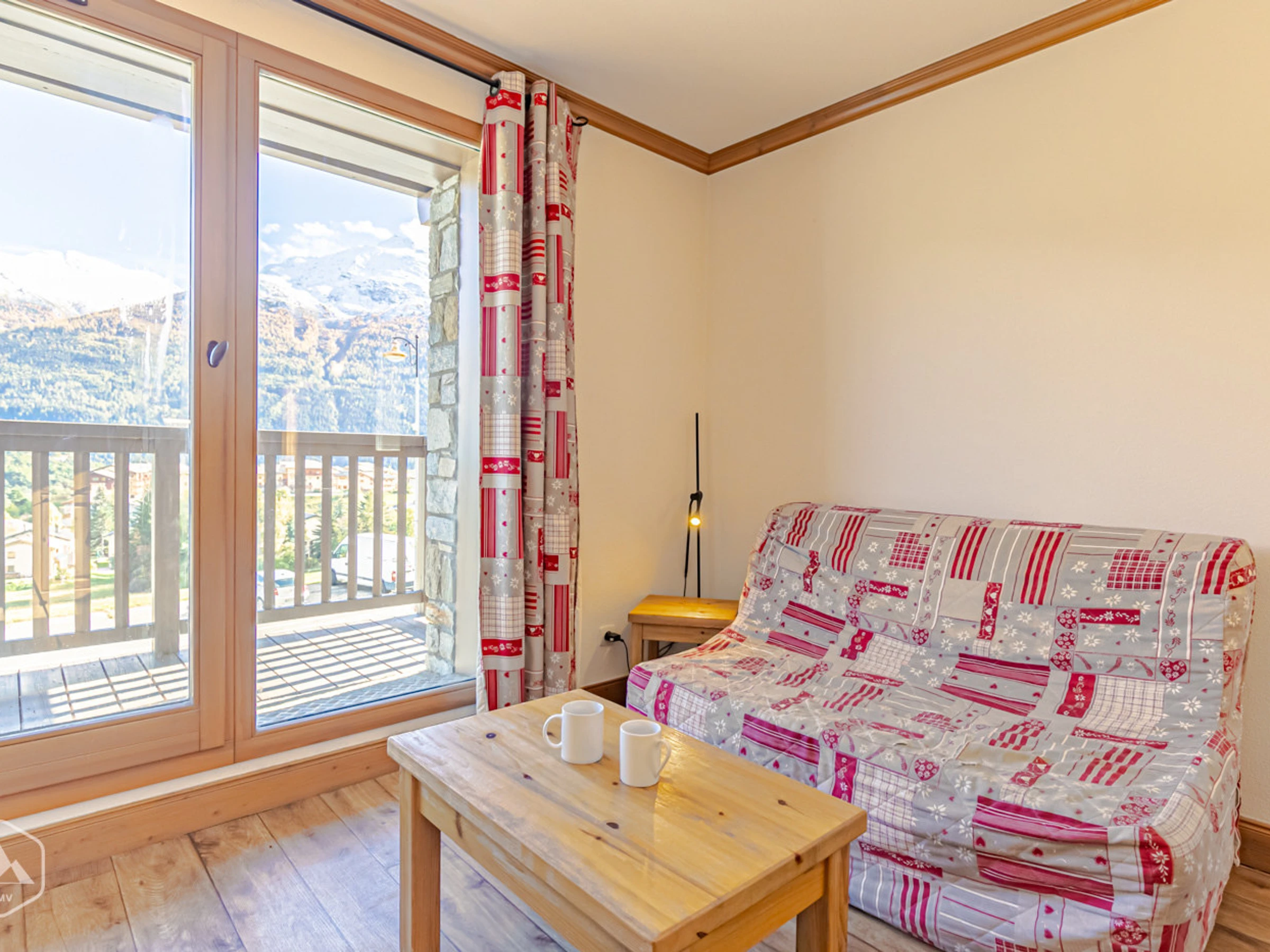 Aussois - Residencia "Le Clos d'Aussois" situada a 300 m de los remontes y cerca de los comercios. Apartamento tipo cabaña de 2 habitaciones - 6 personas - Amplio - 3* - 50 m² - Planta -2, pero en la primera planta del edificio - Orientación sureste con balcón. Mapa del pueblo de Aussois: D2/3 - Entrada "esquina" número 16