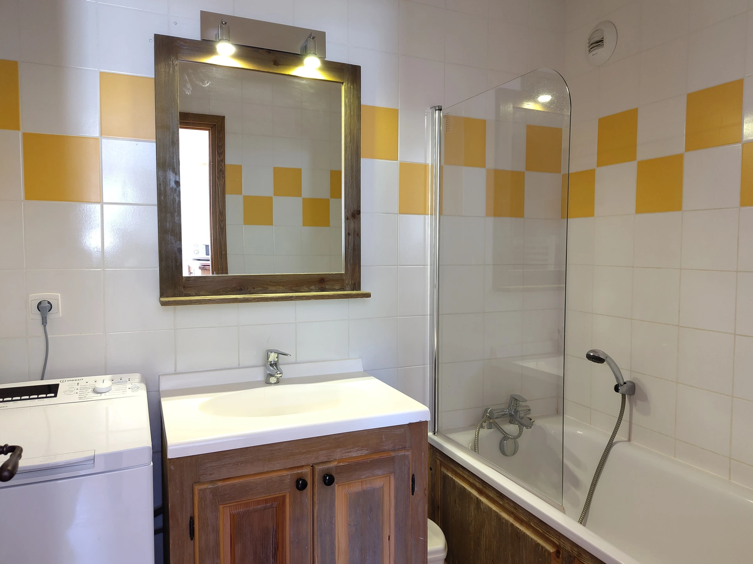 Baño: bañera, lavabo, lavadora. WC independiente.