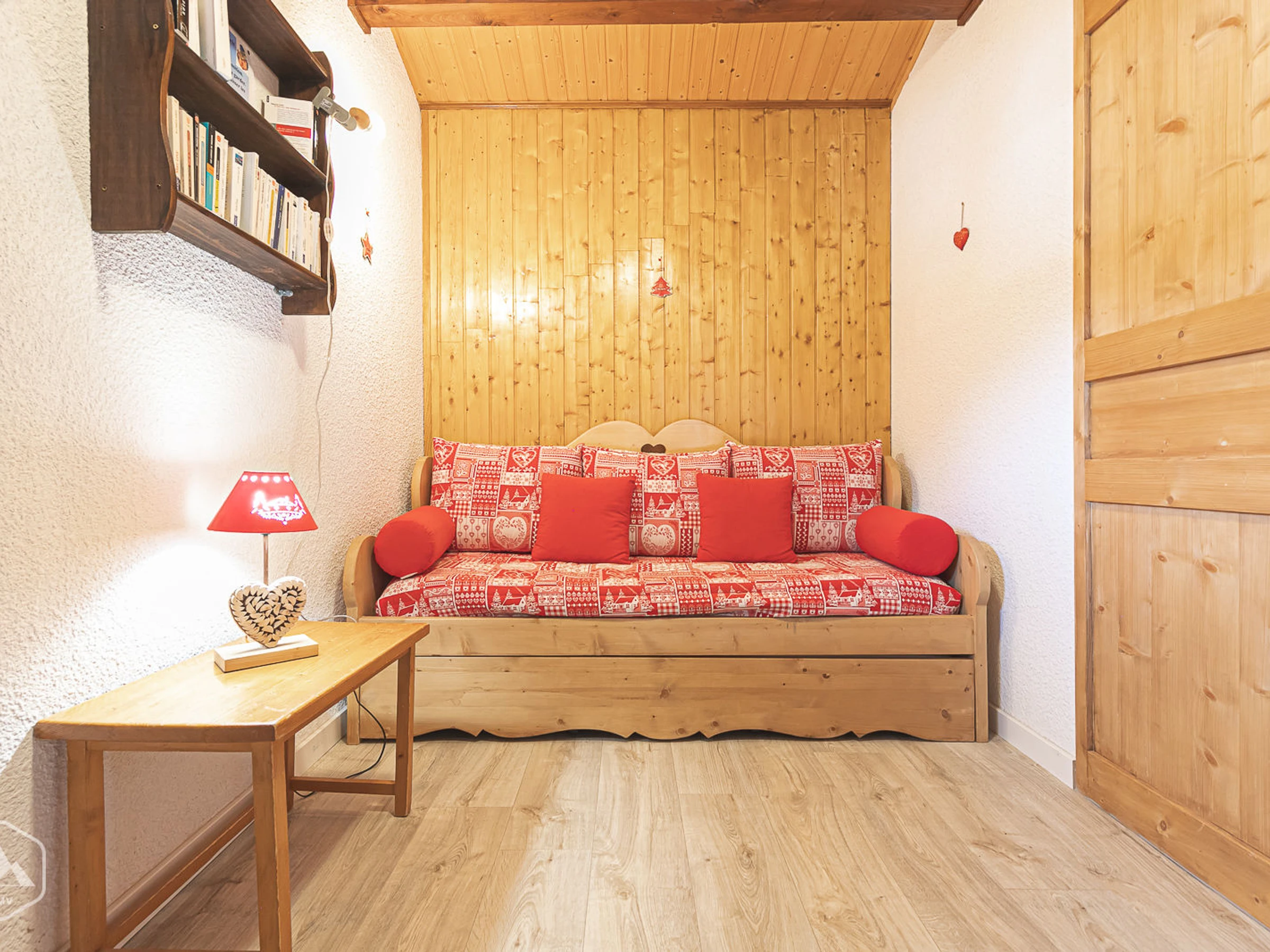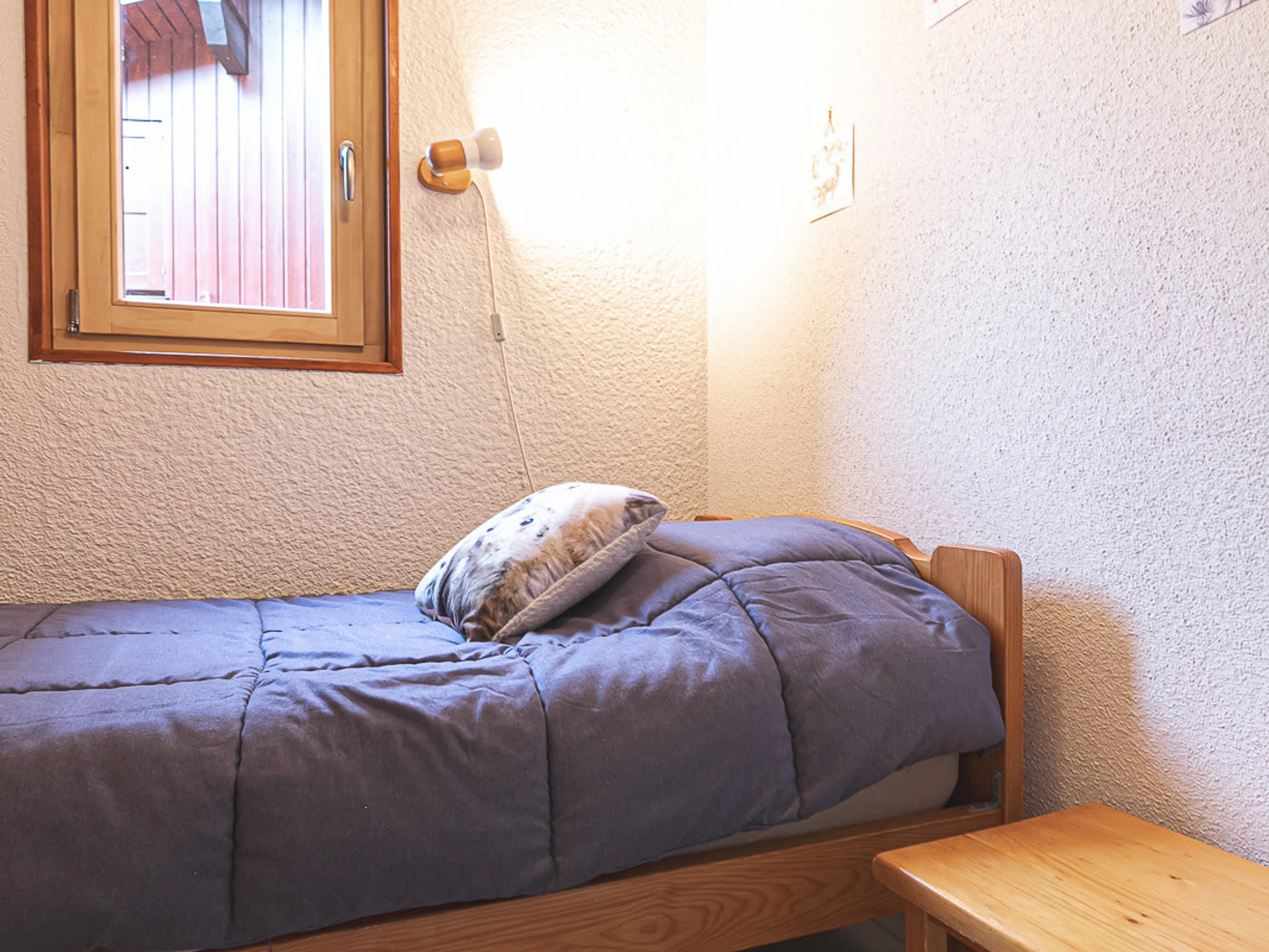 Apartamento tipo loft de 3 habitaciones para 6 personas (categoría 3 estrellas), 42 m², situado en la 3ª planta. Vistas panorámicas al pueblo y a las montañas, orientación sureste, con una logia de aproximadamente 5 m². Conexión Wi-Fi gratuita en toda la residencia.