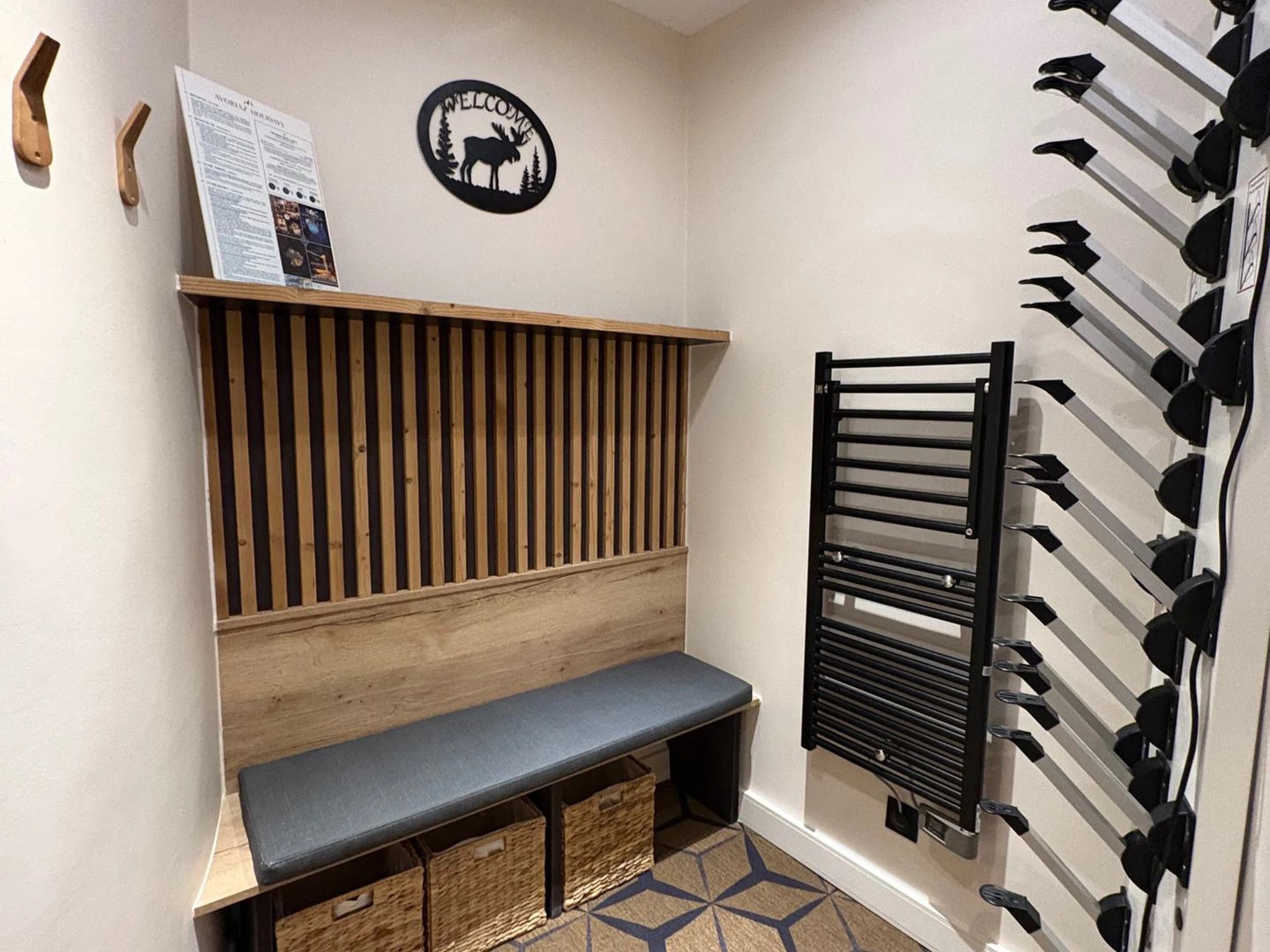 - Entrada convertida en guardaesquís con calientabotas y guardaesquís