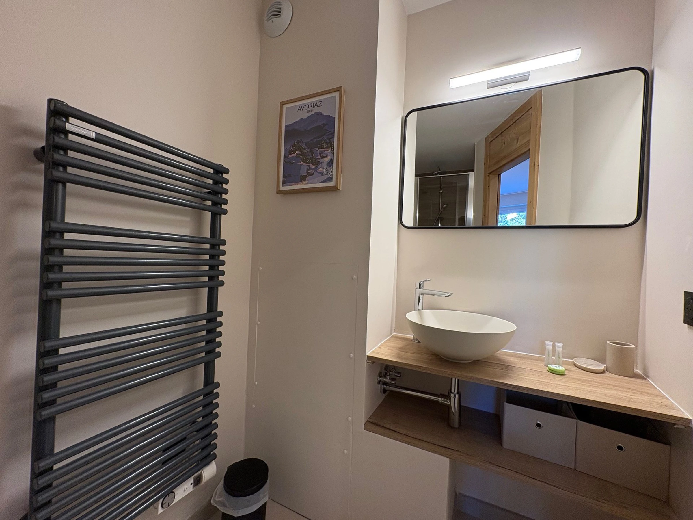 Desde el momento en que entre, le encantará un amplio y luminoso salón con una acogedora zona de estar y chimenea, ideal para disfrutar de tardes relajantes. La cocina, moderna y funcional, está totalmente equipada (nevera, vitrocerámica, horno, lavavajillas y cafetera Nespresso profesional con cápsulas disponibles en la agencia). Un amplio balcón orientado al sureste completa el espacio, con vistas panorámicas al valle de Morzine y a las montañas circundantes.