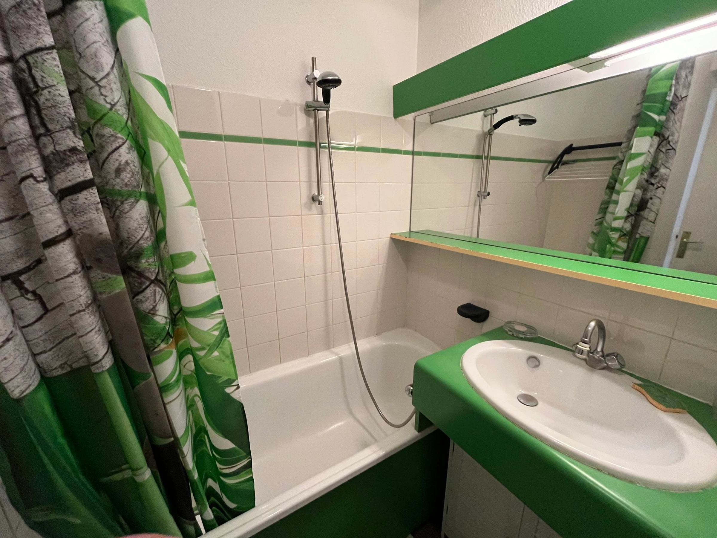 - Un baño con bañera y WC.