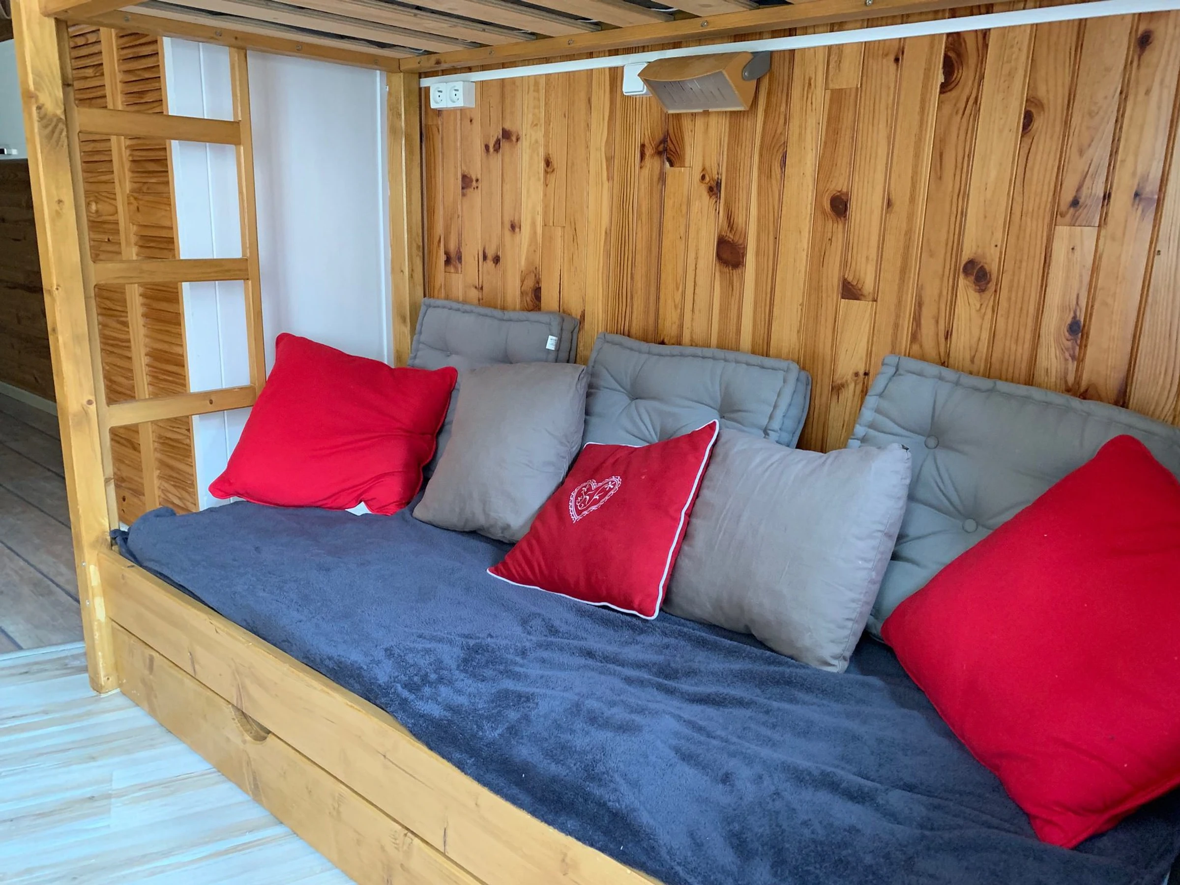 Cocina con microondas, nevera y vitrocerámica - Salón-comedor - Sofá cama doble para 2 personas + 1 cama individual.