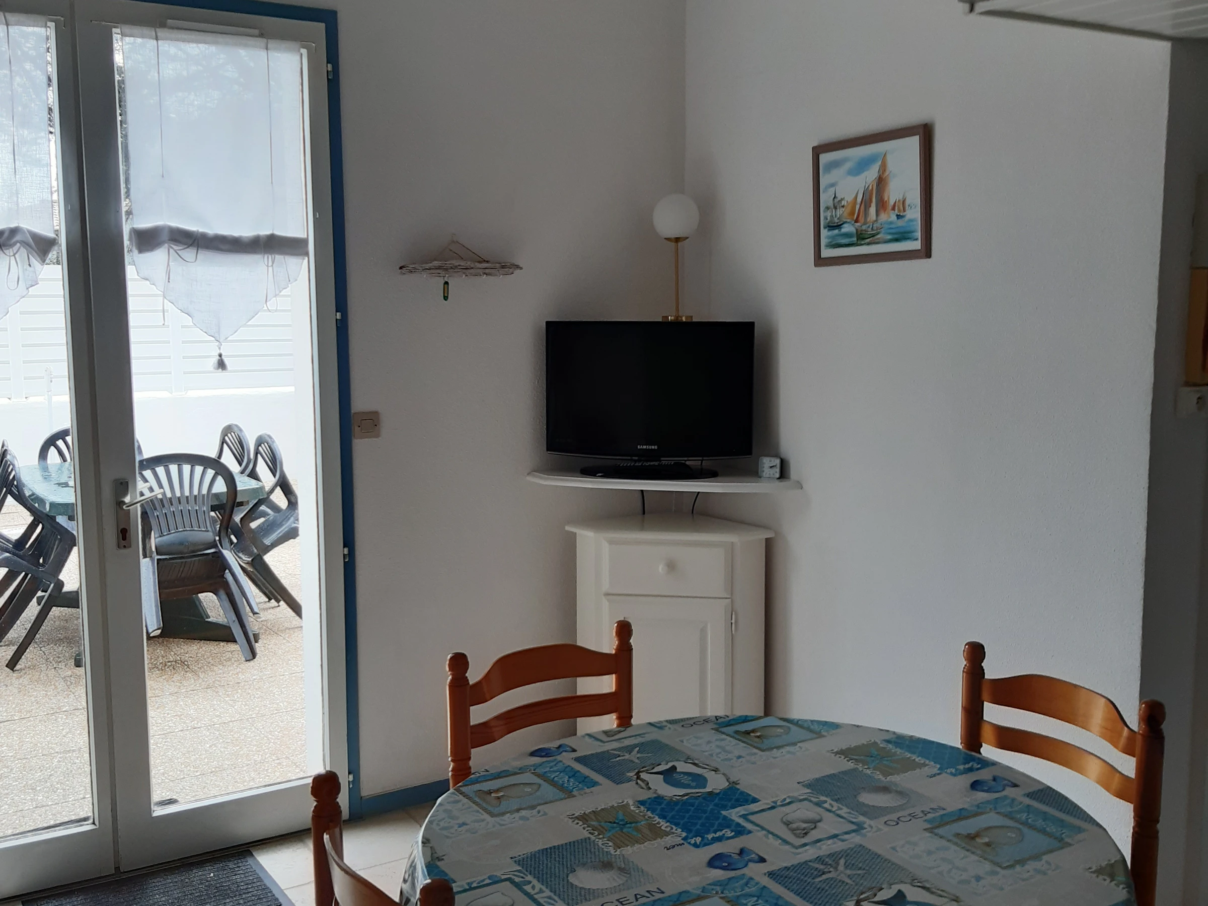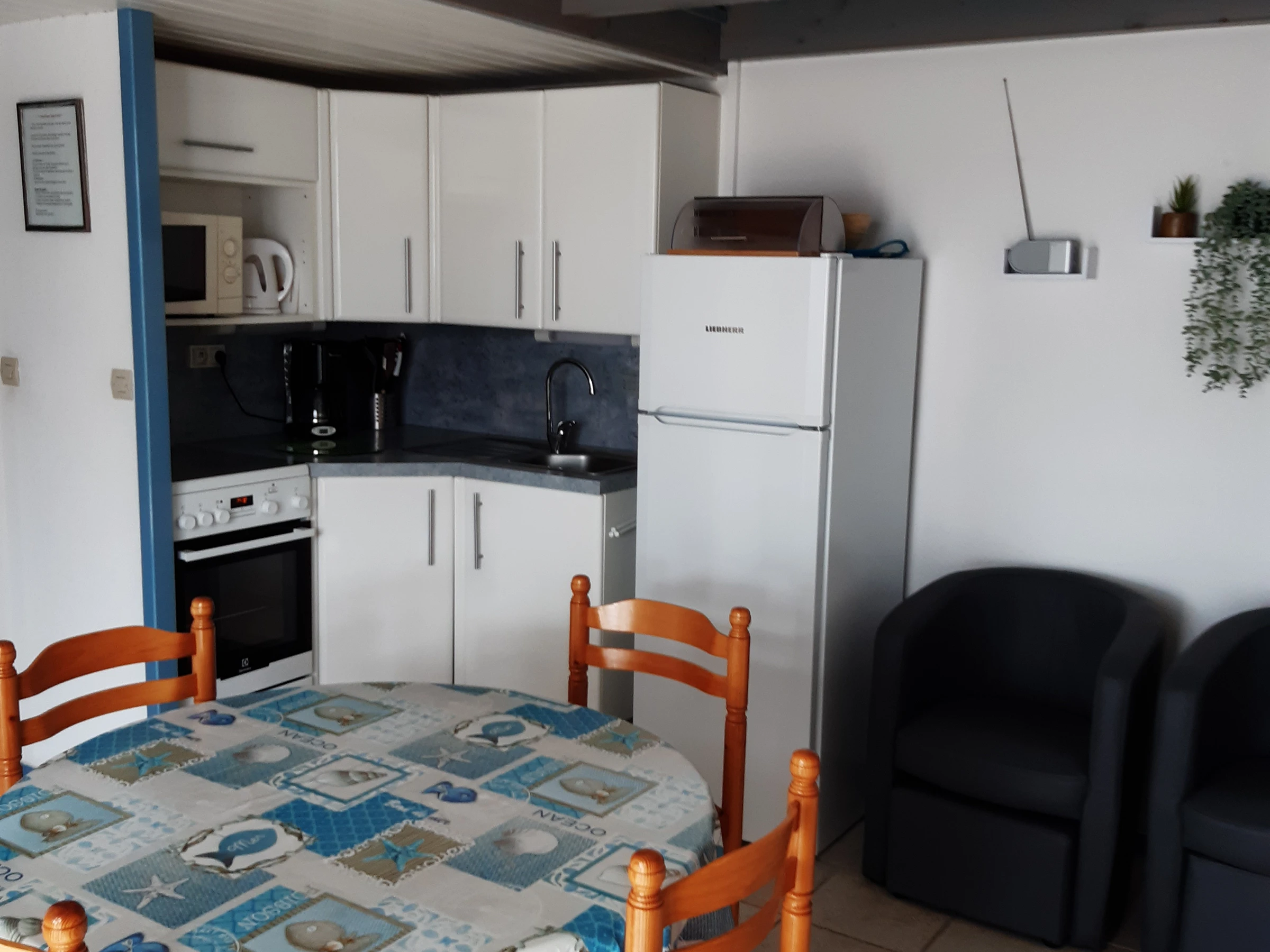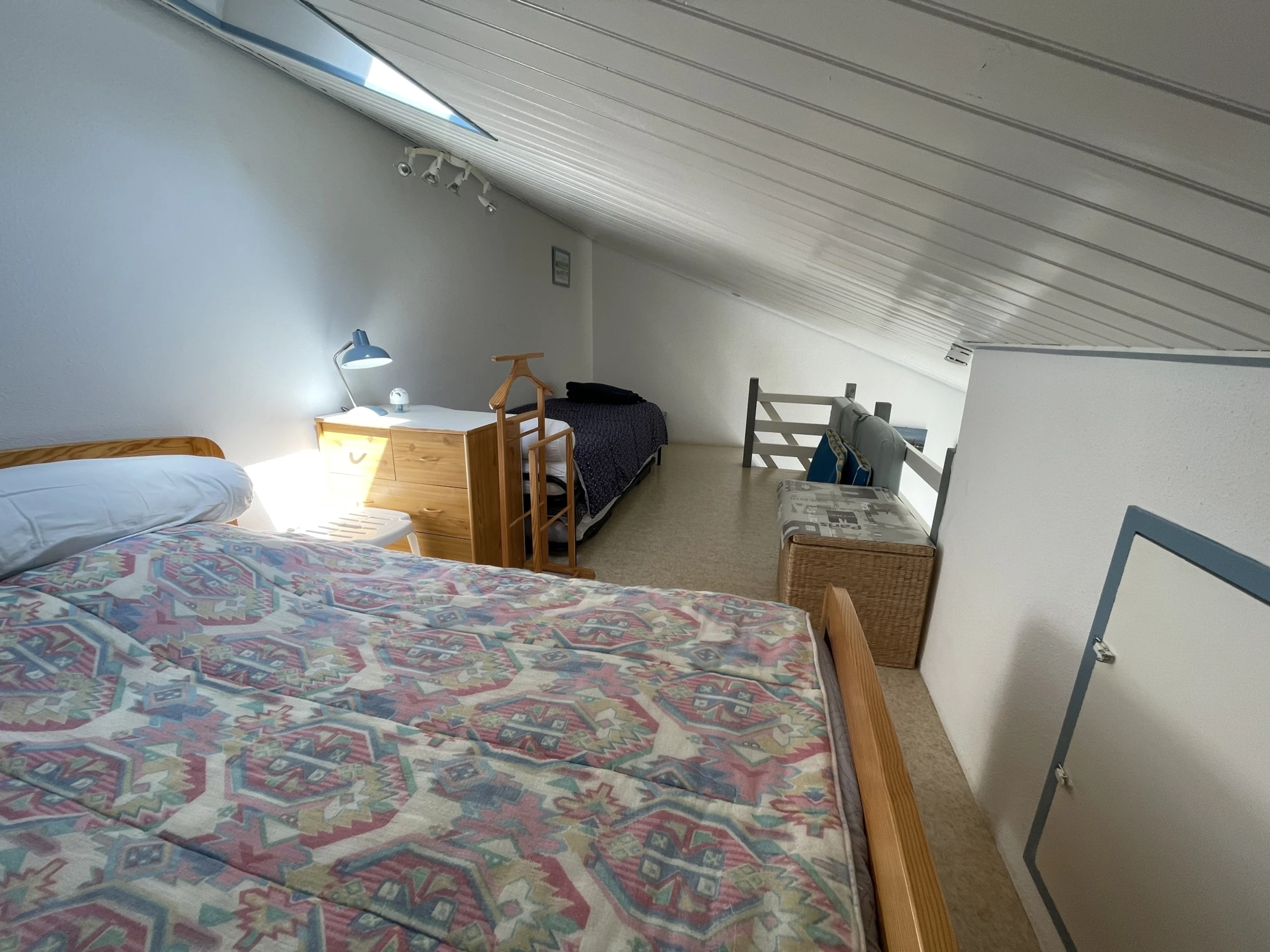 Casa adosada estándar de 30 m² en residencia de vacaciones - 4/6 personas - compuesta por: en la planta baja: salón con cocina americana, un dormitorio con cama de 140 cm, cuarto de ducha, WC. Planta alta: altillo de altura reducida con 1 cama (140 cm) y 2 camas nido modulares de 90 cm. Lavadora, microondas, televisión de pantalla plana, muebles de jardín, barbacoa eléctrica y 2 tumbonas. Patio cerrado con terraza. Aparcamiento cercano en la residencia. No se admiten mascotas. Posibilidad de paquete de limpieza de 87€.