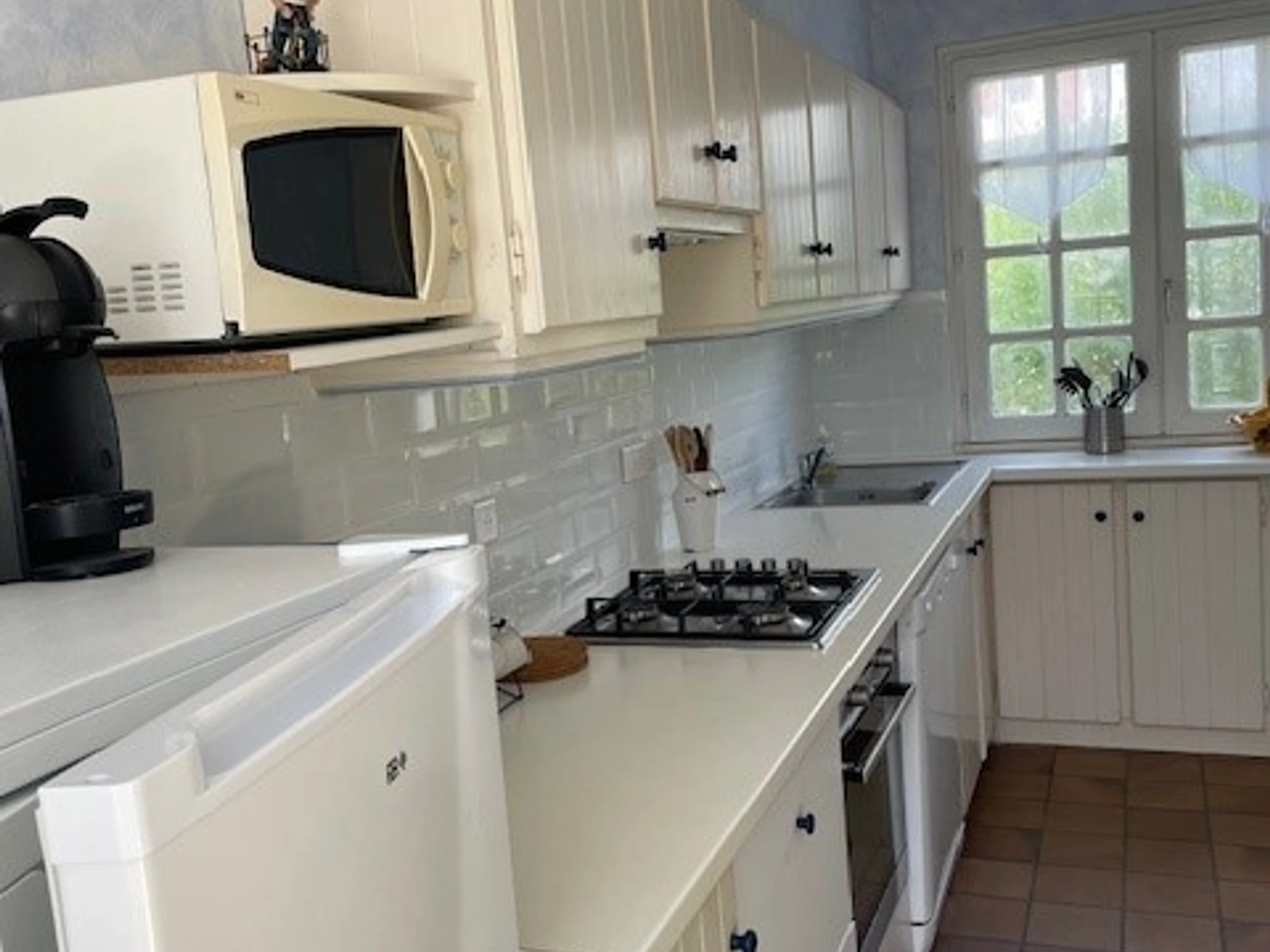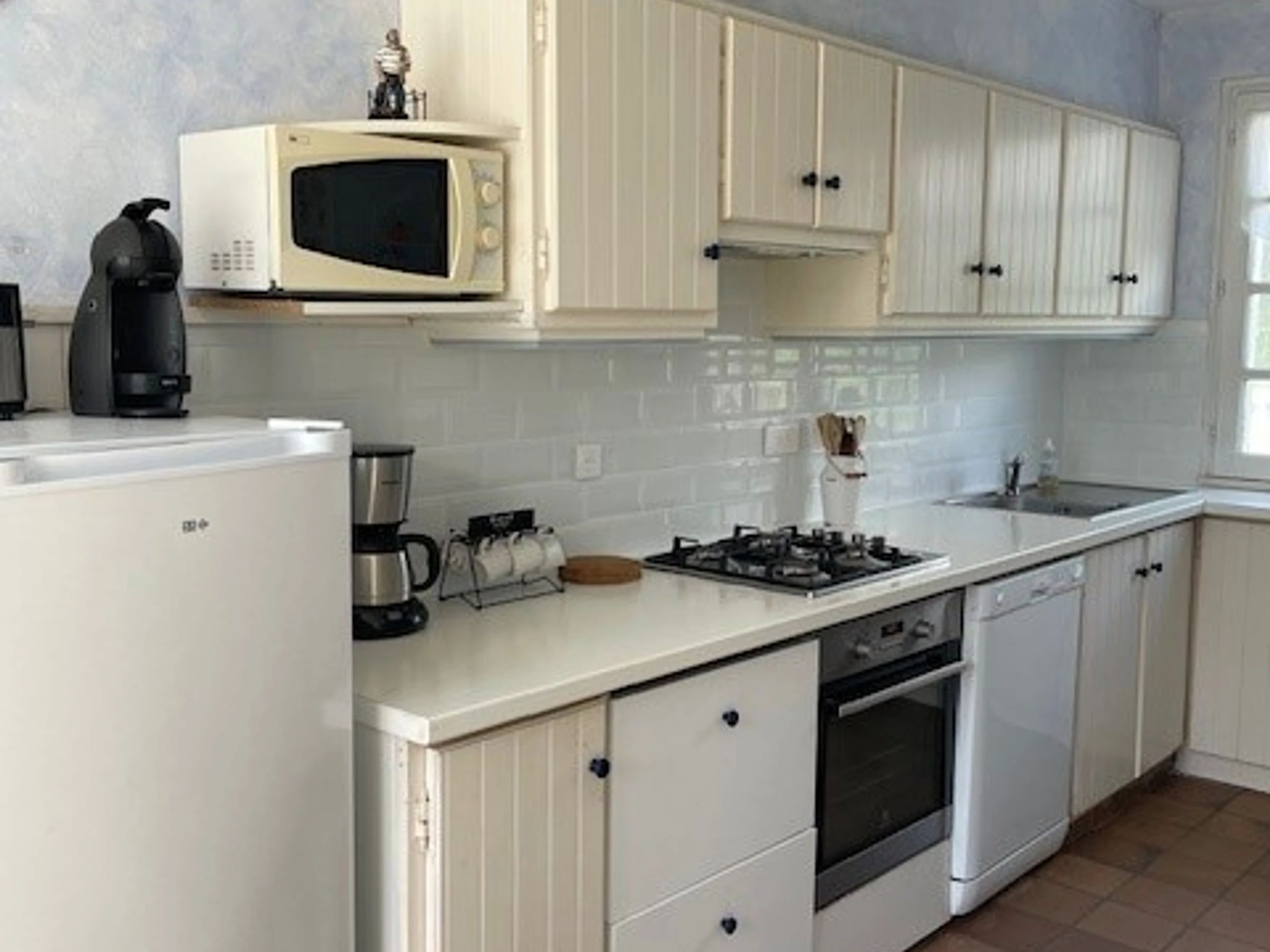 Lavadora, lavavajillas, horno, placa de gas, microondas, frigorífico/congelador, TV de pantalla plana con reproductor de DVD, muebles de jardín, 2 tumbonas, barbacoa fija cubierta, terraza. Aparcamiento en el jardín/patio, luego espacio en el aparcamiento. Se admiten mascotas pequeñas con previo acuerdo de la agencia. Posibilidad de paquete de limpieza: 108€.