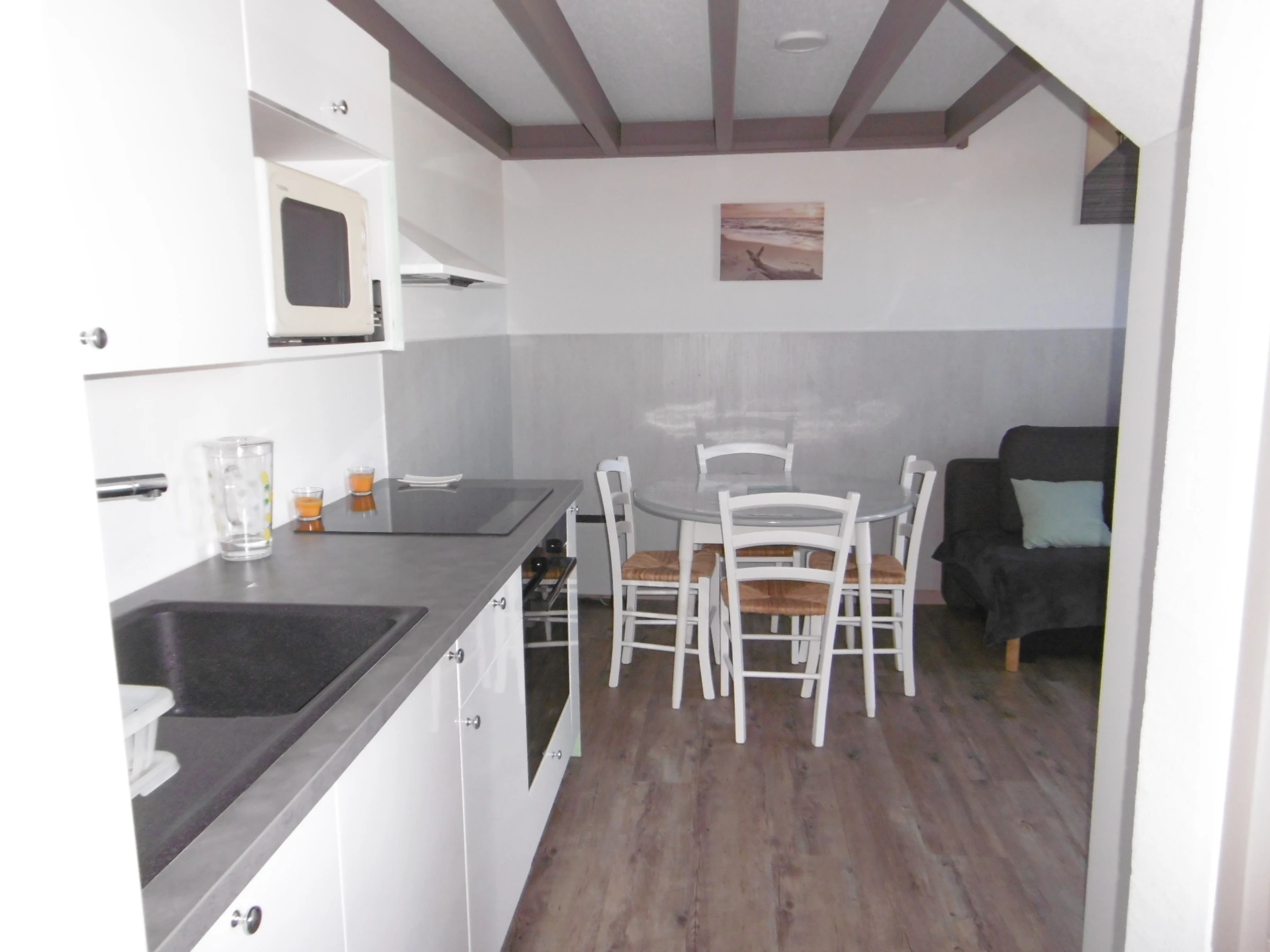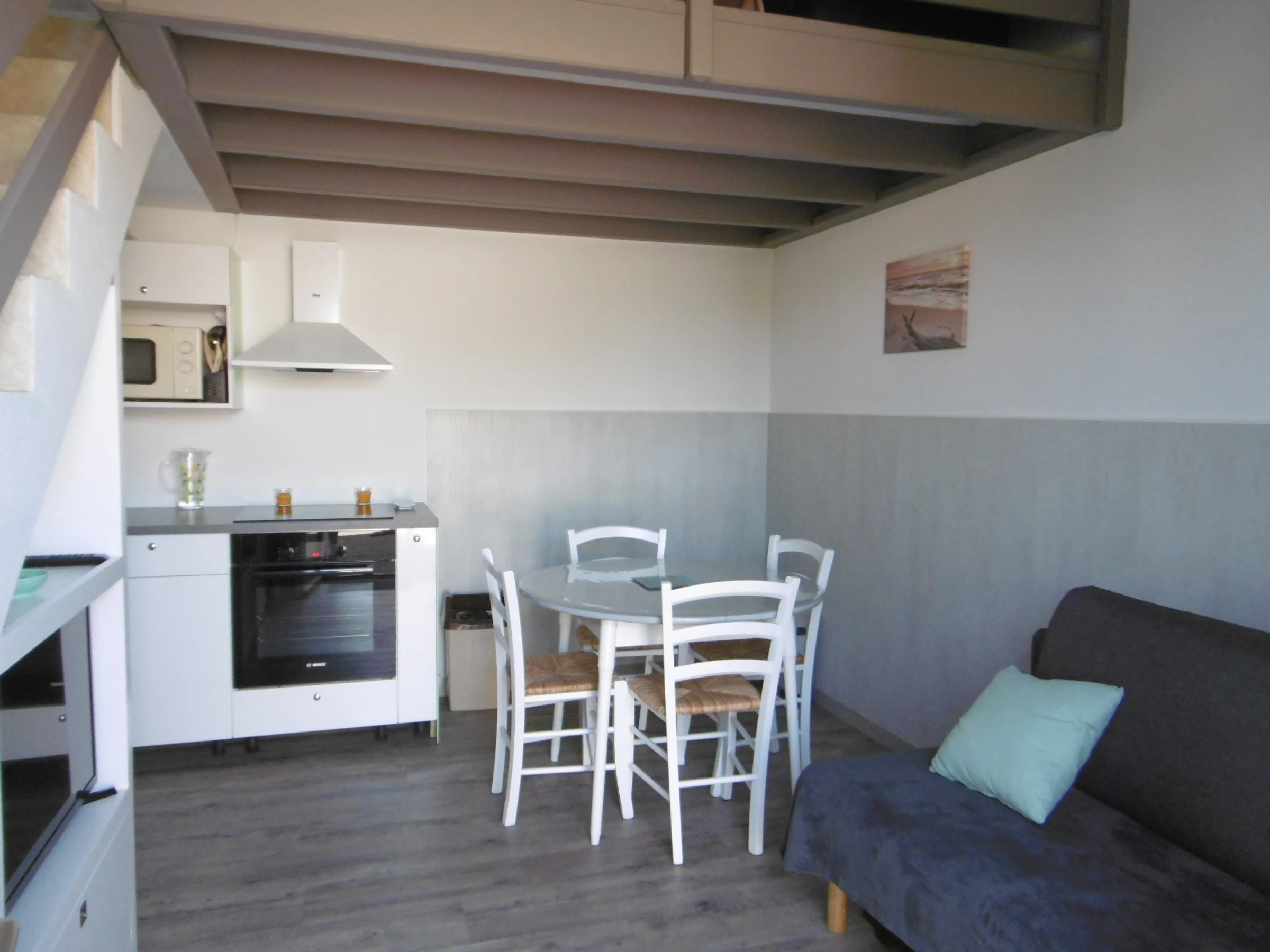 Cómoda casa adosada en residencia - 4/6 personas - aproximadamente 32 m² que incluye en la planta baja un salón-comedor con cocina americana amueblada y equipada, un dormitorio tipo cabina con una cama de 140 cm, un aseo. En la planta superior, un dormitorio tipo cabina con dos camas de 80 cm, un altillo con sofá cama y televisión, baño con ducha. Lavadora, lavavajillas, horno, microondas, congelador, televisión de pantalla plana. Jardín cerrado. Mobiliario de jardín, 2 tumbonas, barbacoa móvil. Se admiten perros con el acuerdo de los propietarios. Aparcamiento en la residencia. Posibilidad de paquete de limpieza de 87€.