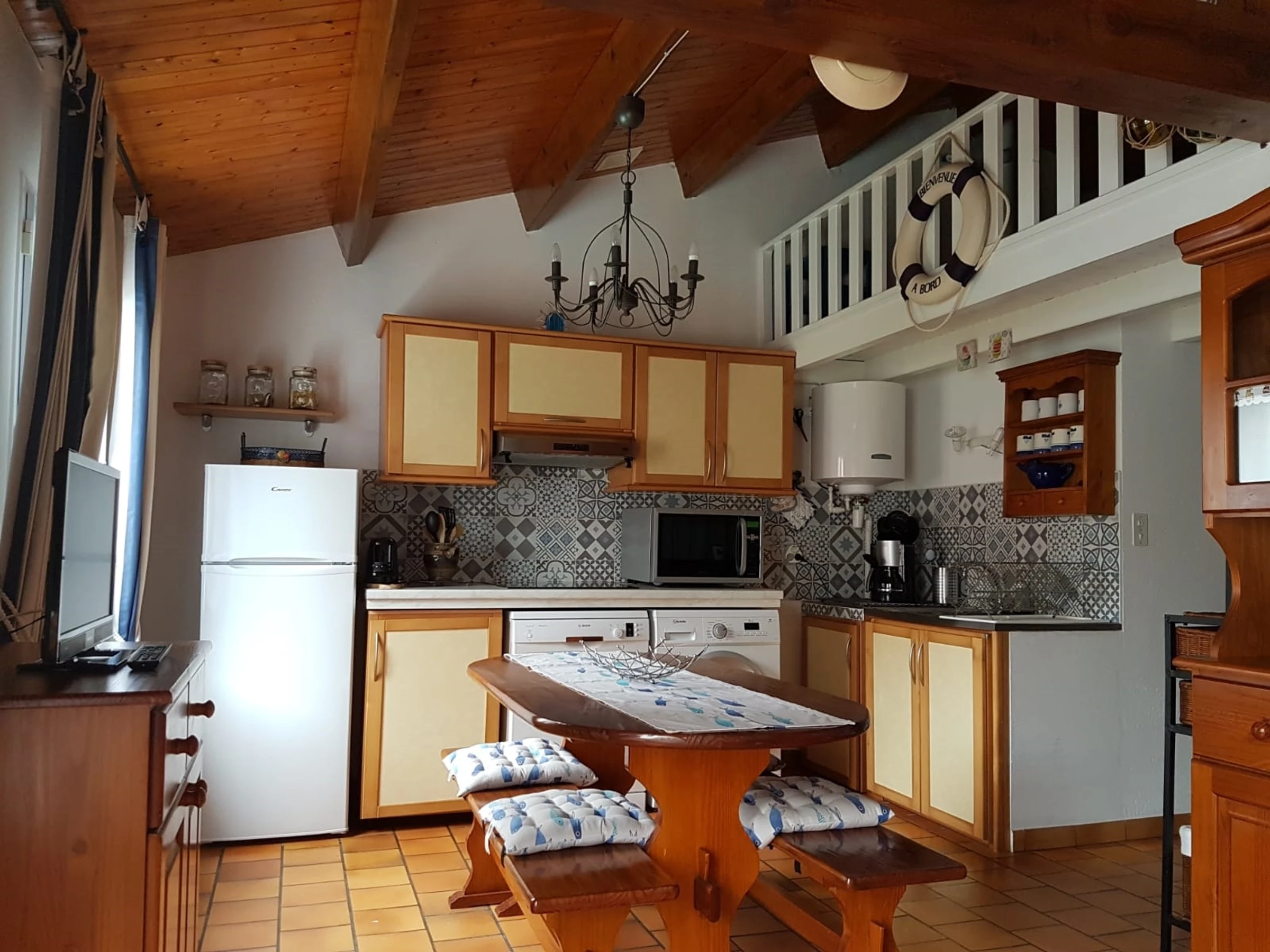 Cómoda casa de una sola planta en una pequeña residencia – aproximadamente 30 m² – 2/4 personas – compuesta por cocina-salón con sofá cama de 140 cm, un dormitorio con cama de 160 cm, baño con ducha, WC. Televisión, lavavajillas, microondas, horno, congelador, lavadora. Jardín/patio cerrado, muebles de jardín, 2 tumbonas. Aparcamiento en la residencia. No se admiten mascotas. Posibilidad de paquete de limpieza de 60€.