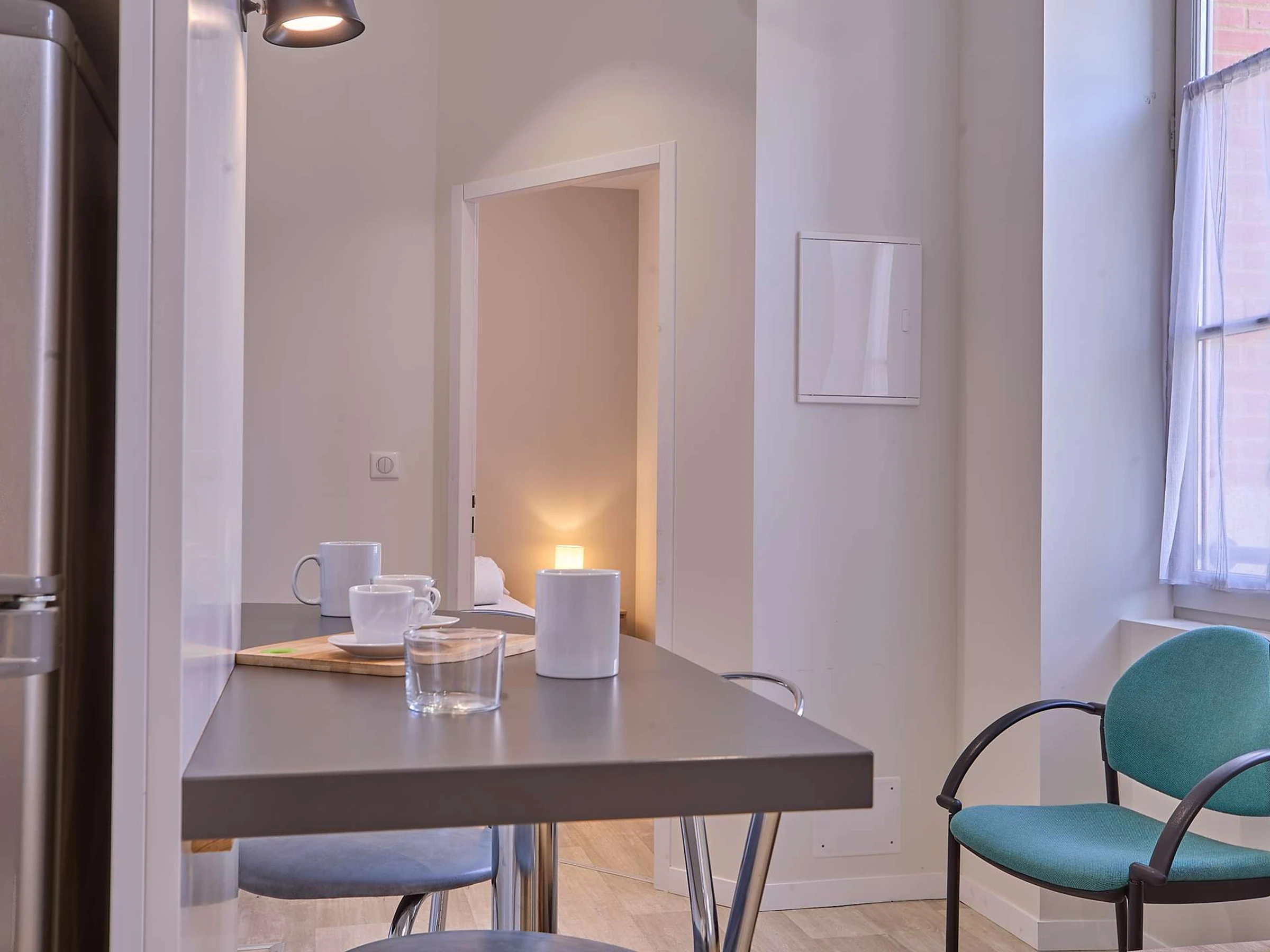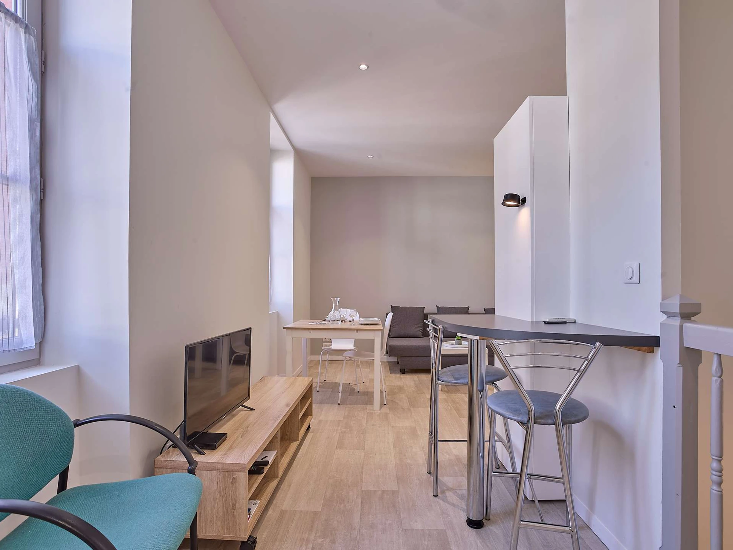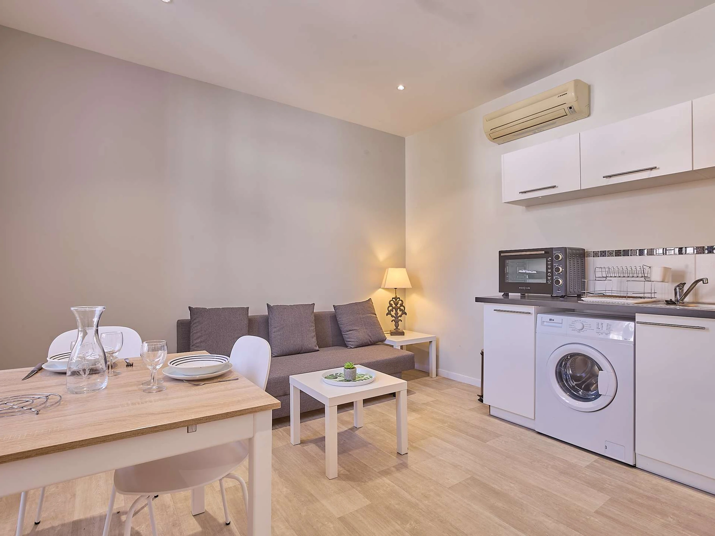 Situado en la primera planta de un pequeño edificio, este apartamento totalmente reformado ofrece un ambiente moderno, cálido y funcional, a pesar de no disponer de balcón.