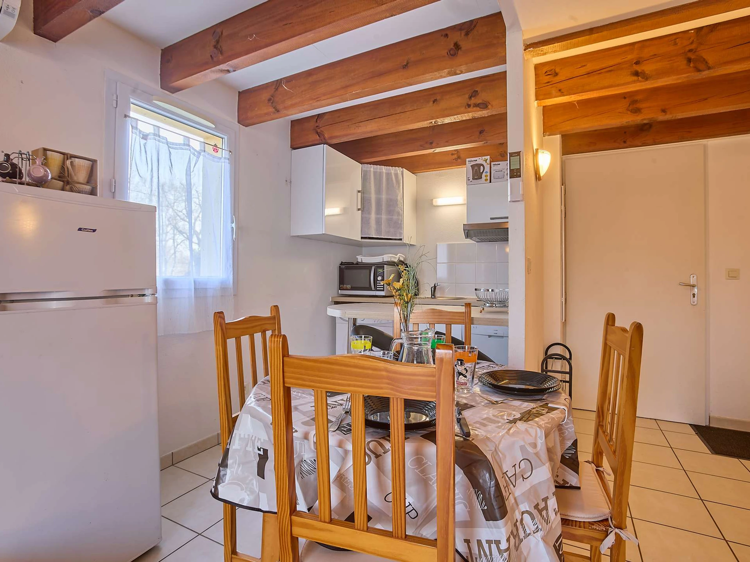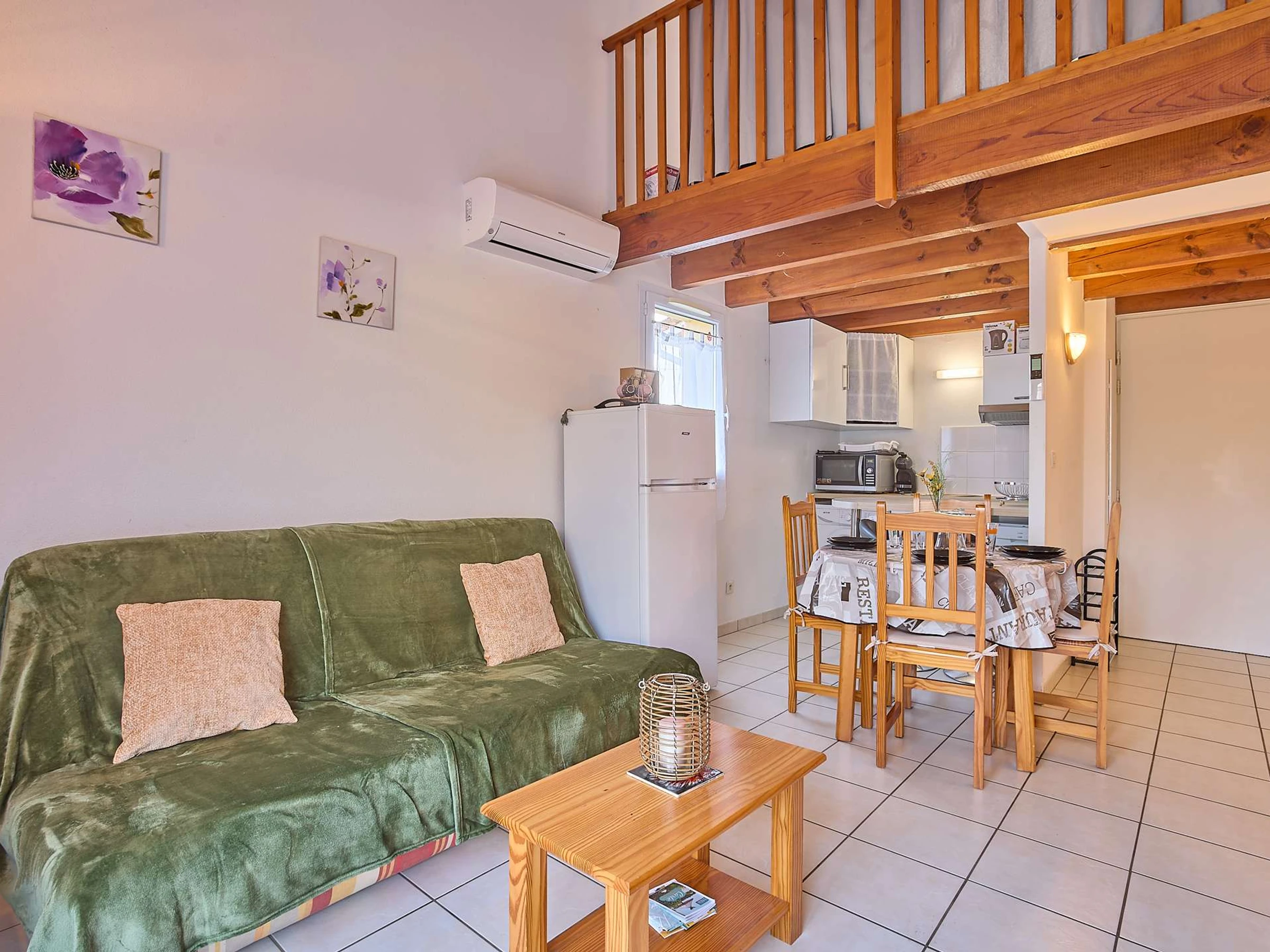 Este encantador apartamento de 35 m² con un dormitorio se encuentra en la planta baja de la residencia Saskia, que cuenta con piscina exterior. La zona de estar incluye una cocina americana totalmente equipada con nevera, microondas y horno, un comedor y una cómoda sala de estar con sofá cama y televisión. En la planta superior, hay un dormitorio amueblado con una cama doble (140 cm). El baño, completamente reformado, dispone de ducha y toallero calefactado. Hay un aseo independiente en la planta baja. Calefacción eléctrica.