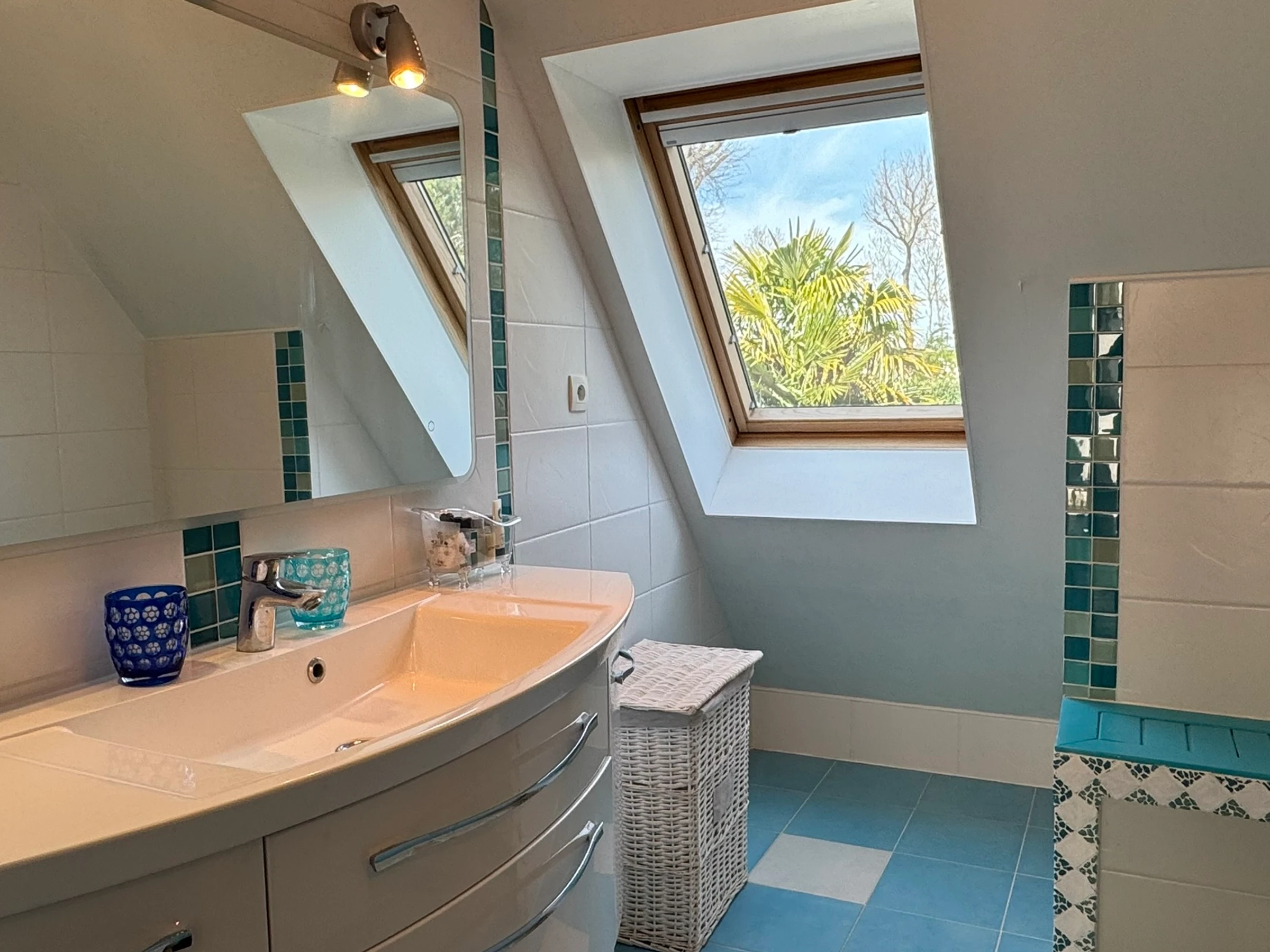 En el sótano, hay un dormitorio (con una cama doble de 160x190 cm y dos camas nido de 80x200 cm), un baño (con ducha y WC) y una lavandería (con secadora).