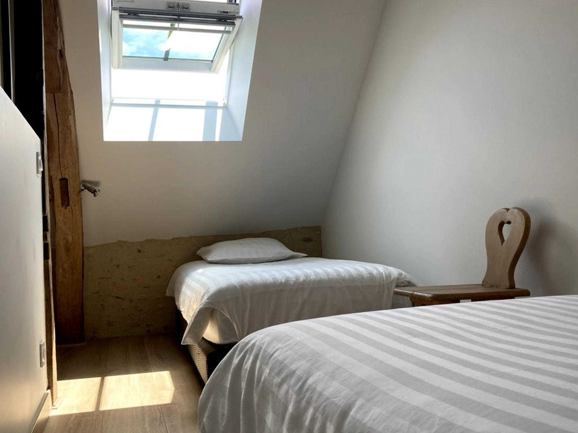 Desayuno incluido. En plena naturaleza virgen a las afueras de Anjou, la capilla de esta antigua granja del siglo XVI se ha convertido en dos habitaciones familiares para cuatro personas y dos habitaciones para dos en las antiguas pocilgas.