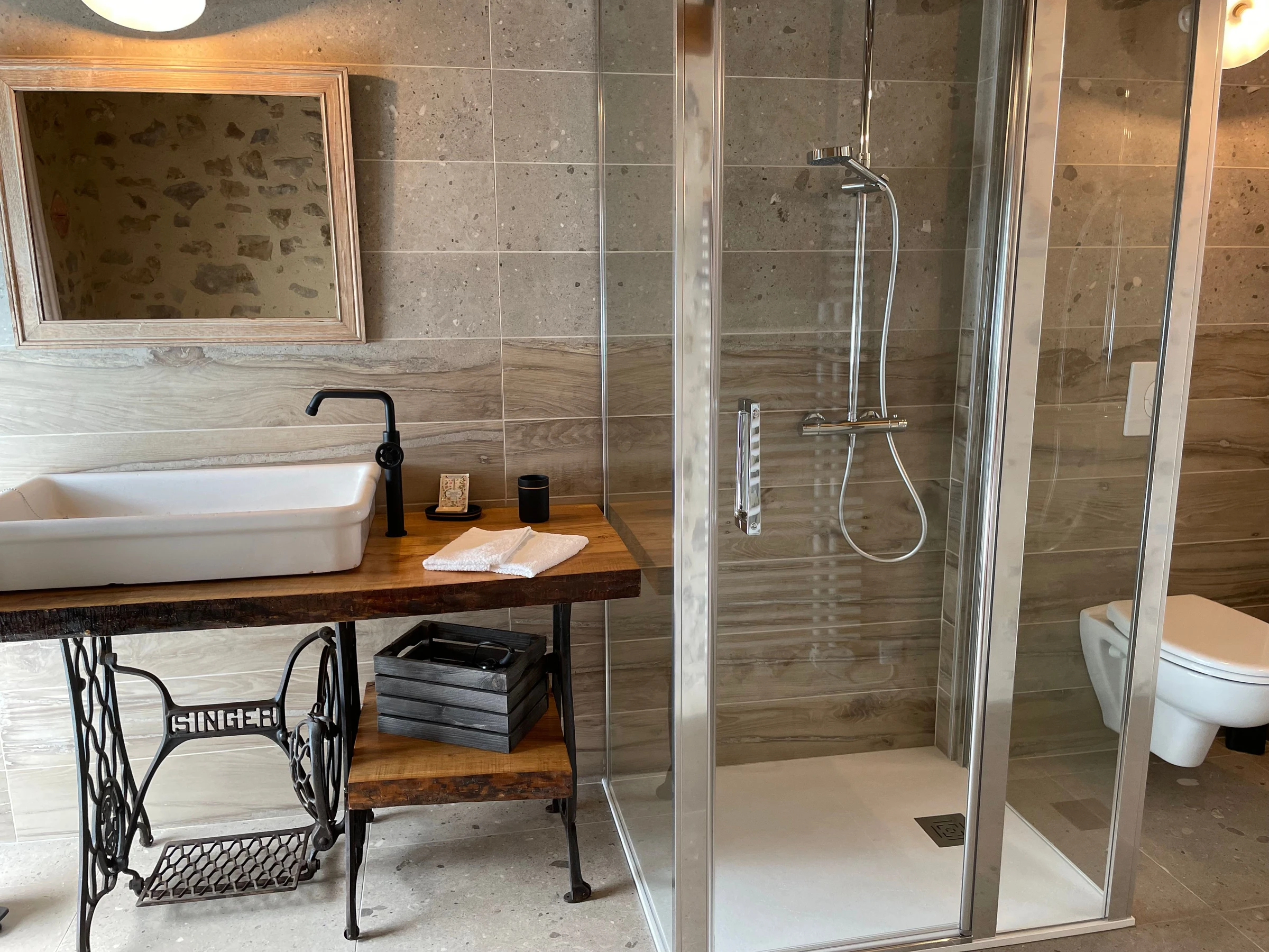 La habitación de la capilla está adaptada para personas con movilidad reducida, gracias a la rampa de acceso desde la terraza y a los pasamanos y lavabo adaptados del baño.