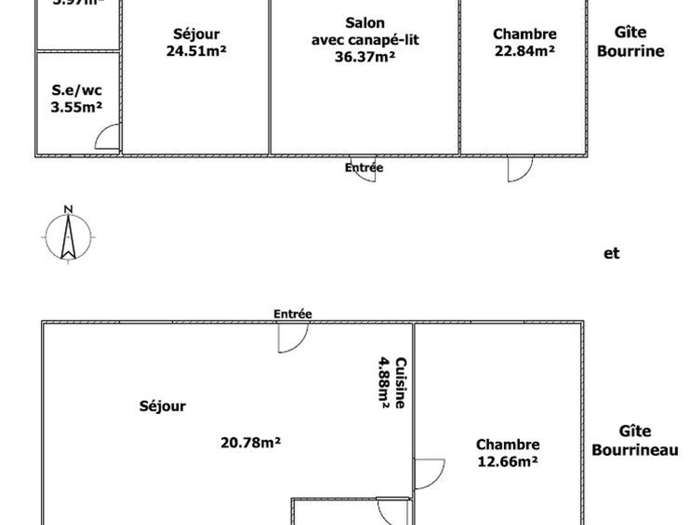 El Marais bretón le ofrece sus riquezas durante una estancia en este conjunto de dos bourrines, tradicionales casas de campo con techo de paja de la región. Descubra este territorio natural a través del ecomuseo Le Daviaud (4 km) o la Bourrine à Rosalie (7,3 km). Tendrá la oportunidad de ir a Fromentine (6,5 km) para disfrutar de la playa, el muelle que lleva a la isla de Yeu y el puente que lleva a la isla de Noirmoutier. También puede acceder a esta última cruzando el famoso Passage du Gois (10 km). Esta propiedad le ofrece un conjunto de dos casas rurales de arquitectura tradicional. La casa rural Bourrine consta de un salón con chimenea decorativa, cocina, baño/aseo, un salón con estufa de leña decorativa y un sofá cama de 160 cm, así como un dormitorio con una cama de 160 cm (acceso a la cama por un escalón). La casa rural Bourrineau consta de un salón-comedor-cocina americana con chimenea y sofá cama doble, un dormitorio con cama doble y un baño/aseo. En el exterior, disfrutará de un terreno cerrado junto a un arroyo, con terrazas, mesas de picnic, barbacoa de leña, tumbonas, pista de petanca y parque infantil. Cada alojamiento se puede alquilar por separado: H85G030643 y H85G030644.