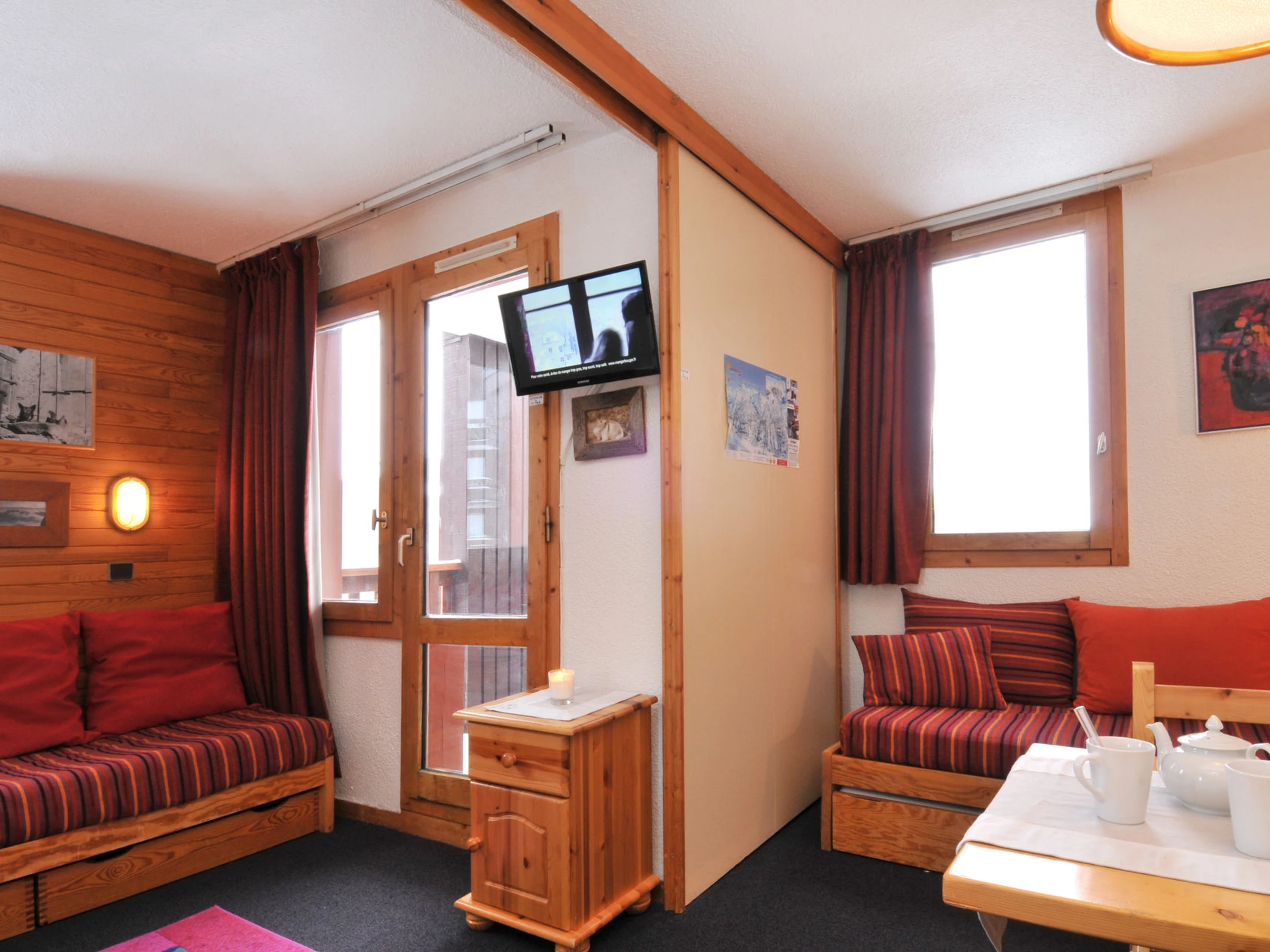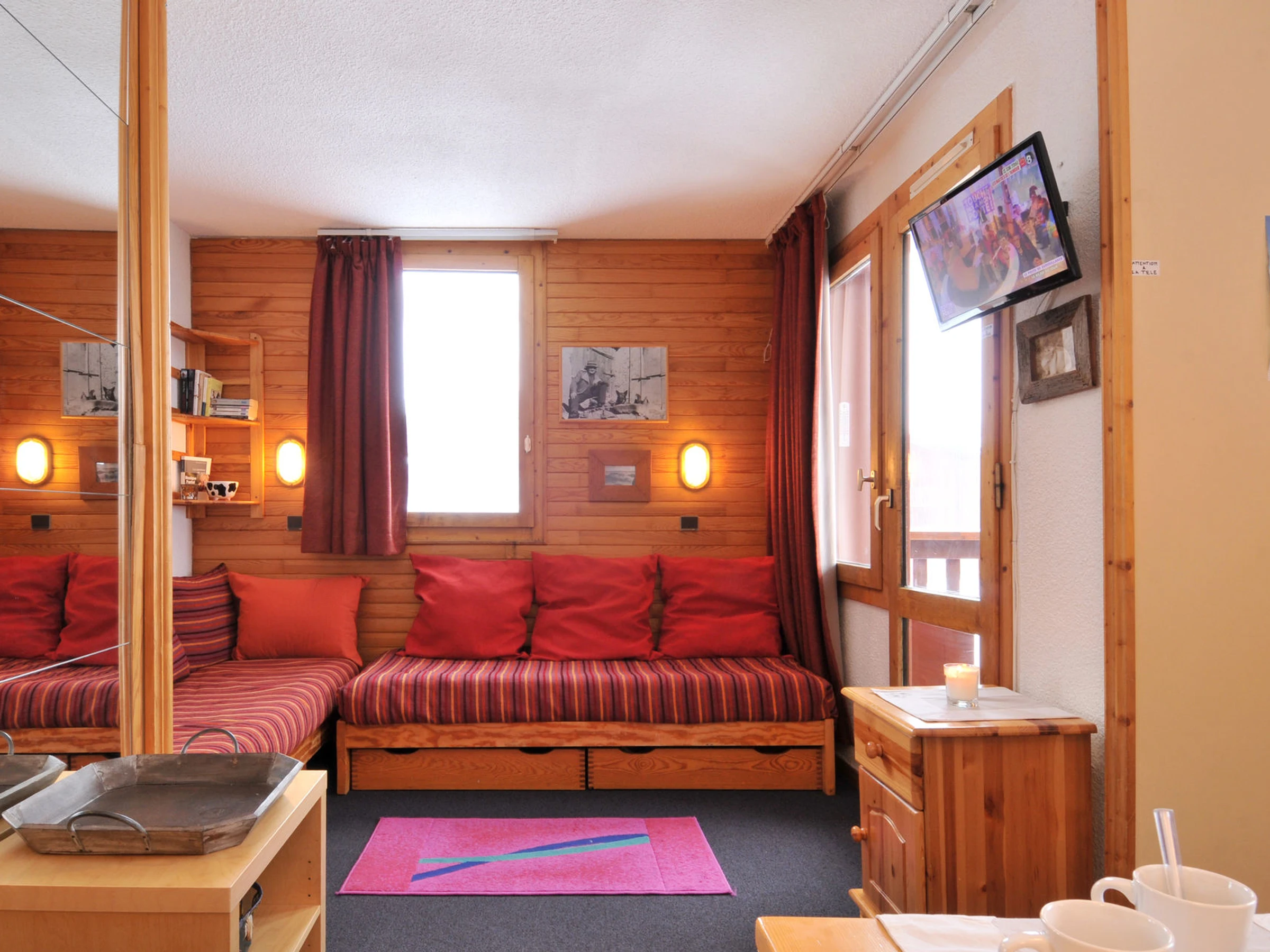 Salón : 3 camas individuales y 1 cama nido, 1 TV de pantalla plana