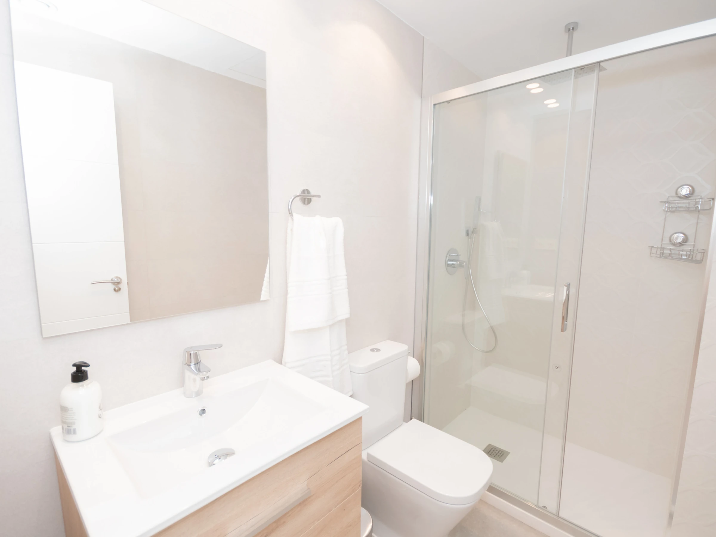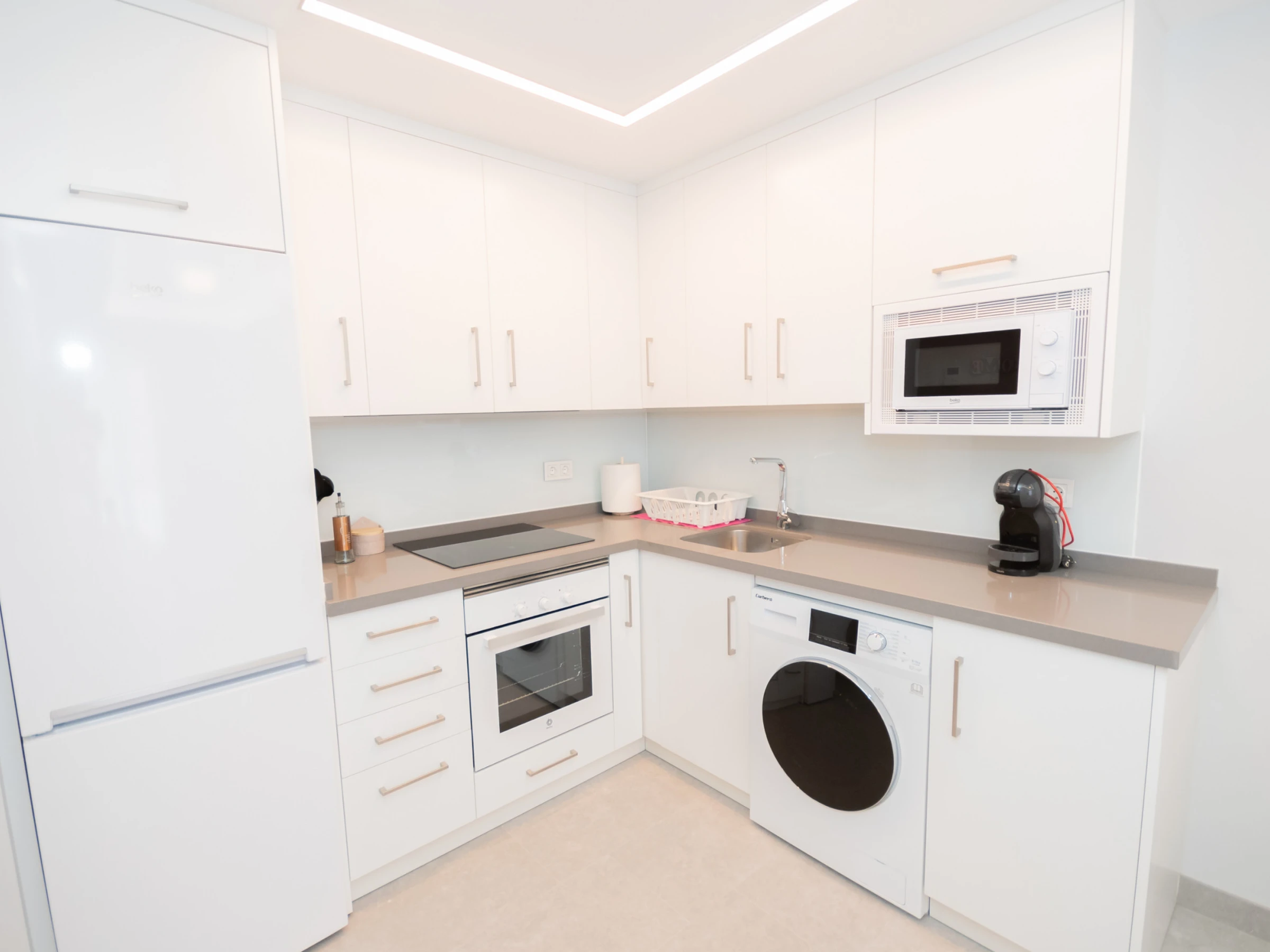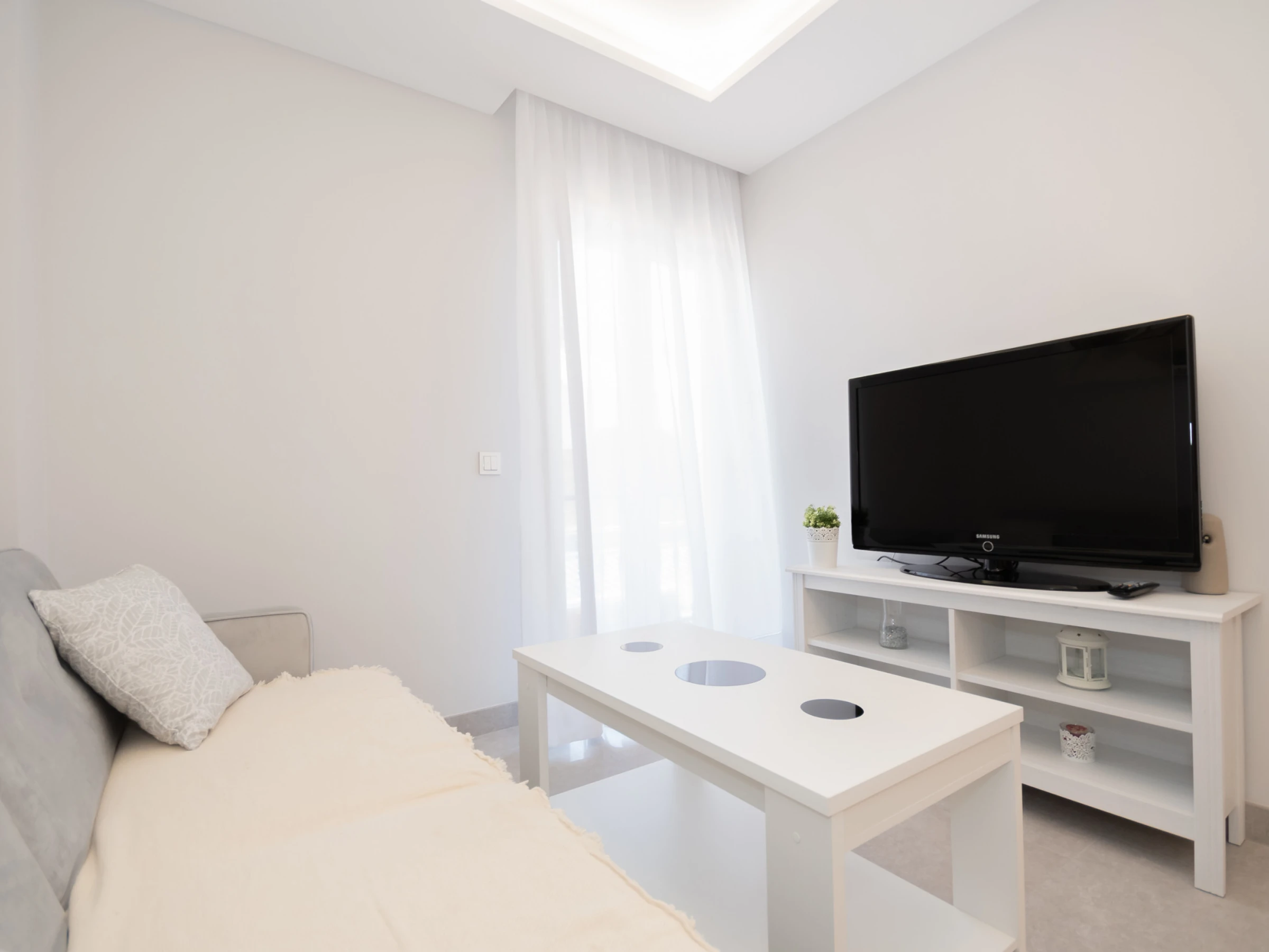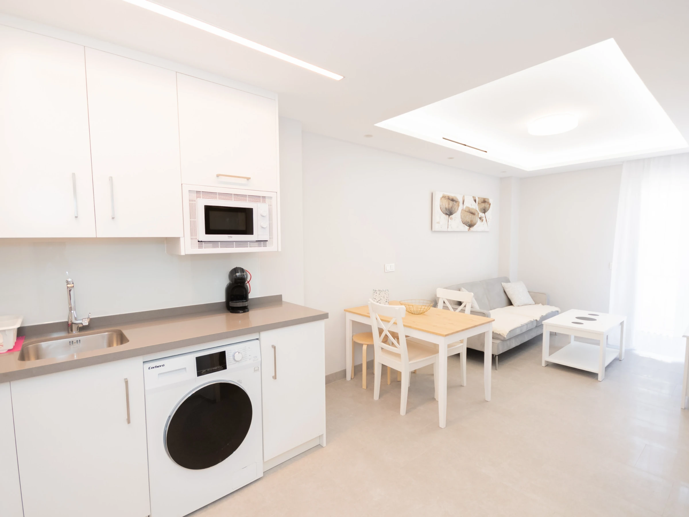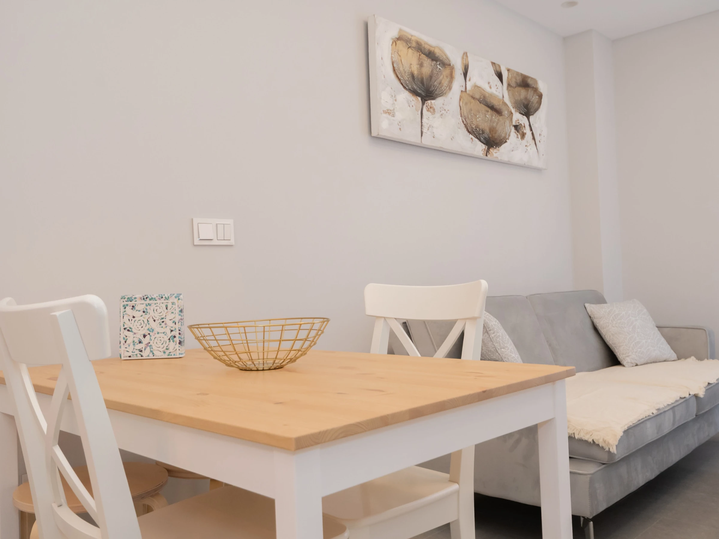 El apartamento está amueblado con estilo y cuenta con una cocina americana totalmente equipada para preparar tus comidas 🍽️, un salón cómodo con TV y WiFi gratis para tus momentos de descanso 🛋️, y aire acondicionado centralizado junto a ventanas de doble cristal que garantizan un ambiente fresco y silencioso ❄️. El dormitorio principal ofrece una cama de matrimonio, y el sofá-cama del salón permite alojar a más personas, ideal para grupos o familias. El baño completo con ducha añade funcionalidad a tu estancia 🛏️.