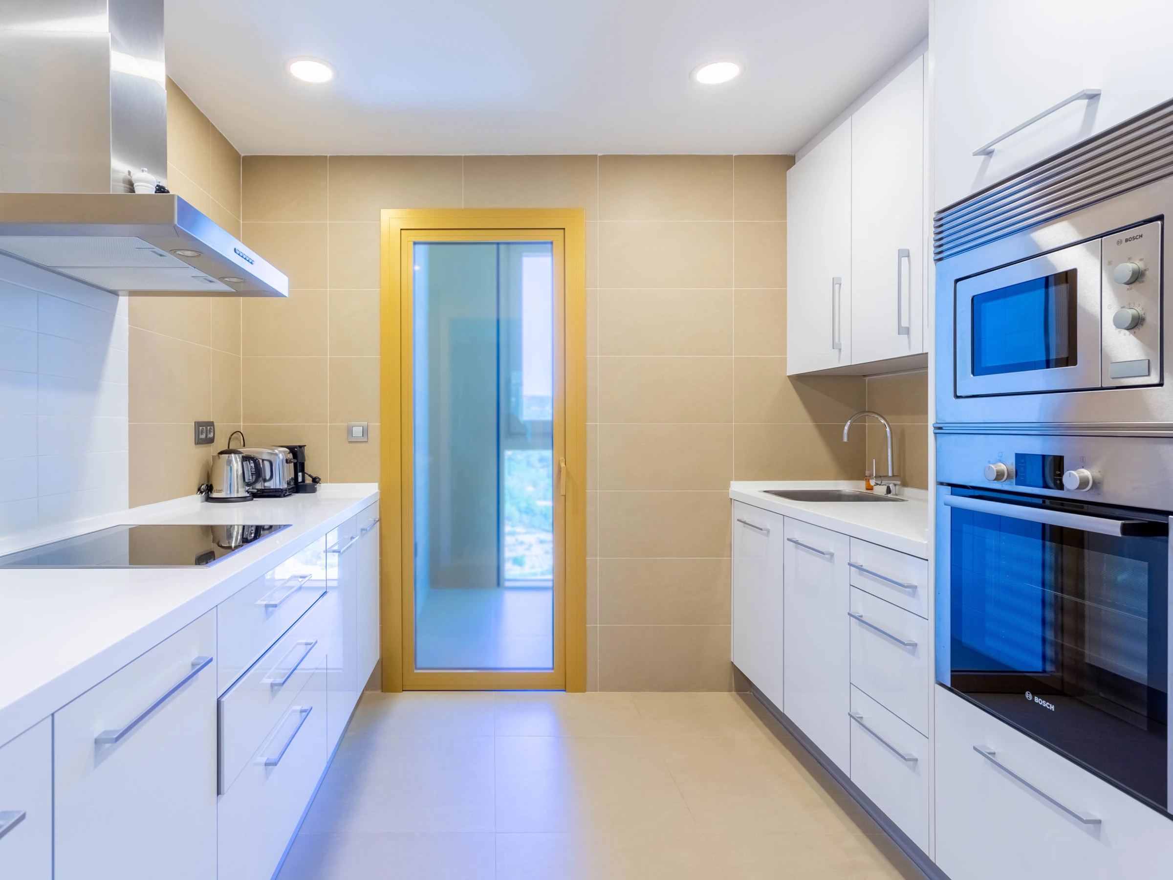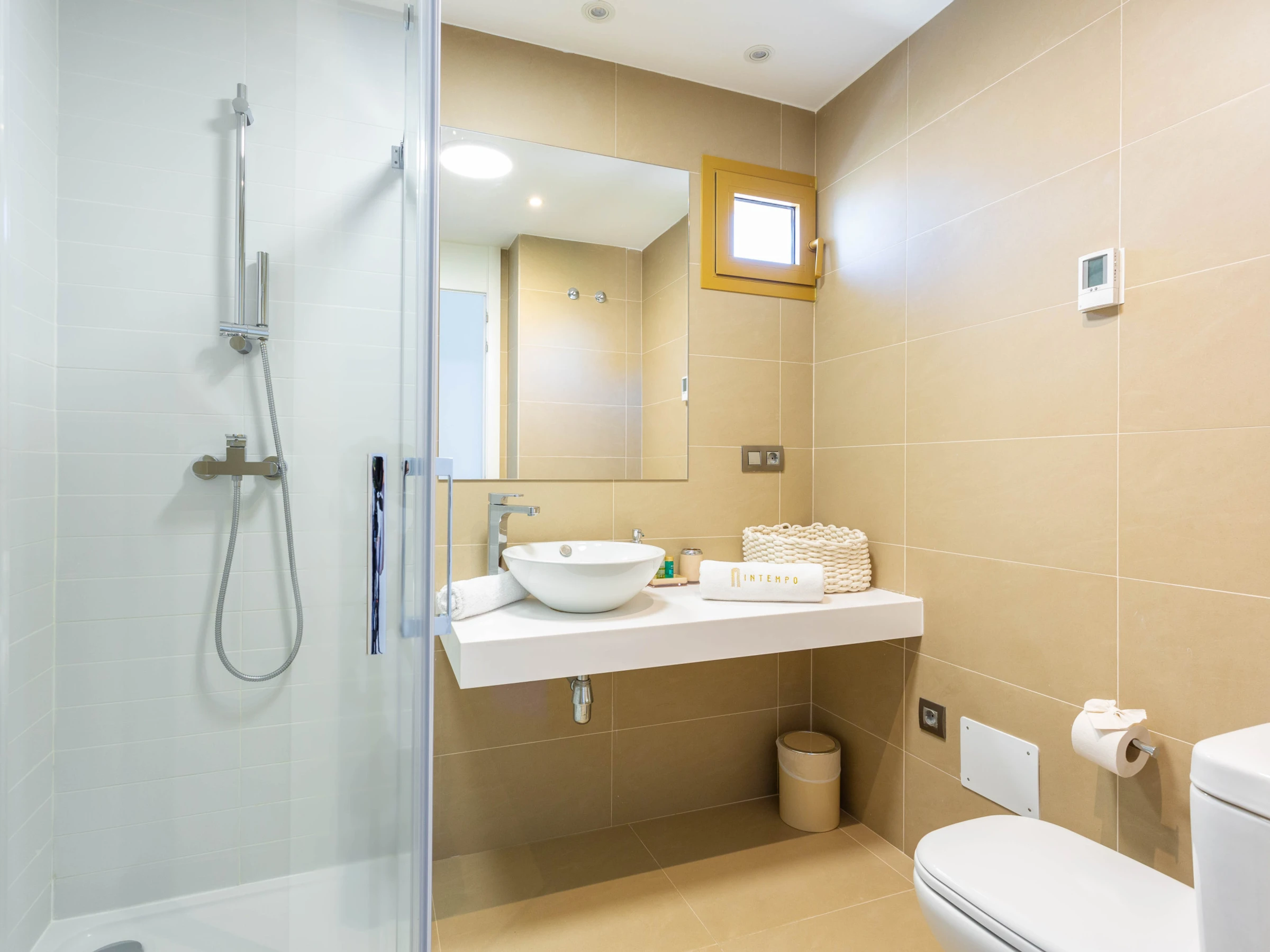 Las instalaciones del apartamento son excepcionales. Dispone de dos baños, uno con ducha y otro con bañera, facilitando el confort de los huespedes. La cocina independiente está totalmente equipada con electrodomésticos de marcas contrastadas como lavadora, lavavajillas, horno, microondas y cafetera, permitiendo preparar comidas durante su estancia.
