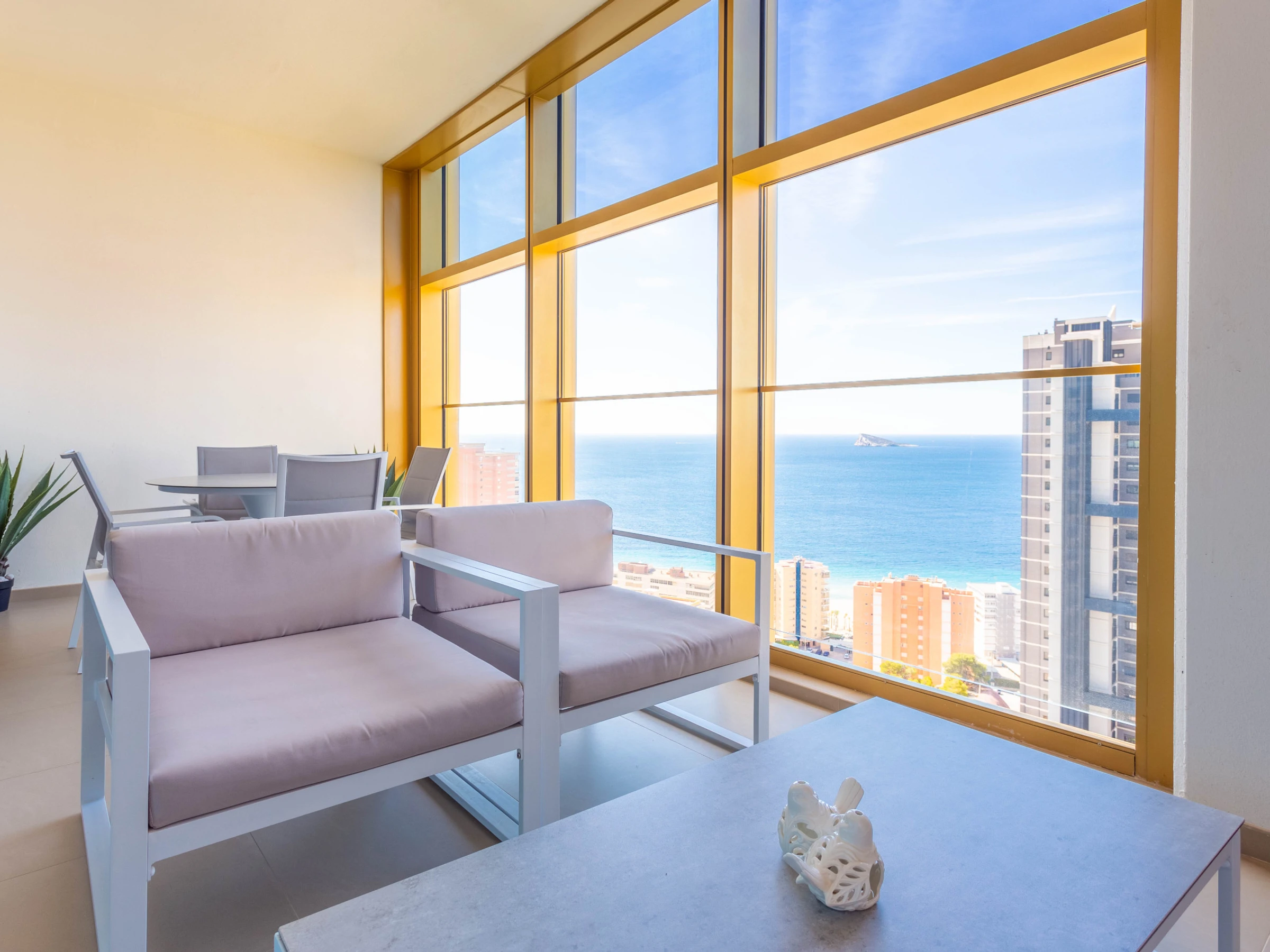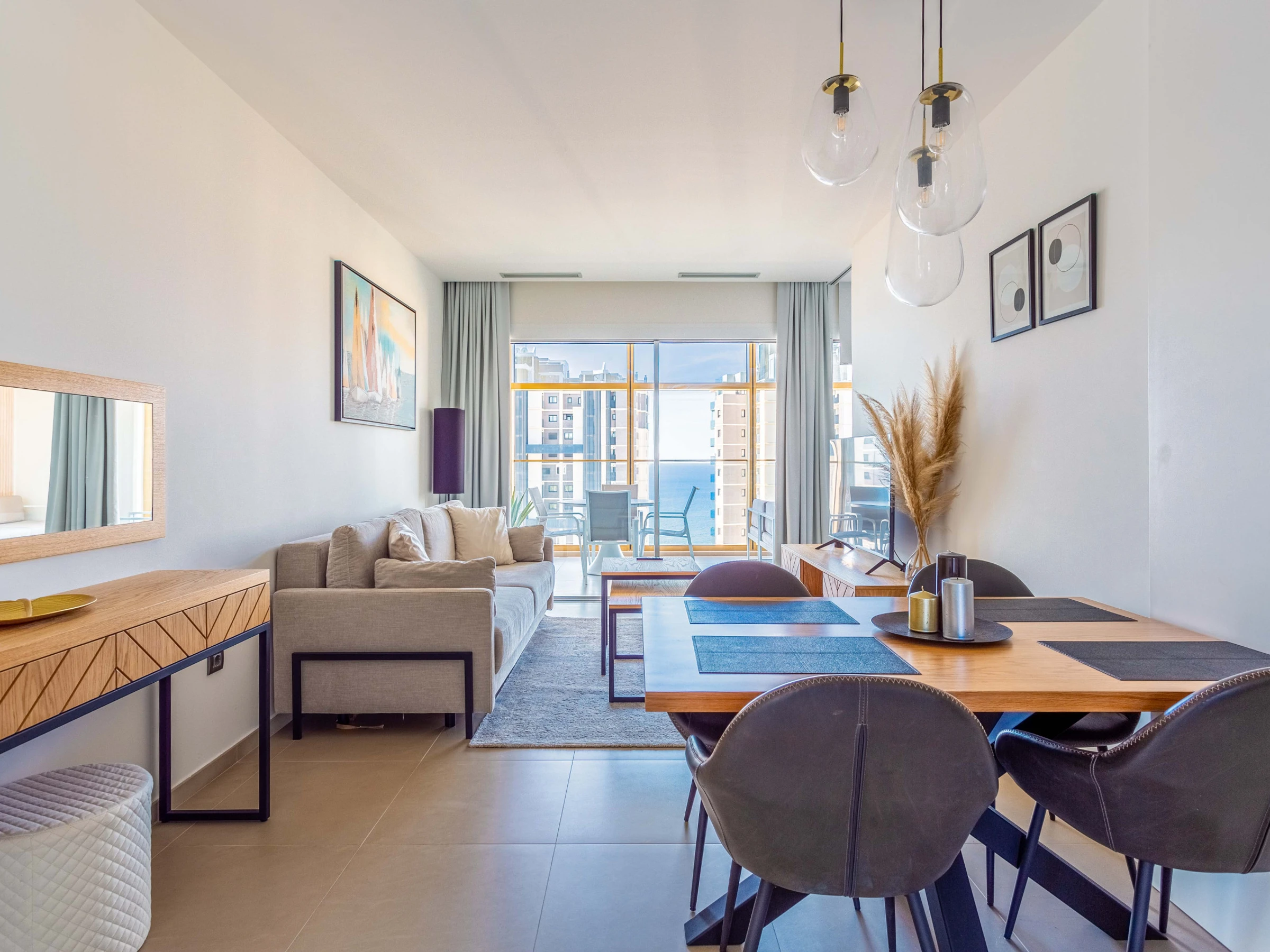 La ubicación es inmejorable, a solo 350 metros de la famosa Playa de Poniente y con vistas impresionantes al mar, montaña y piscina. Cerca encontrará restaurantes, supermercados y atracciones turísticas como Terra Mítica y Aqualandia.