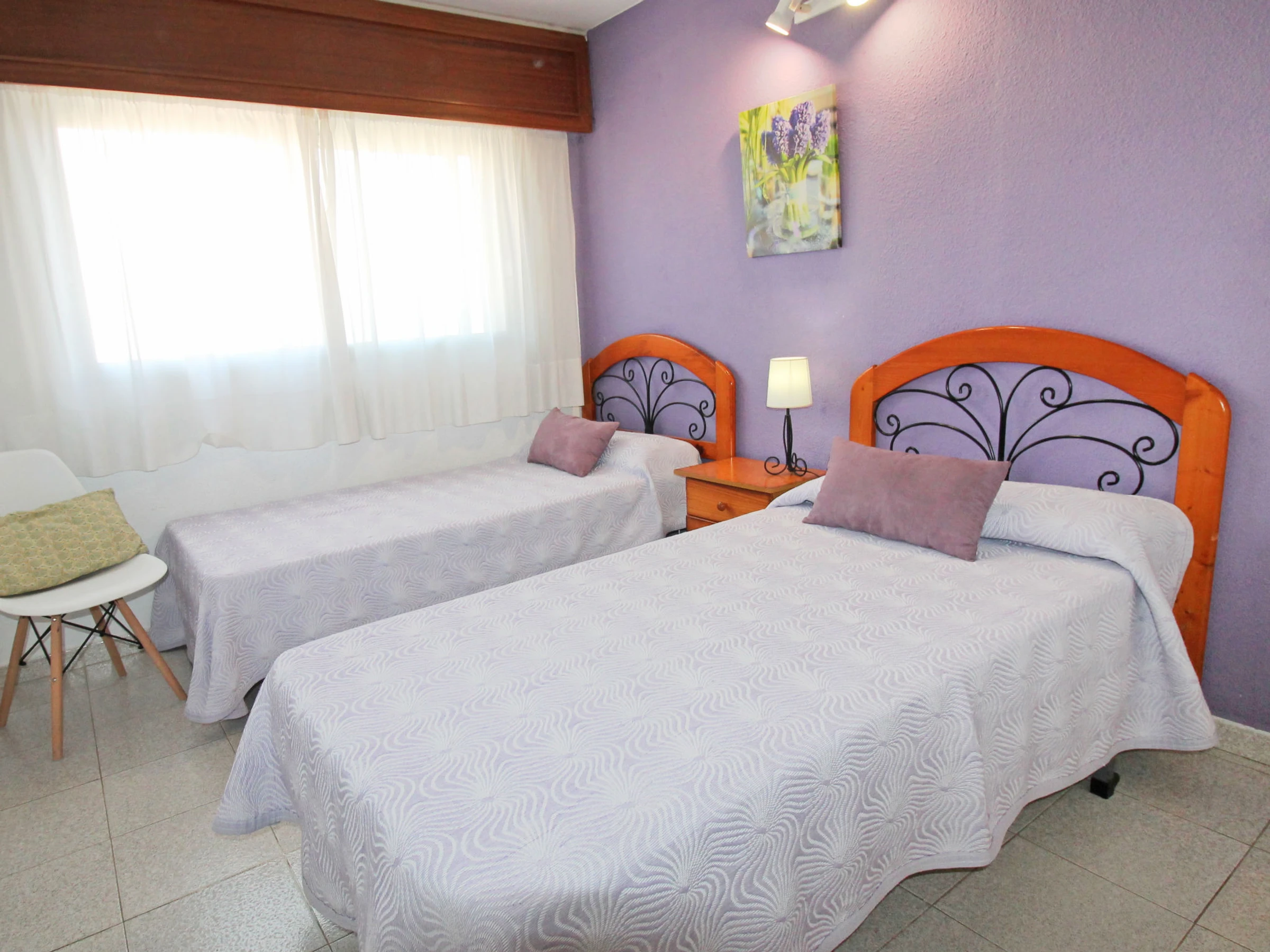 "Las Palmeras", apartamento de 3 estancias 60 m2 en el 13° piso, orientación este. Espacioso y luminoso, con mobiliario funcional: salón-comedor 22 m2 con TV digital. Salida a la terraza. 2 dorm. 9 m2, cada habitación con 2 camas. Pequeña cocina (4 placas de vitrocerámica, tostadora, hervidor de agua eléctrico, microondas, congelador, cafetera eléctrica). Ducha/WC. Calefacción eléctrica. Terraza 12 m2. Muebles de terraza. Vista panorámica al mar y a la localidad. El alojamiento dispone de: lavadora, plancha, secador de pelo. Internet (Wifi). EGVT-593-A. [hidden] // Reg. Nr.: ESFCTU0000030440003021740000000000000000AT-322927-BM9