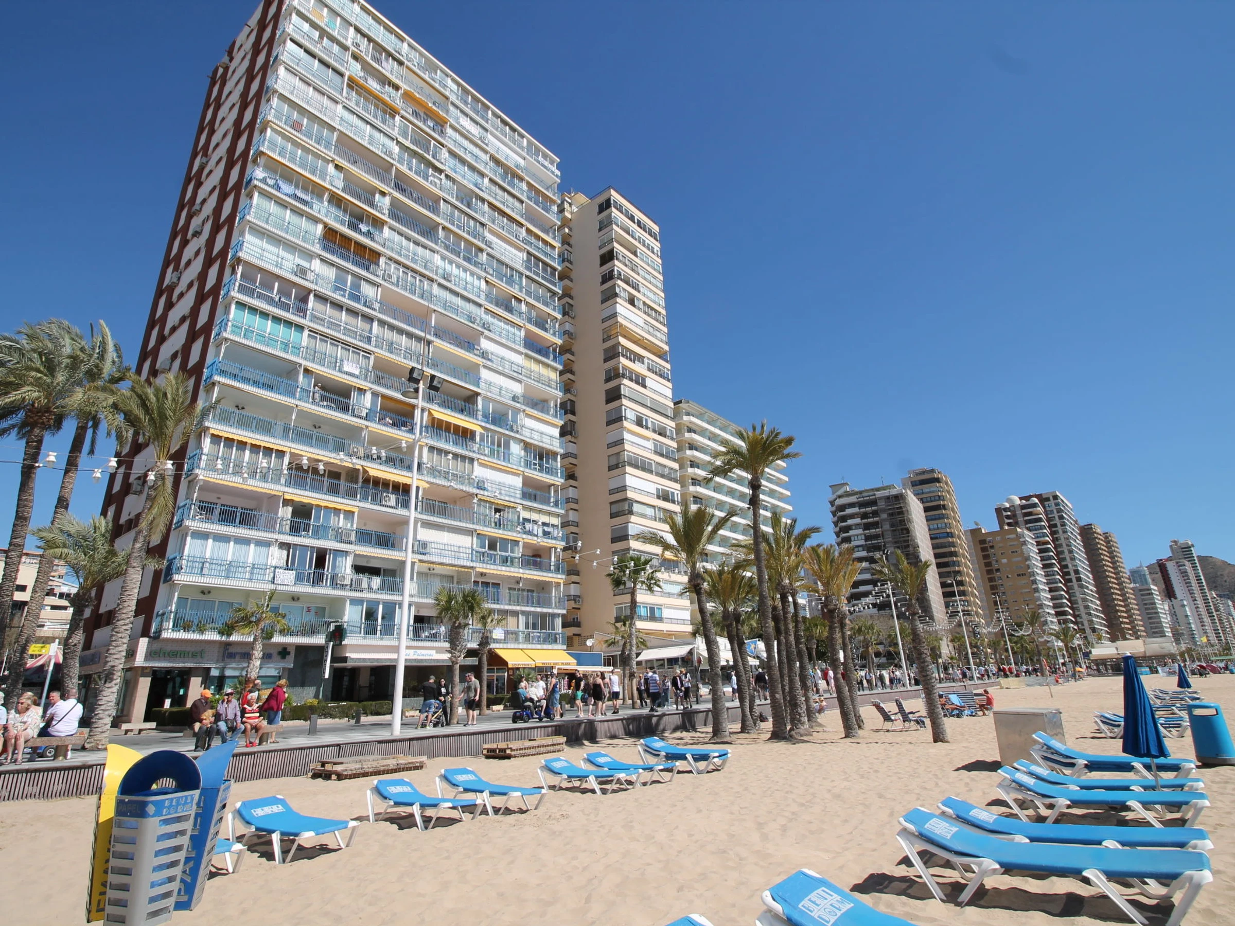 Playa Levante: Casa de apartamentos "Palmeras Playa Levante First Line", amplio, agradable de 18 plantas. En la localidad, a 200 m del centro de Benidorm, en el distrito Playa Levante, lugar céntrico, animado, soleado, en el corazón de la ciudad, a 20 m del mar, a 20 m de la playa, cruzando la calle, orientación este. En el inmueble: ascensor. Tienda 20 m, supermercado 150 m, bar 50 m, parada autobús "Benidorm" 200 m, estación de tren "Benidorm" 2 km. Campo de golf (18 hoyos) 6 km, rutas de senderismo desde la casa 300 m. Atracciones en los alrededores: Aqualandia 3 km, Terra Mitica 6 km, Terra Natura 6 km, MundoMar 3 km, Alicante 45 km, aeropuerto Alicante 66 km. A tener en cuenta: equipamiento para bebés a demanda. El propietario no acepta grupos de adolescentes/jóvenes. Vecindario muy sensible a ruidos. Se ruega respetar la tranquilidad y normas de buen comportamiento.