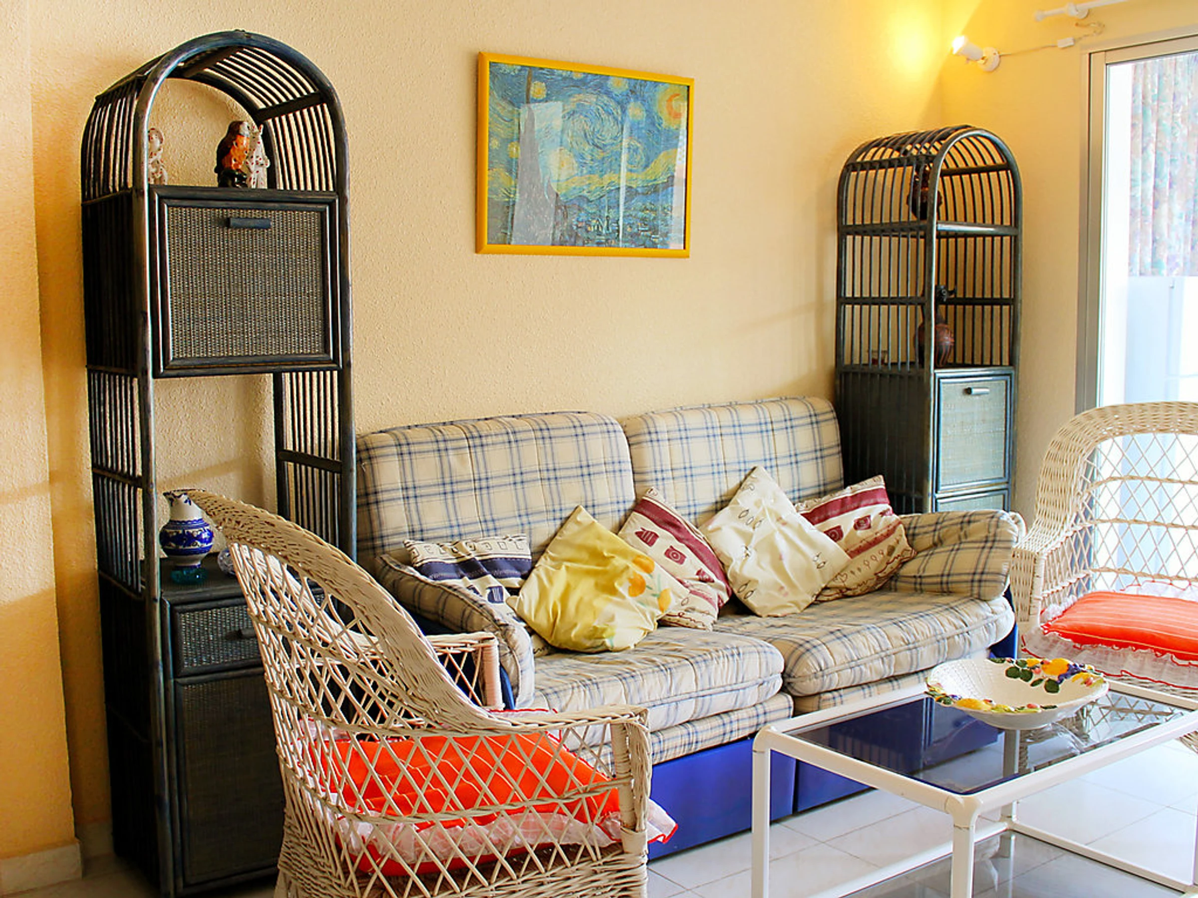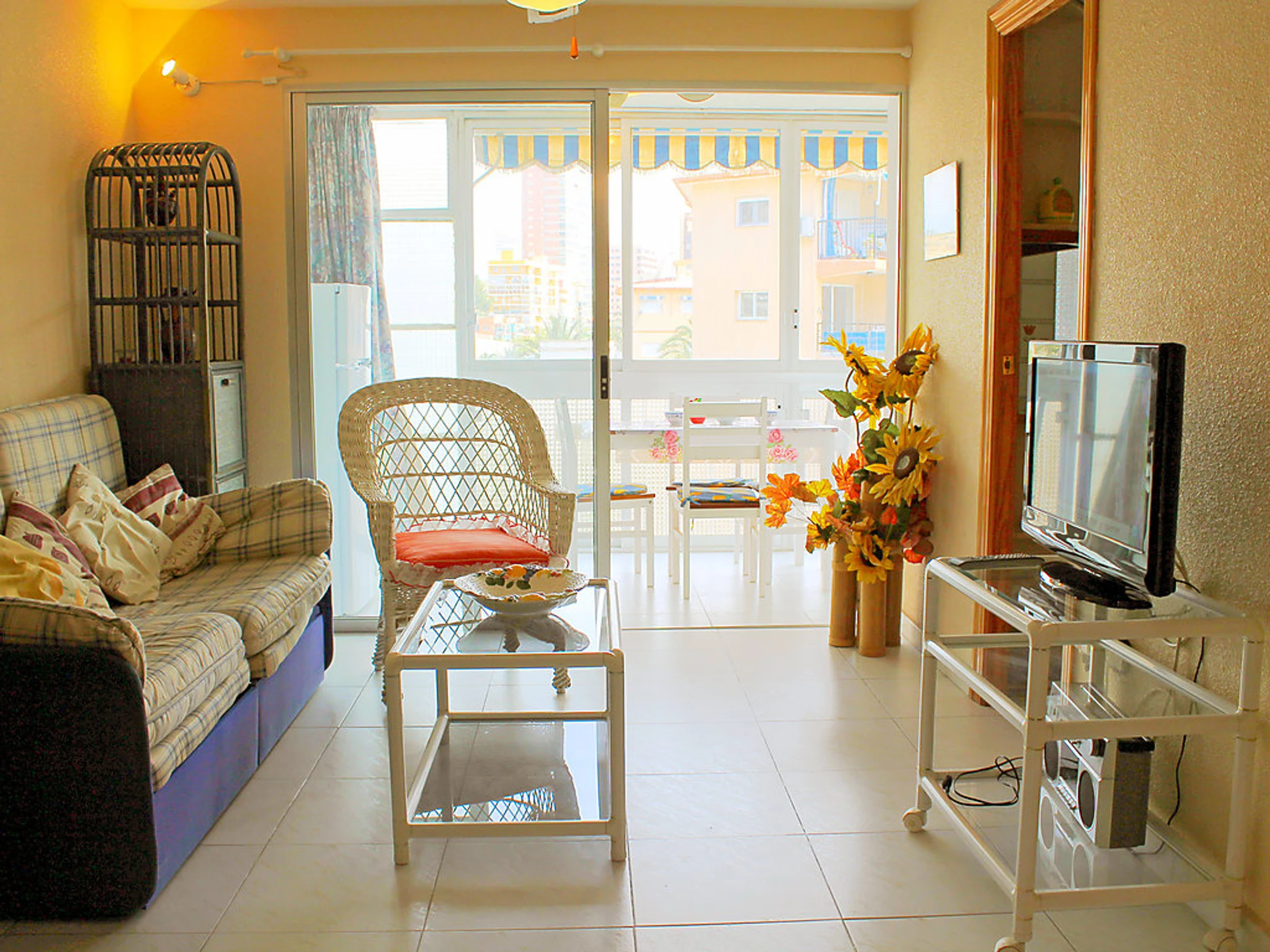 "Edificio Los Naranjos", apartamento de 2 estancias en el 3° piso. Luminoso, con mobiliario funcional: salón-comedor con 1 plegatín, TV, calefacción eléctrica y ventilador. Salida al balcón acristalado. 1 dorm. con 2 camas. Pequeña cocina (microondas). Ducha/WC. Calefacción eléctrica, calentador (50 litros). Terraza pequeña. Muebles de terraza. Vista lateral al mar y a la localidad. El alojamiento dispone de: lavadora. Internet (Wifi, extra). AT320879BM Incluye: Limpieza final, Consumo energético, Mascota, Sábanas y toallas (primer juego de sábanas y toallas)