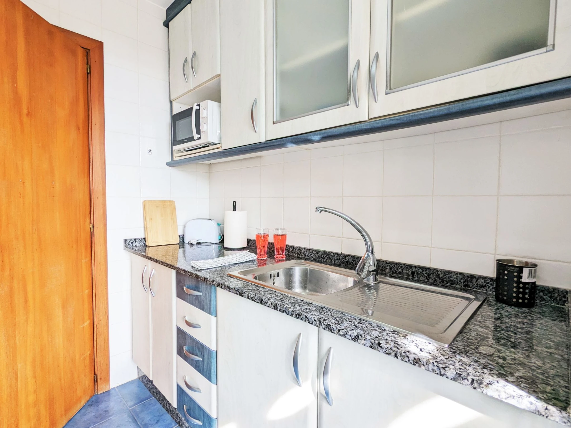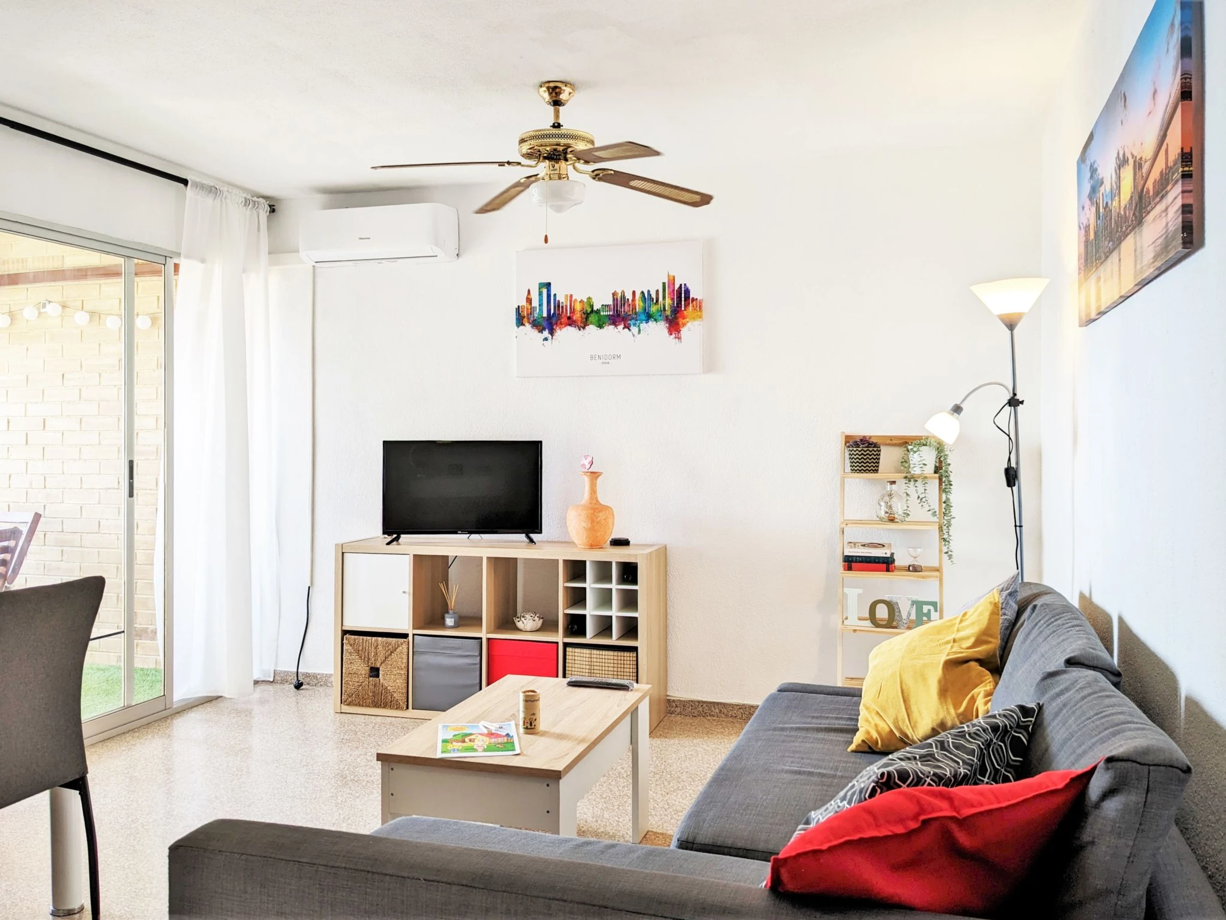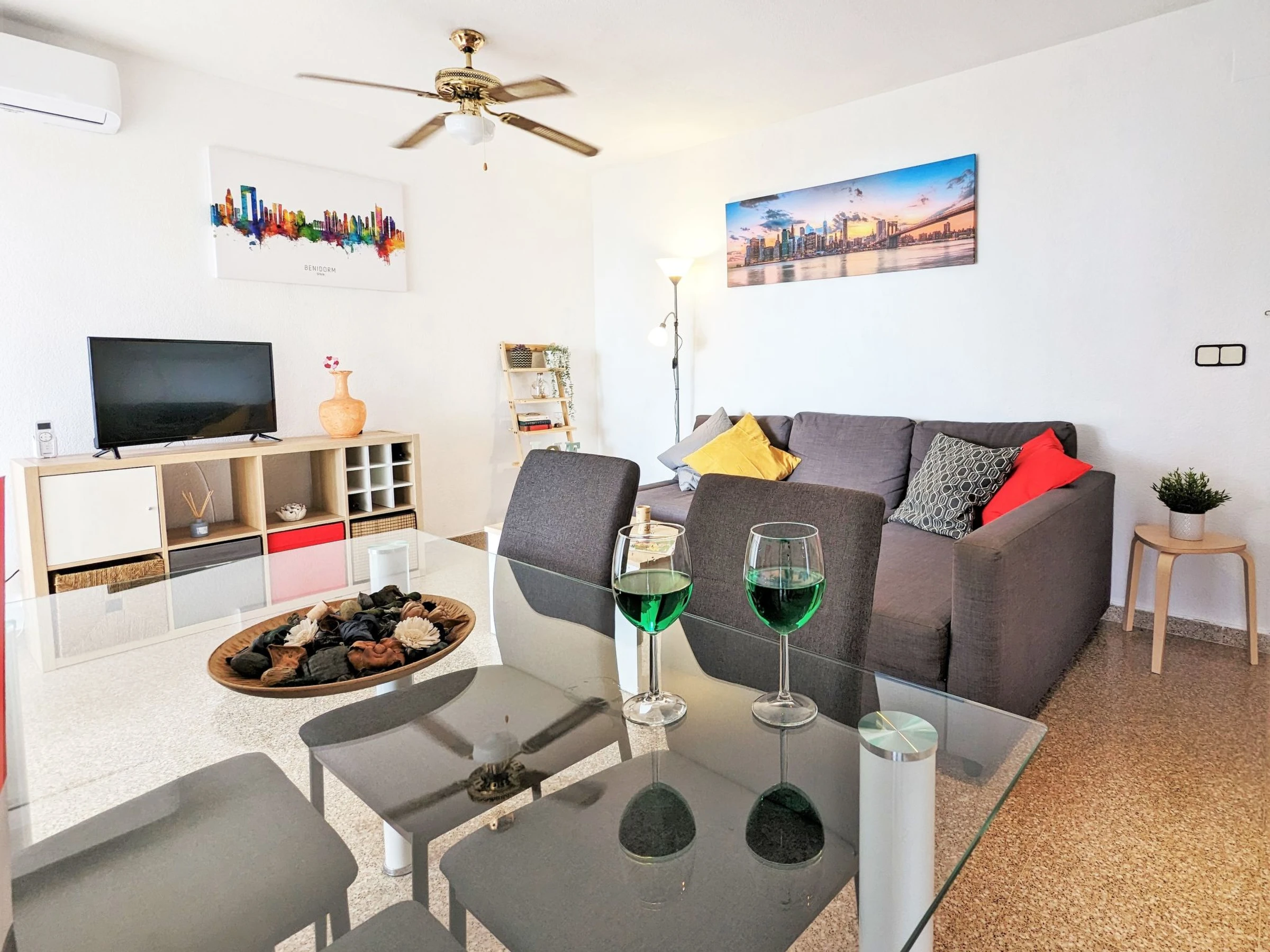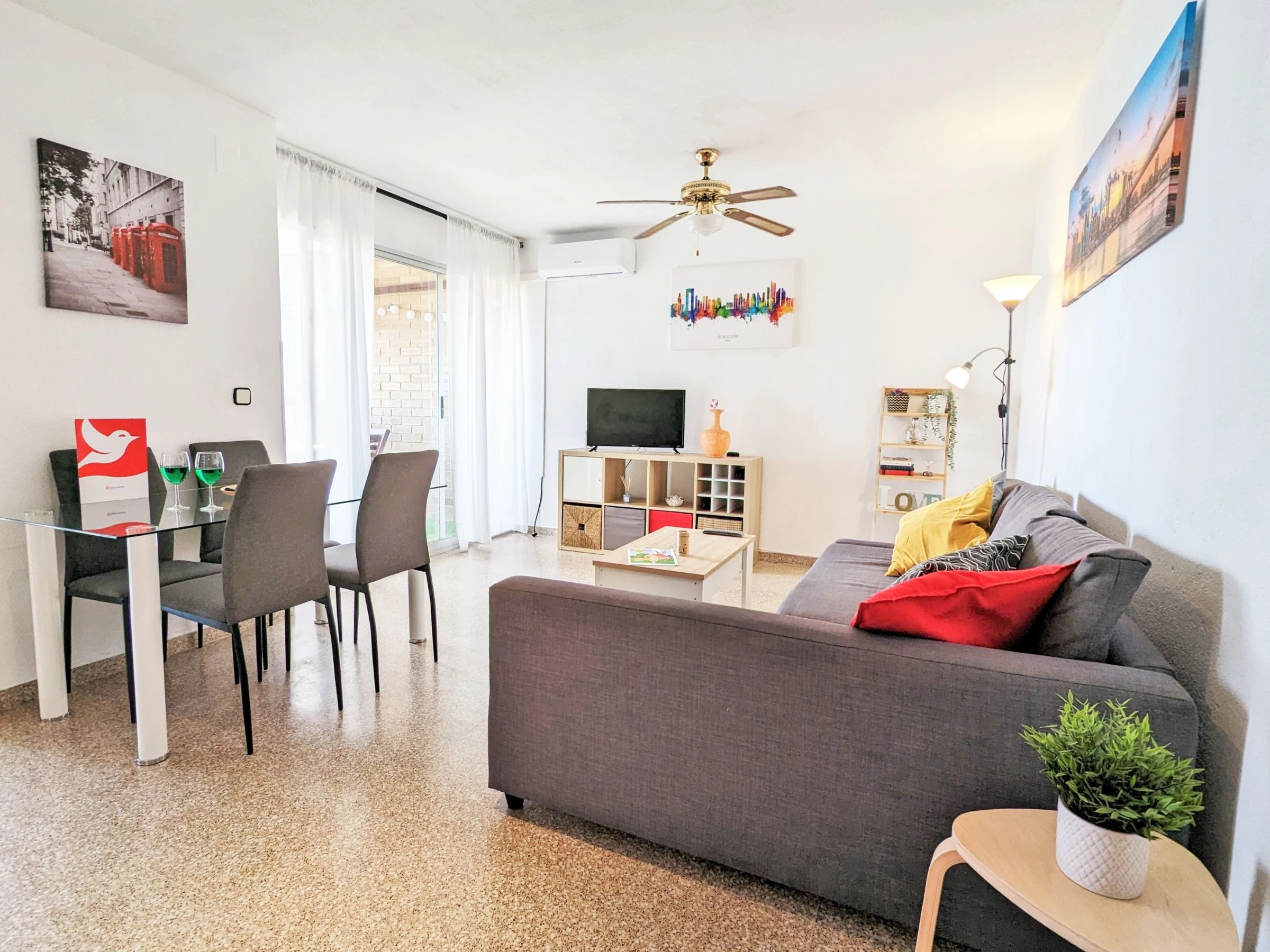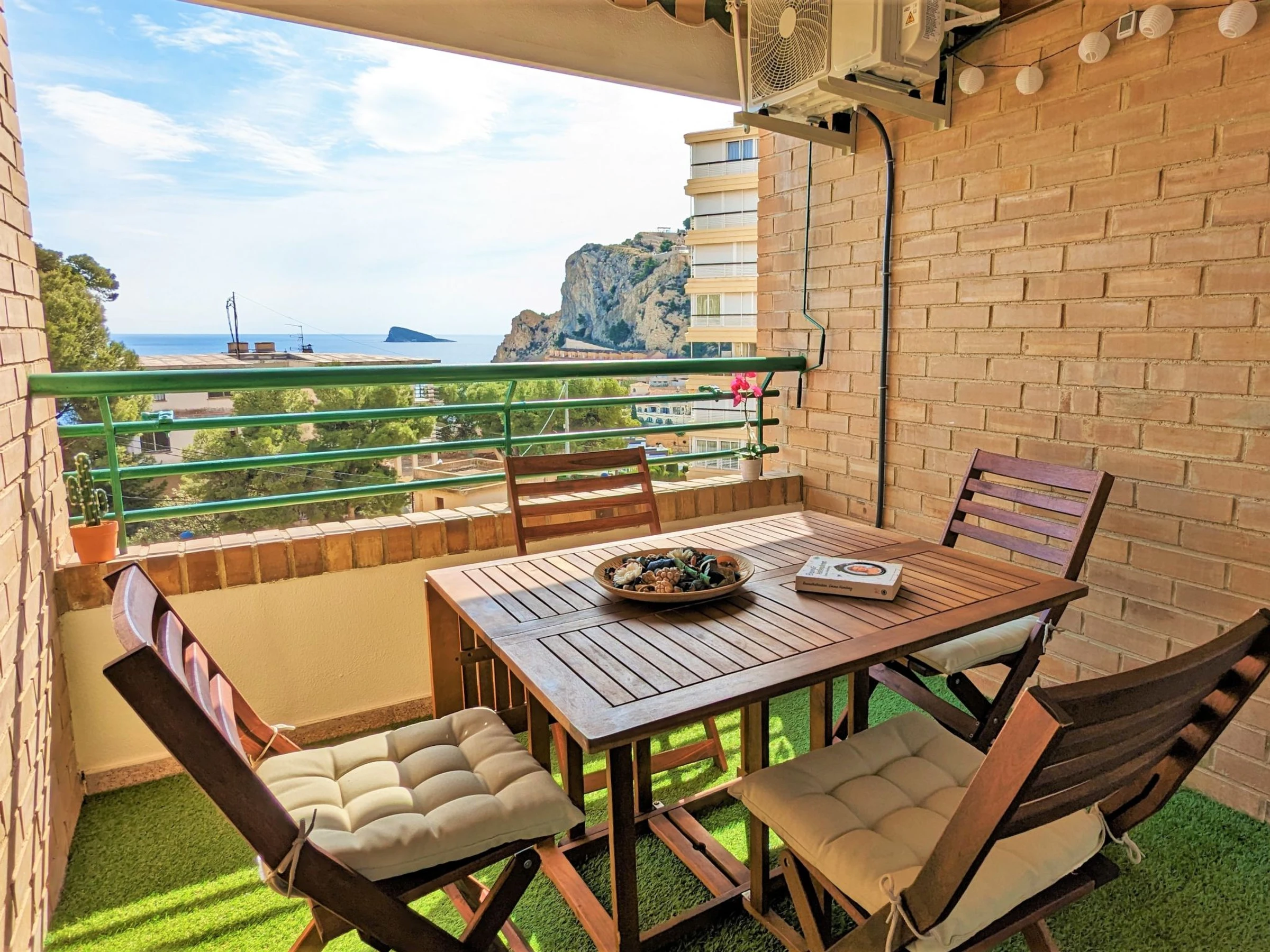 "Coblanca XVI", apartamento de 3 estancias 50 m2 en el 4° piso, orientación este. Espacioso y luminoso, con mobiliario funcional y confortable: salón-comedor 16 m2 con TV digital, calefacción eléctrica, aire acondicionado, ventilador y bomba de calor, caliente. Salida a la terraza. 1 dorm. 7 m2 con 2 camas (90 cm, 190 cm de longitud), ventilador. 1 dorm. 10 m2 con 1 cama de matrimonio (150 cm, 200 cm de longitud), TV digital y ventilador. Cocina (horno, lavavajillas, 4 placas de vitrocerámica, tostadora, hervidor de agua eléctrico, microondas, congelador, cafetera eléctrica). Baño/bidet/WC. Calentador (50 litros). Terraza pequeña. Muebles de terraza. Vista lejana al mar, a las montañas, al jardín y a la localidad. El alojamiento dispone de: lavadora, plancha, secador de pelo. Plaza de aparcamiento n. S/N. EGVT-593-A. [hidden] // Reg. Nr.: ESFCTU0000030430000529110000000000000000[hidden]4