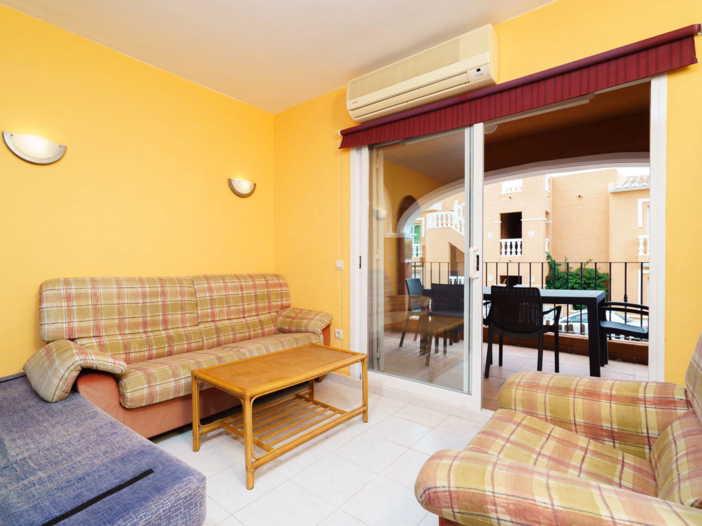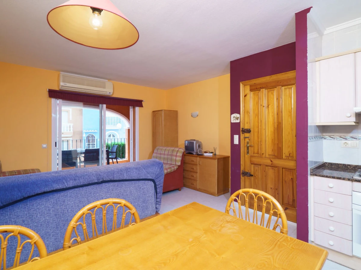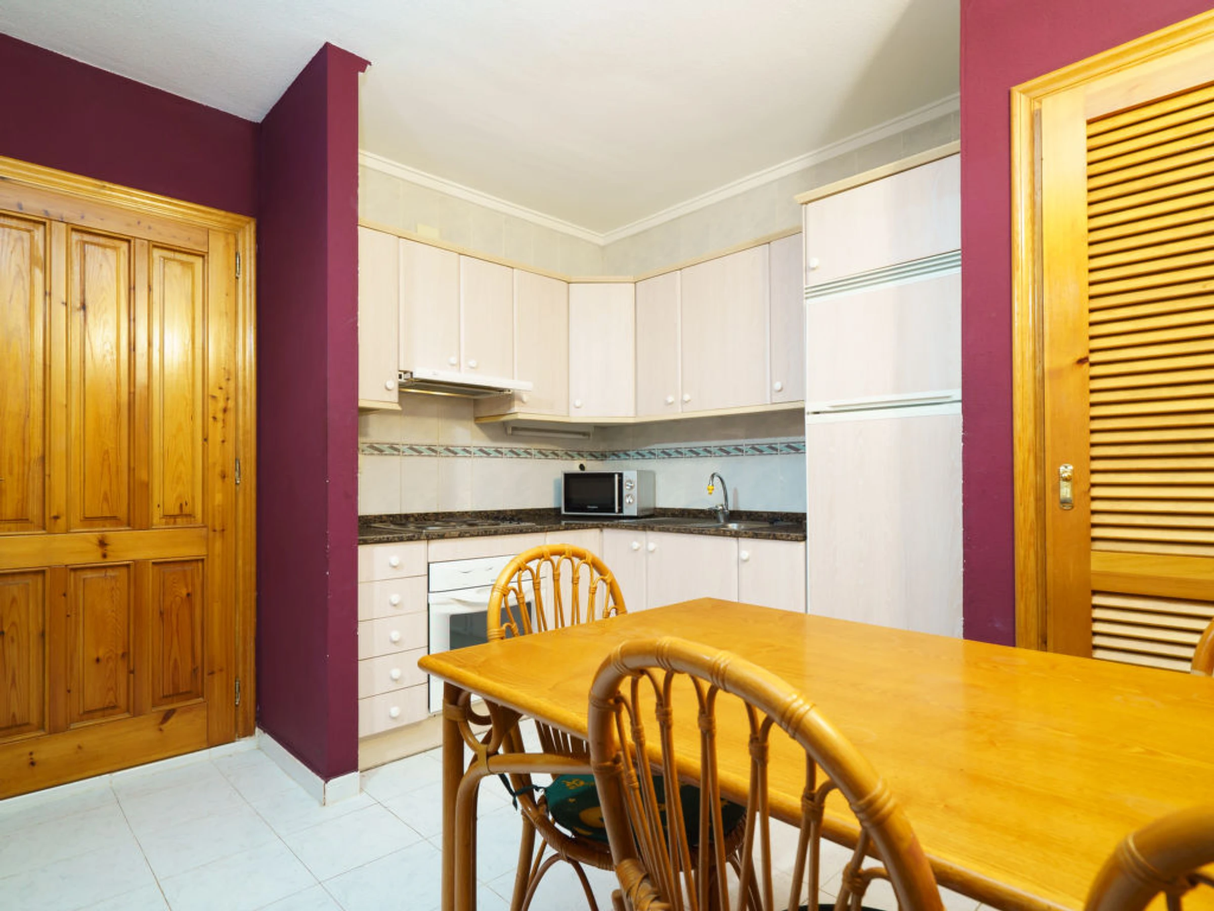 Apartamento de 3 estancias 45 m2, en la planta baja. Con mobiliario funcional: salón-comedor con TV y aire acondicionado. Salida a la terraza-jardín. 1 dorm. con 1 cama de matrimonio. 1 dorm. con 2 camas. Cocina abierta (horno, congelador). Ducha/WC. Terraza 5 m2. Muebles de terraza. El alojamiento dispone de: lavadora. Permitido máximo 1 mascota pequeña / perro. AT-432479-A