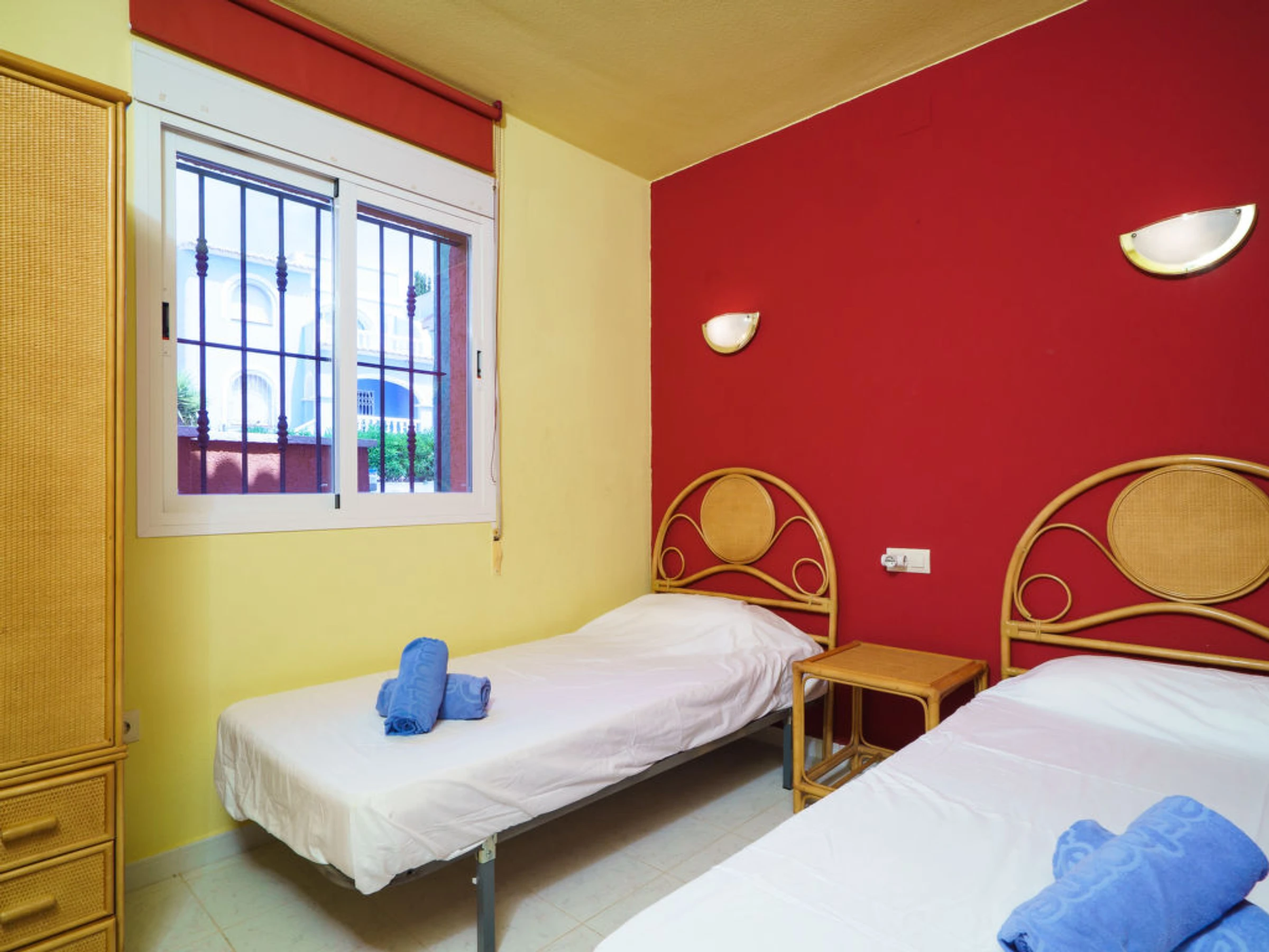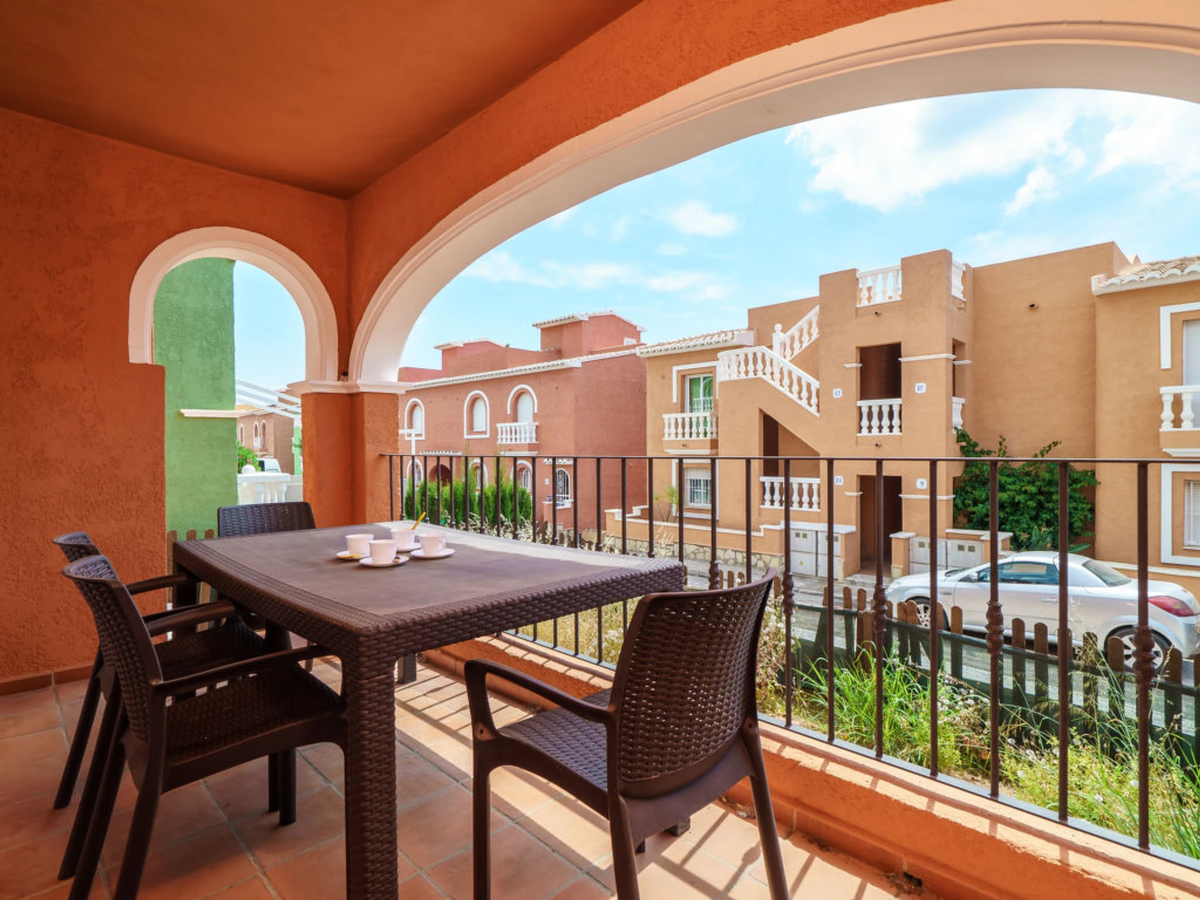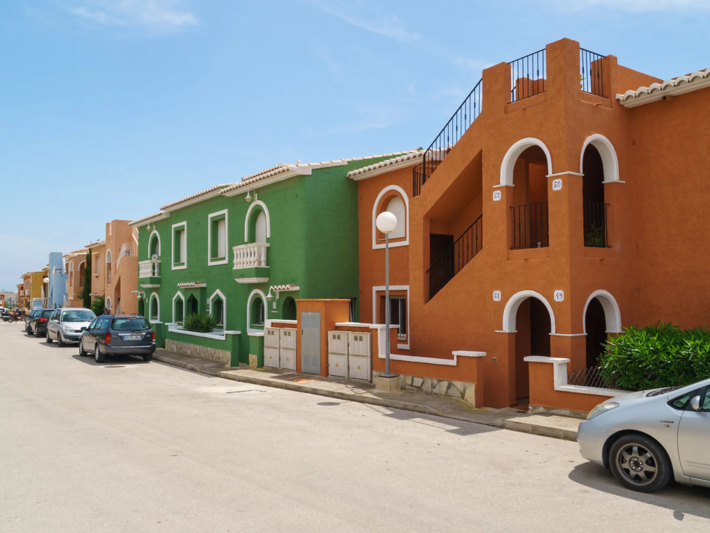 Resort "Pueblo de la Paz", de 2 plantas. En el barrio de Cumbre del Sol, a 2 km del mar. Comunitario: piscina (01.04.-31.10.) con escalera interior. Piscina para niños, ducha exterior. Posibilidad de aparcamiento. Supermercado 500 m, restaurante 600 m, playa de arena "Arenal" 8 km, cala para bañarse 2 km.