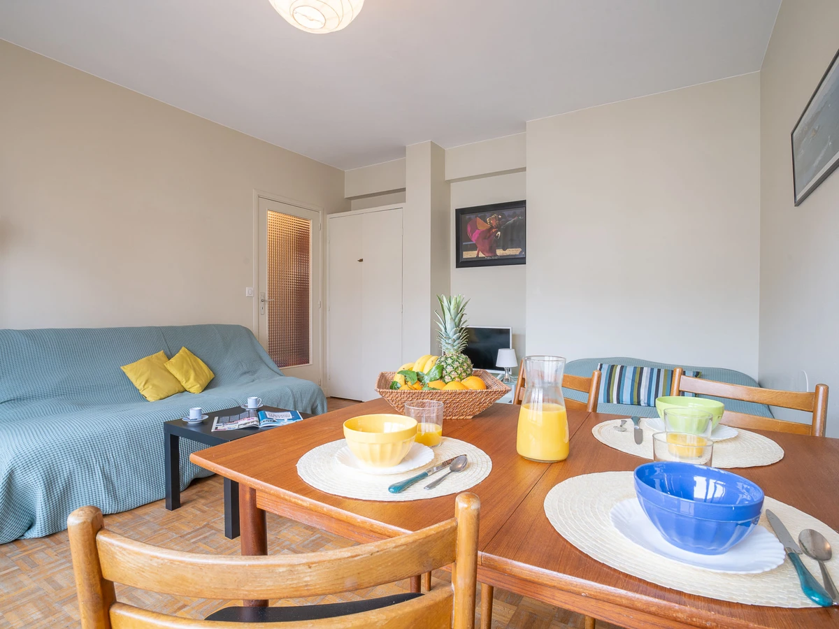 Residencia "Alphonse XIII". En el barrio de St Charles, en la localidad, a 300 m del centro de Biarritz, lugar céntrico, a 500 m del mar, a 500 m de la playa. En el complejo: ascensor. Tienda, tienda de comestibles, restaurante, parada de autobús 200 m, playa de arena "La grande plage" 500 m, piscina cubierta 300 m. Campo de golf 1.2 km. La entrega de llaves se realiza por la agencia .