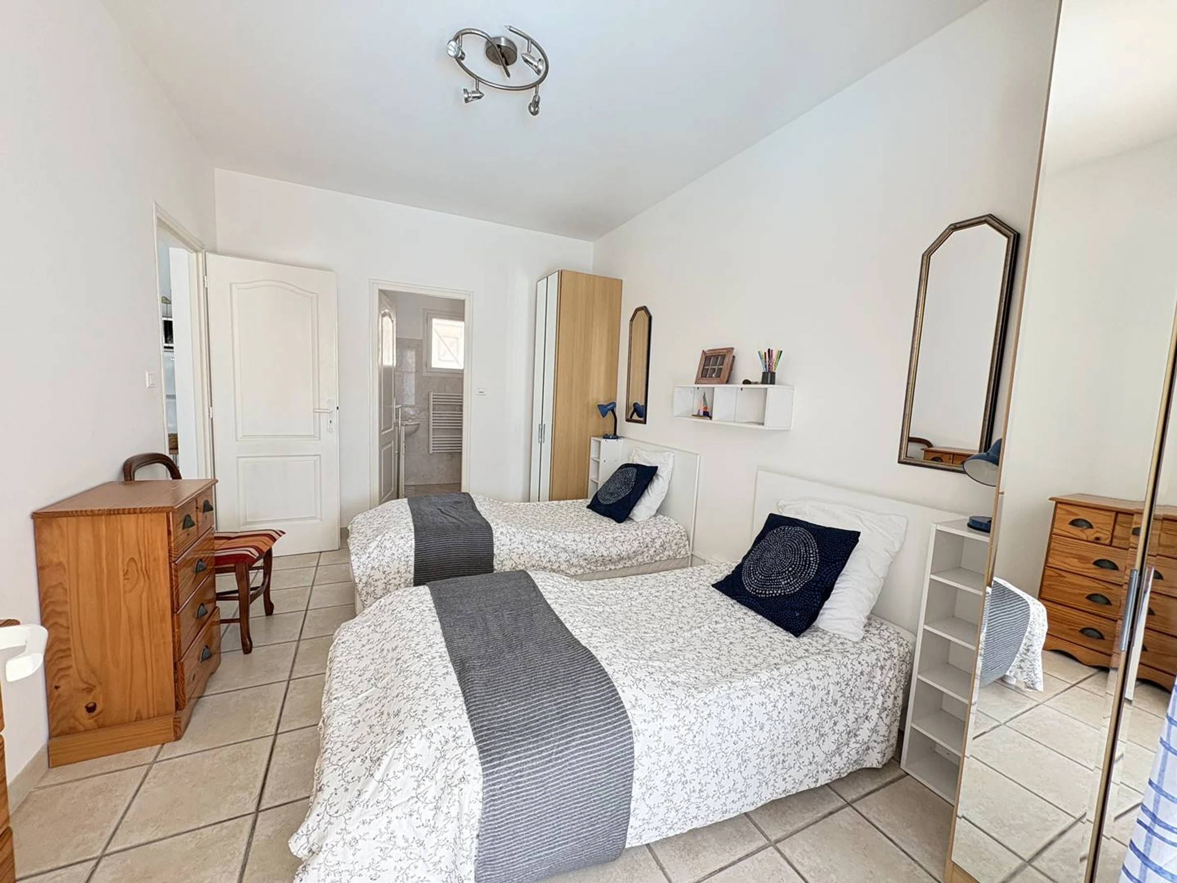 Habitación 2: Dos camas individuales (90 cm), también con armario y baño privado con ducha y WC, que ofrece un espacio privado y funcional.