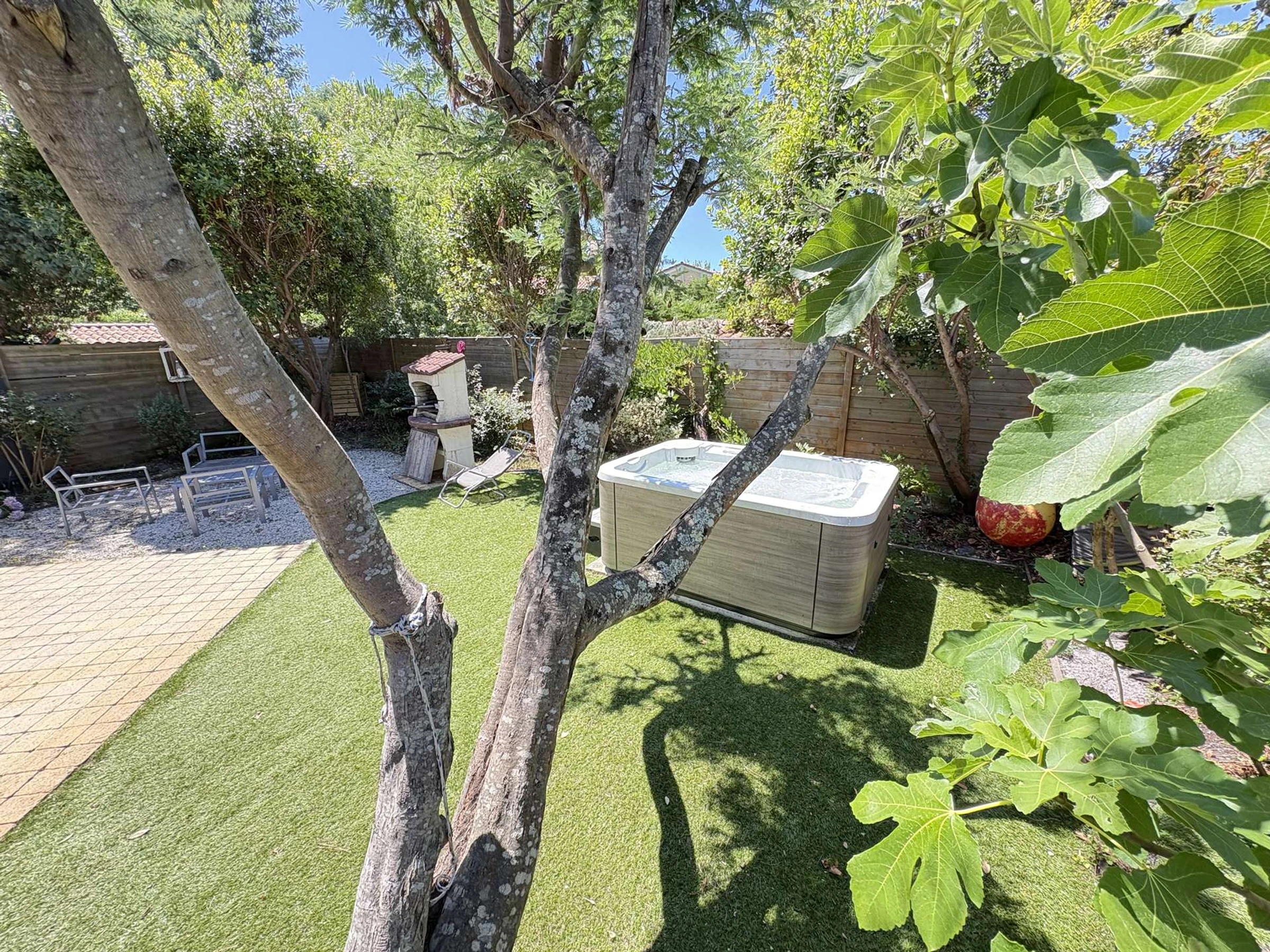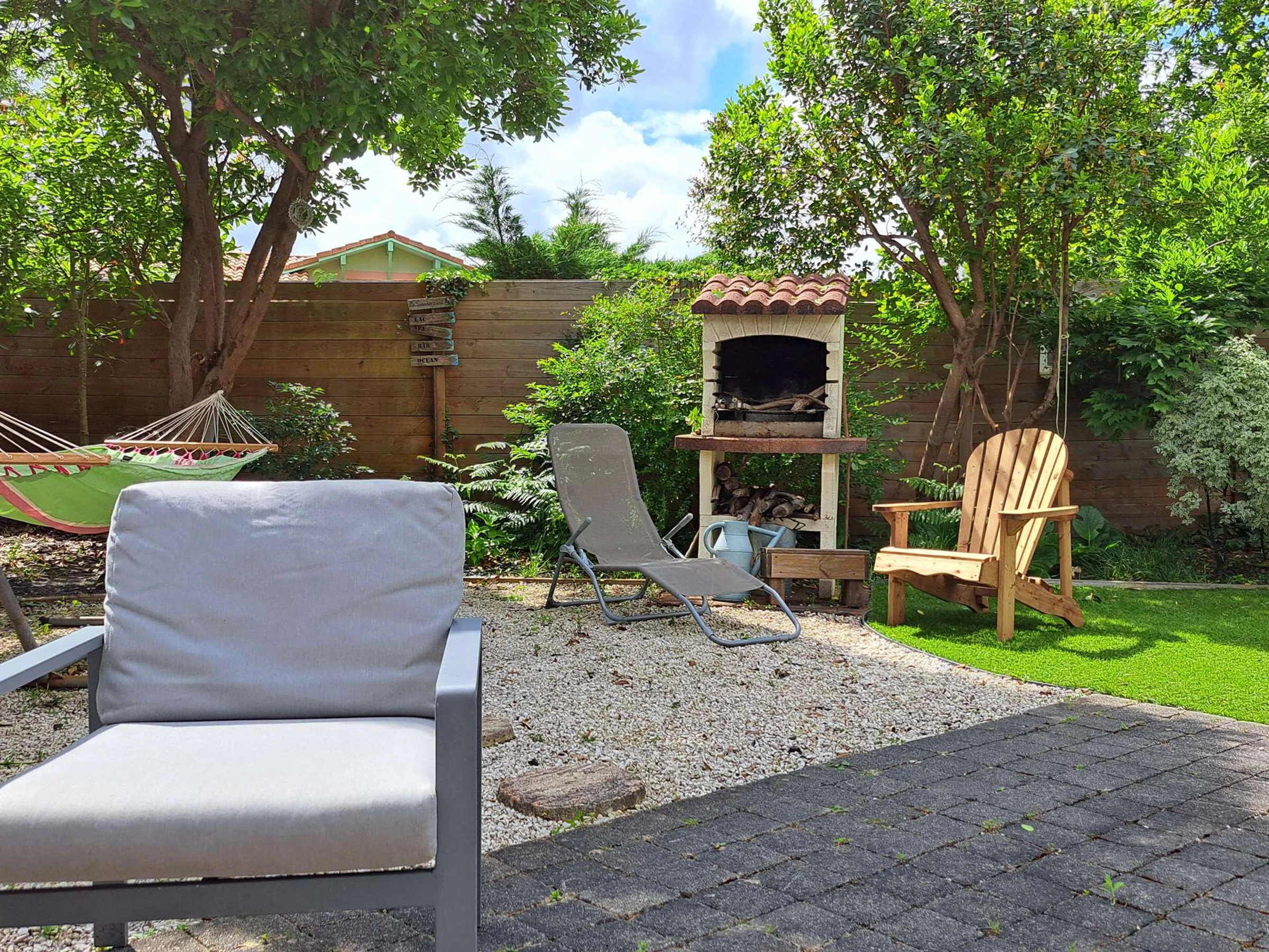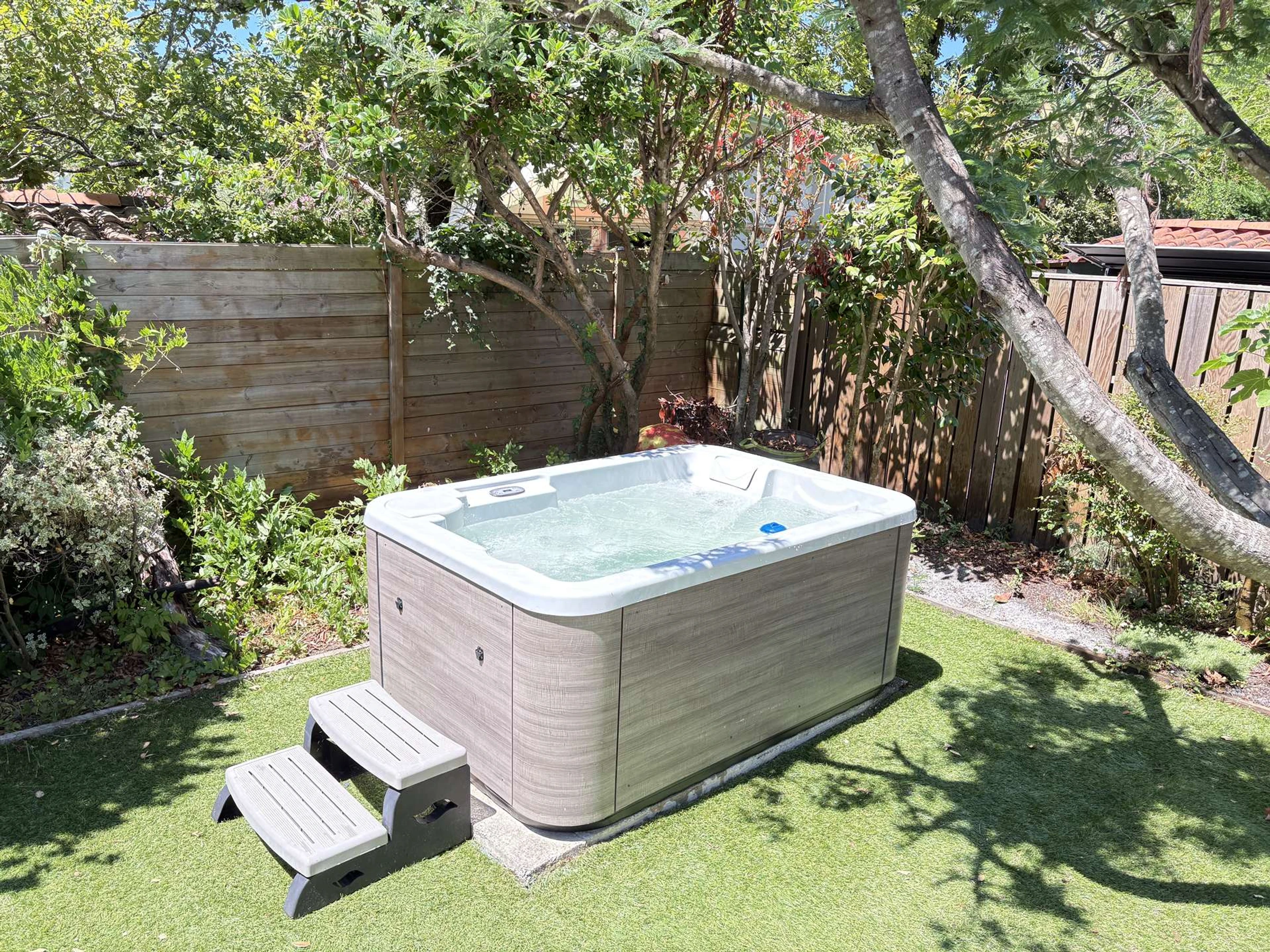 En el jardín encontrará un jacuzzi para tres personas, una hamaca, muebles de jardín, barbacoa y plancha de gas.